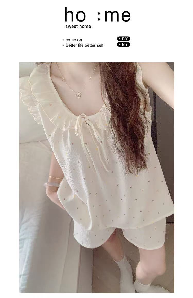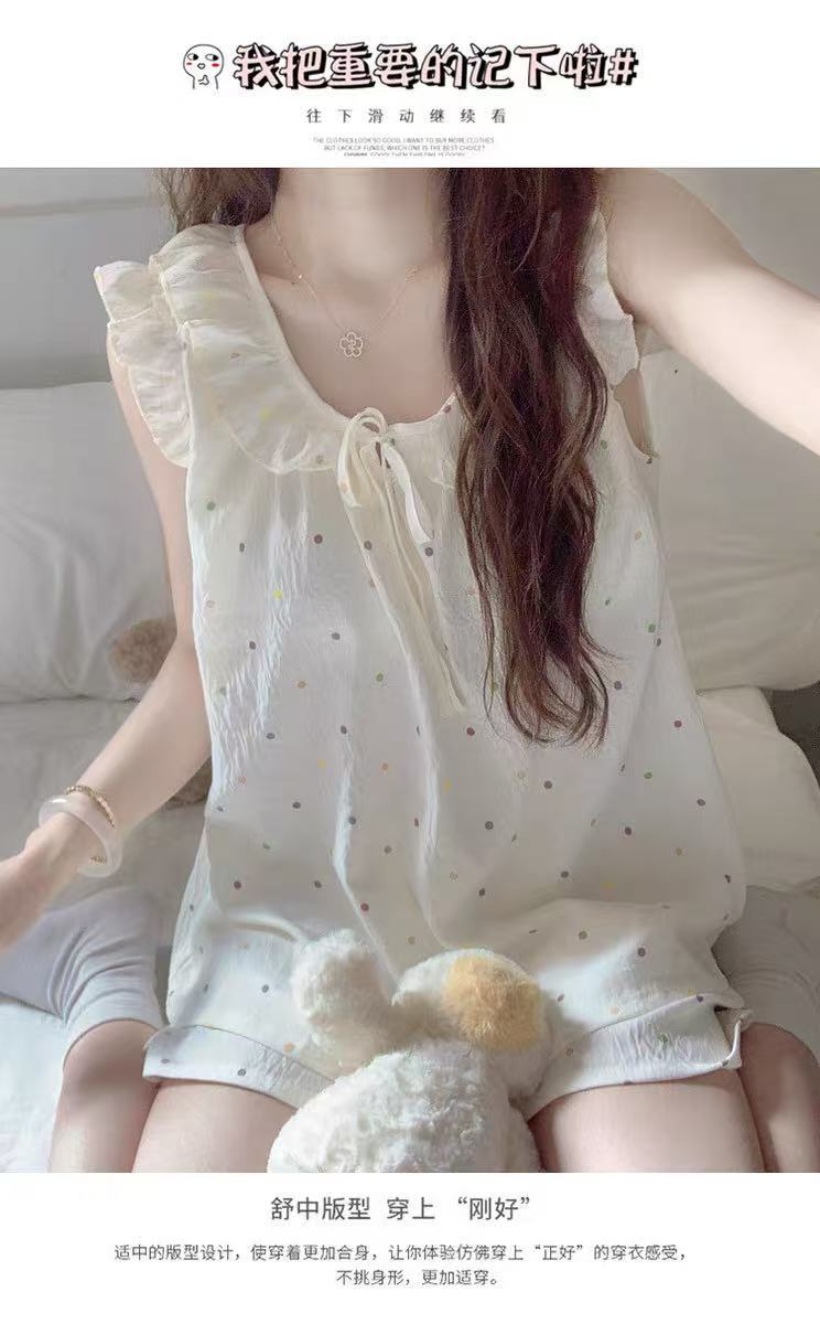 Pijama de Algodón Nube para Mujer de Verano de Manga Corta con Shorts y Copas en el Busto, Dulce y Lindo con Dibujos Animados, Set de Ropa para el Hogar para Mujer