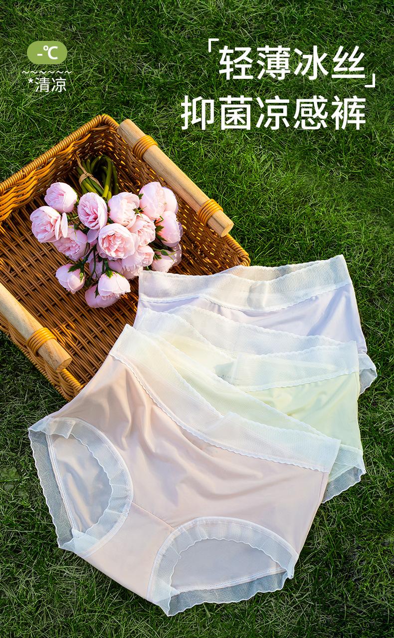 Ropa interior antibacteriana de seda morera 7a para mujer, cintura alta, seda de hielo, color caramelo, 10D, secado rápido, suave, para mujer