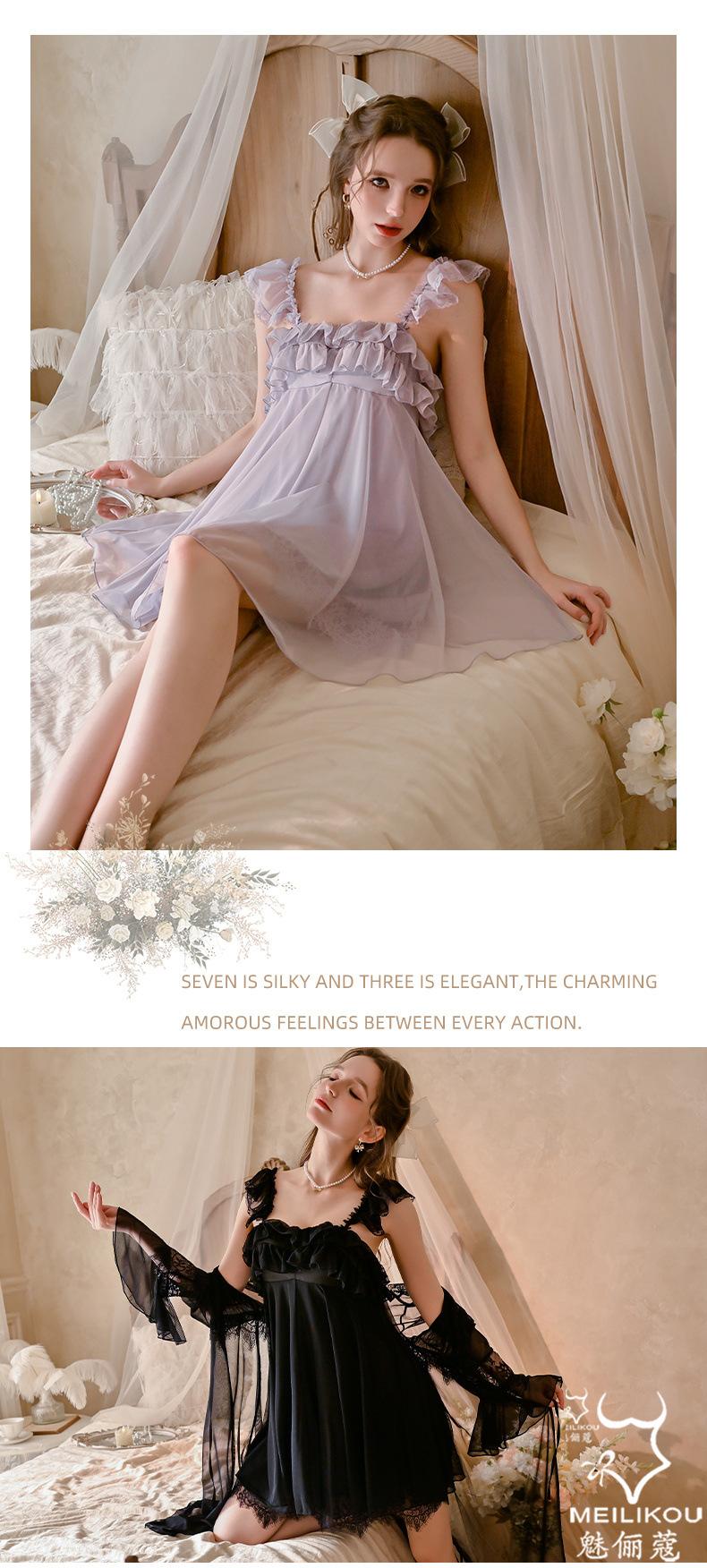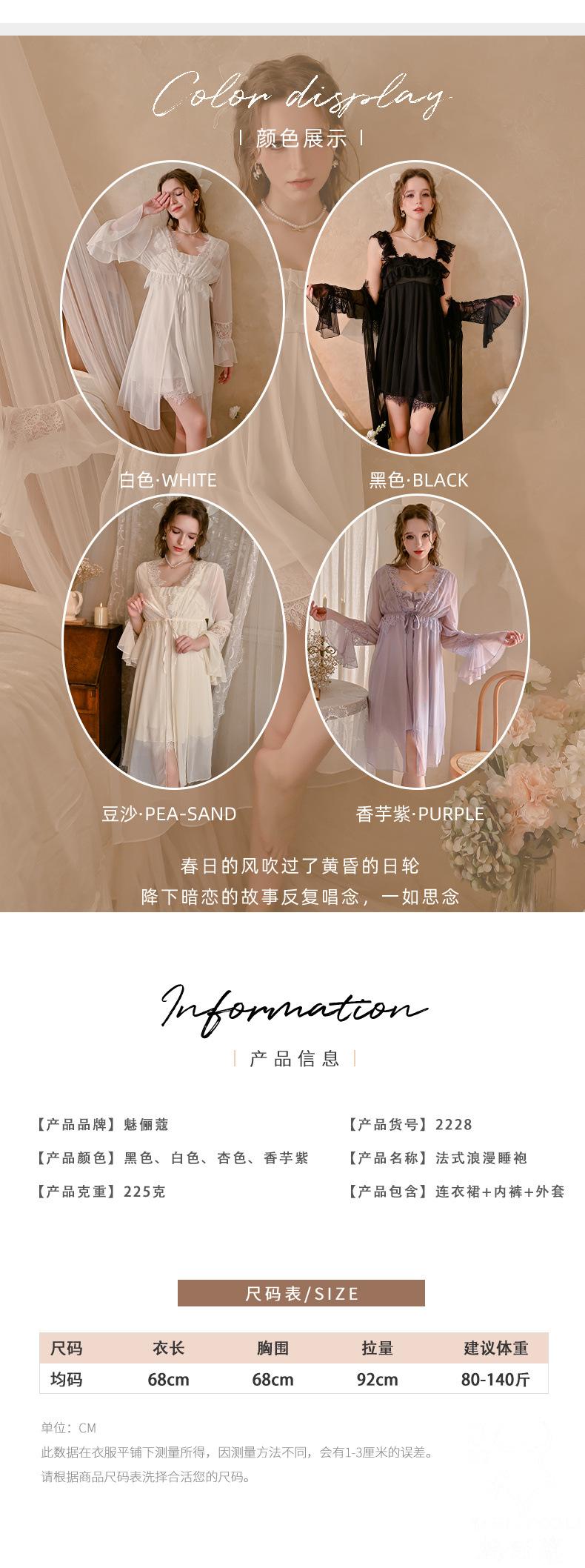 White (nightgown), Black (nightgown), Taro purple (nightgown), Apricot (nightgown), White separate coat (outer...
