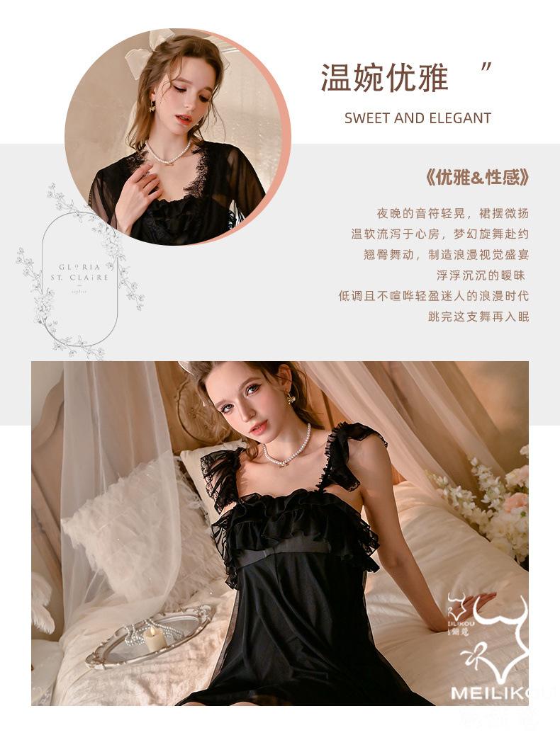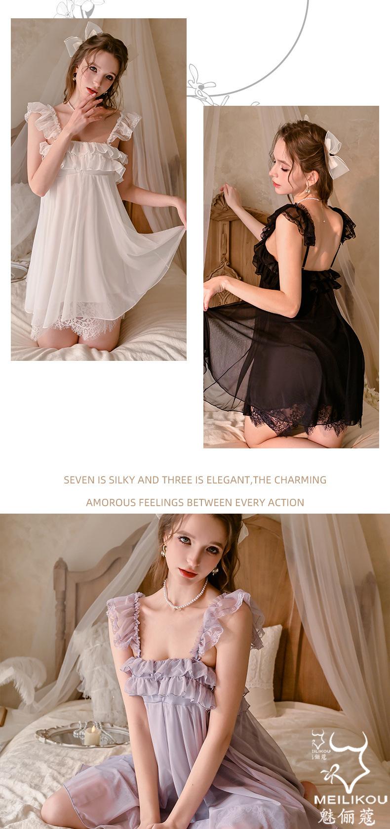 Meili Kouqing Pijama Sexy Casual y Cómodo Malla Ligera y Transpirable Pijama Falda Tirantes Camisón Traje Mujer 2228