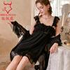 Black (nightgown) + black separate jacket (robe)