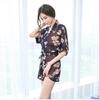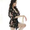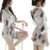 Lencería Sexy, Tentación Sexy, Bata de Baño de Gasa, Conjunto de Pijama, Cinturón, Kimono, Estampado Transparente, Club Nocturno, Deseo y Pasión Puros