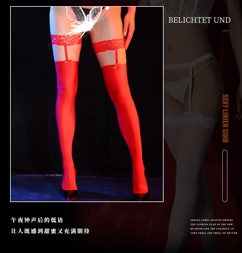 Shiny stockings, lace butterfly, red edge and black silk, Glossy stockings, lace butterfly, black edge and bla...