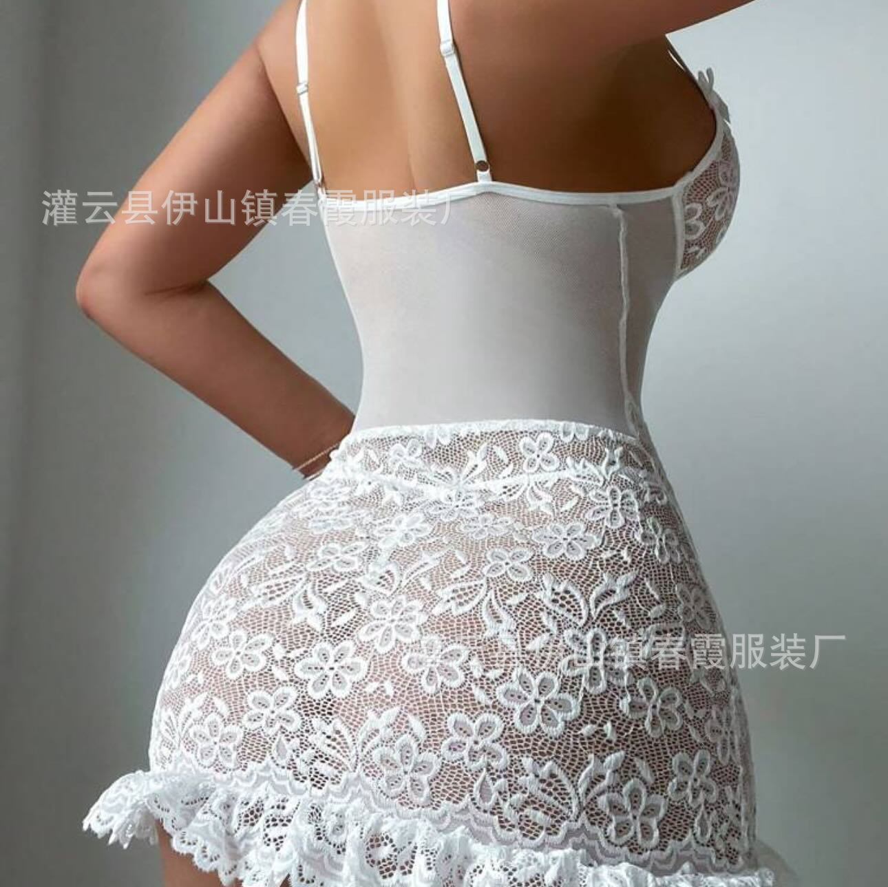 Amazon Transfronterizo Nuevo Europeo y Americano Pijama Sexy Encaje Espalda Descubierta Transparente Pijama Sexy para Mujer