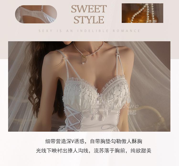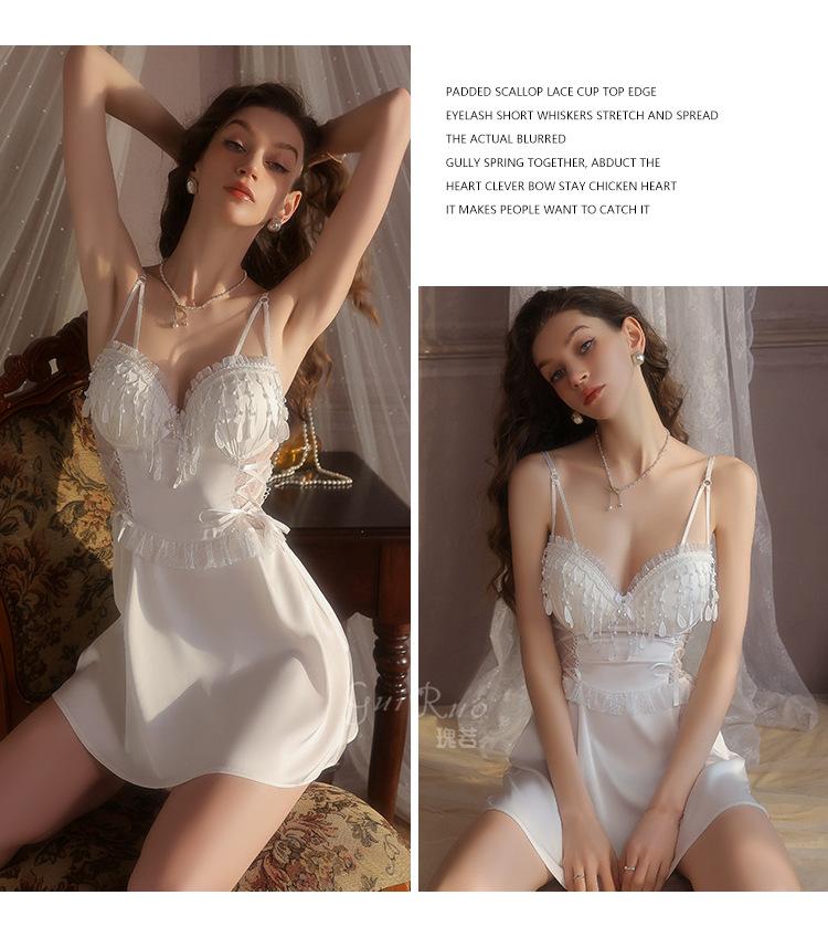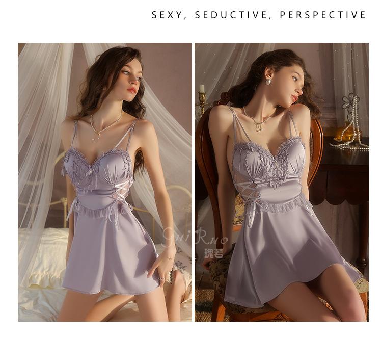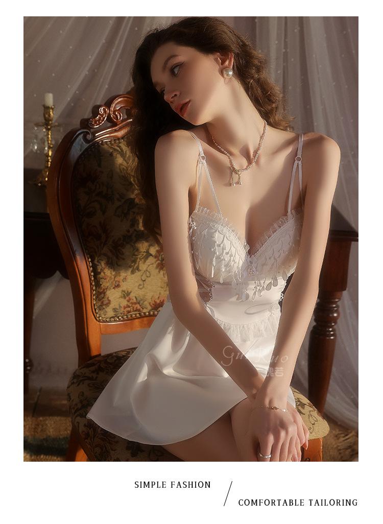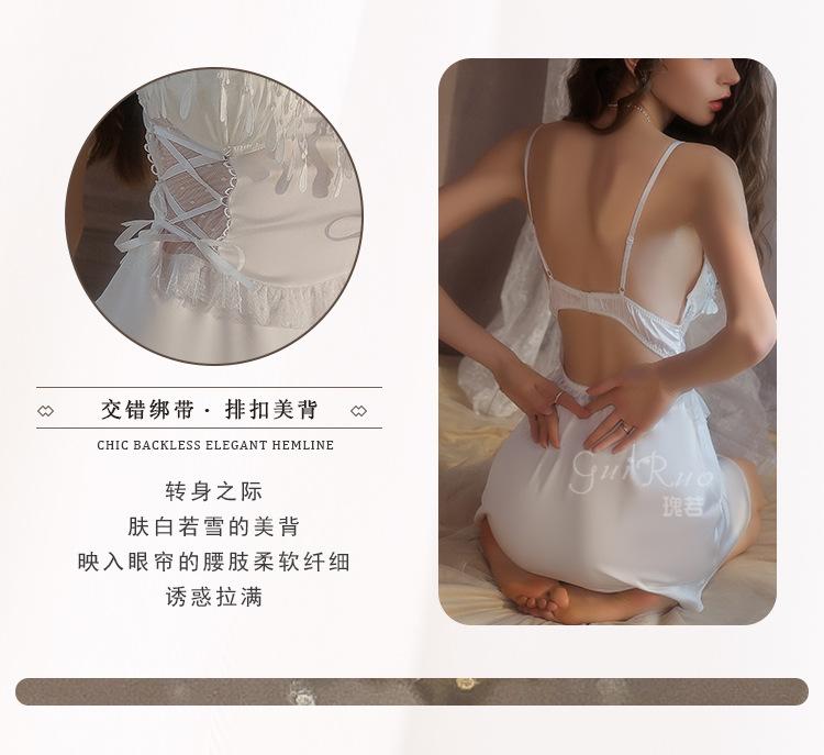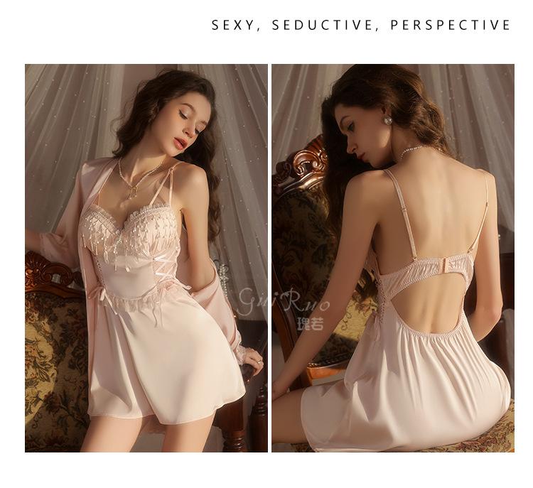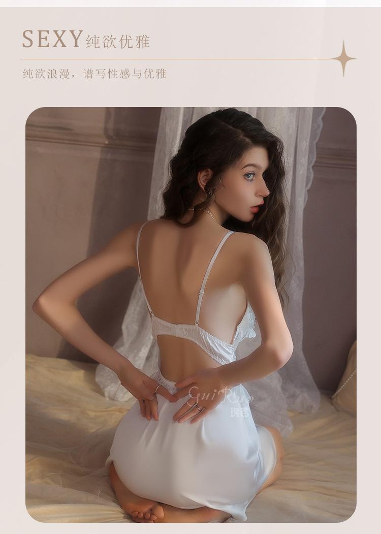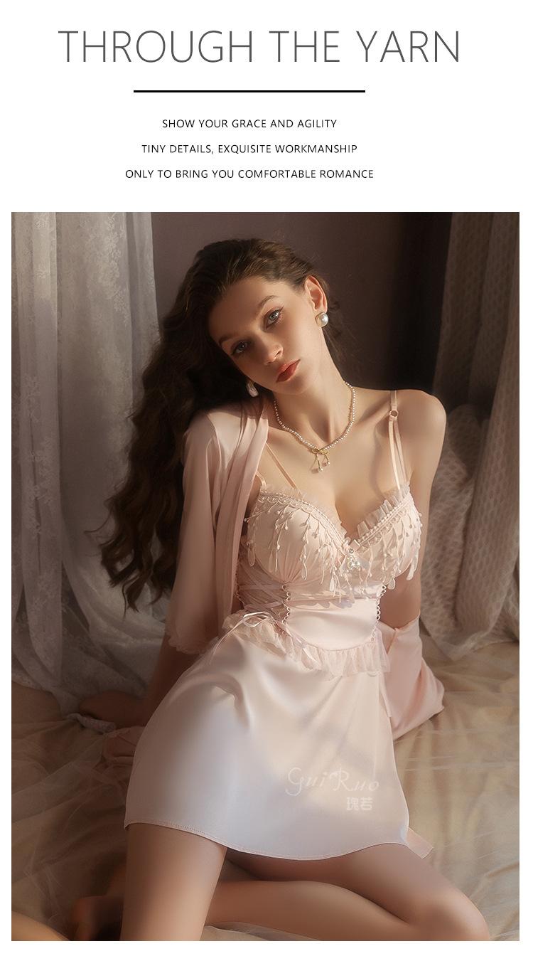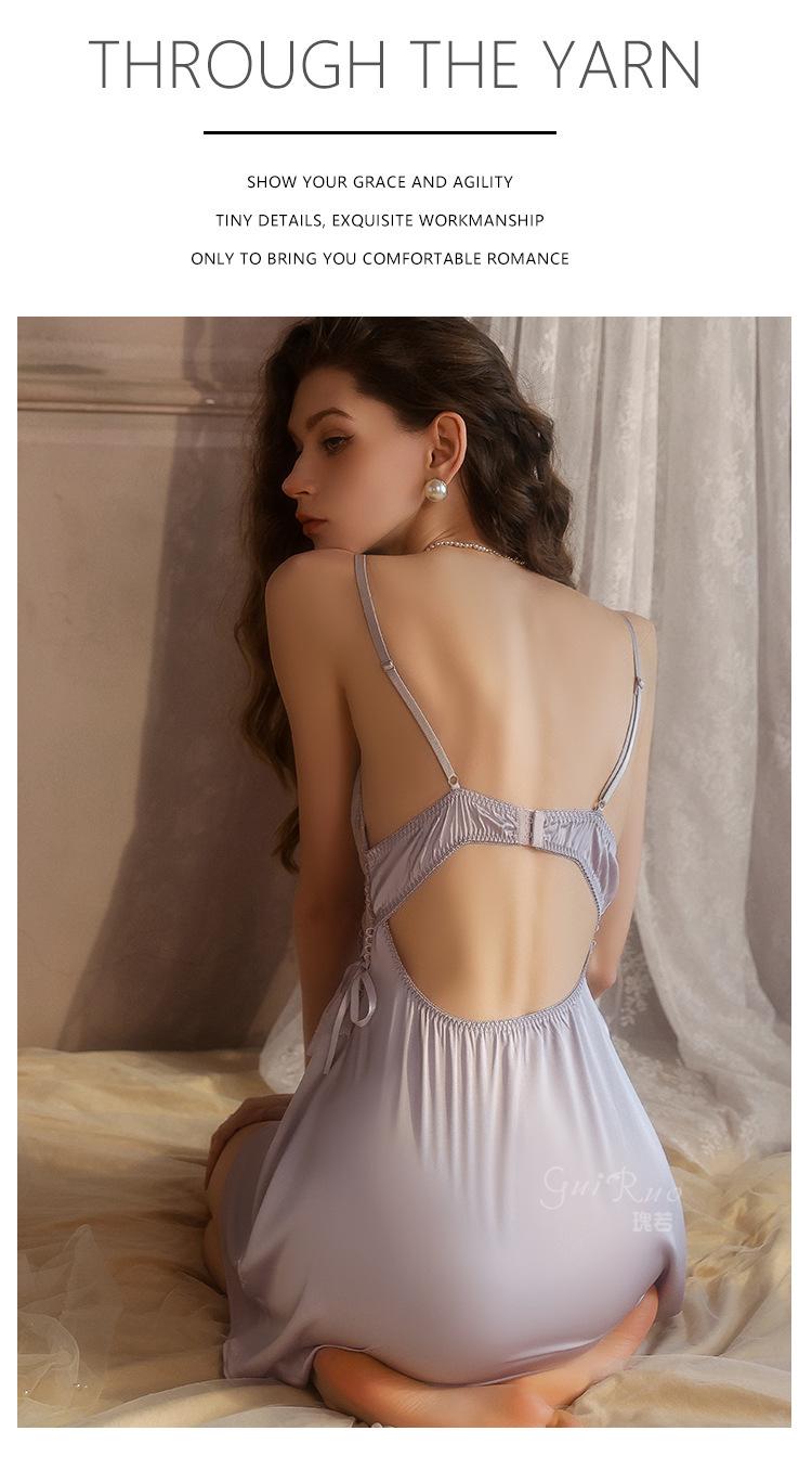 Marca Guiruo Lencería Escote en V Profundo Sexy sin Espalda Caliente Talla Grande con Almohadilla en el Busto Camisón de Satén Suave Bata Exterior Traje de Mujer 5275