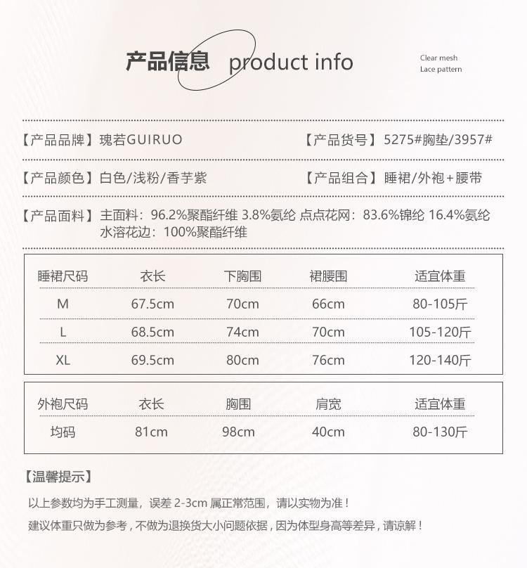 5275 white (nightgown), 3957 white (robe + belt), 5275 light pink (nightgown), 3957 light pink (robe + belt), ...