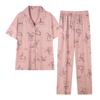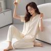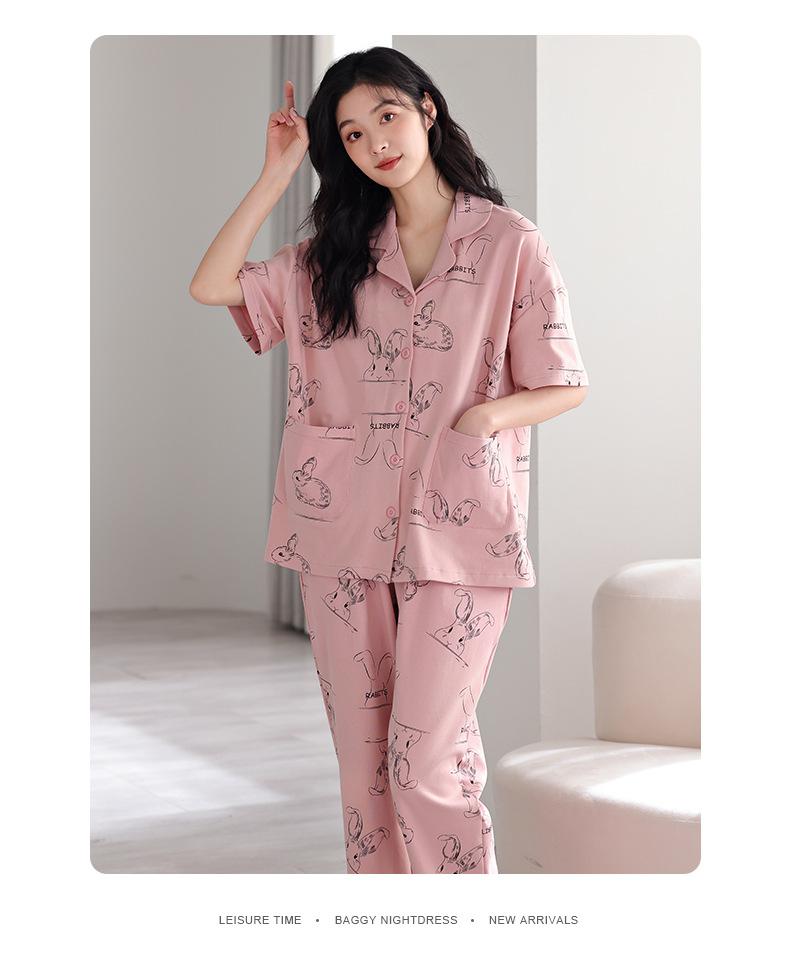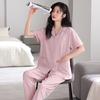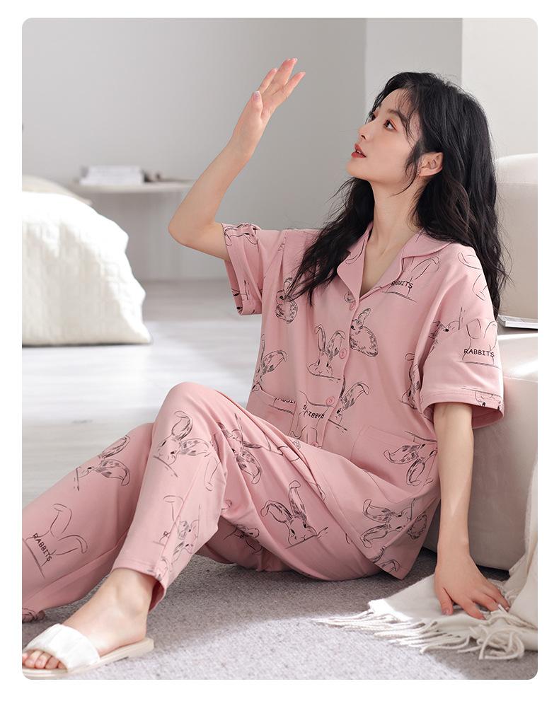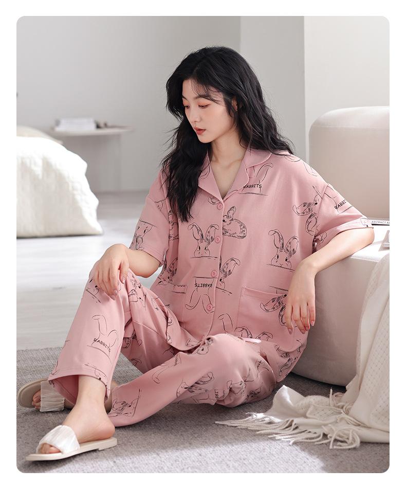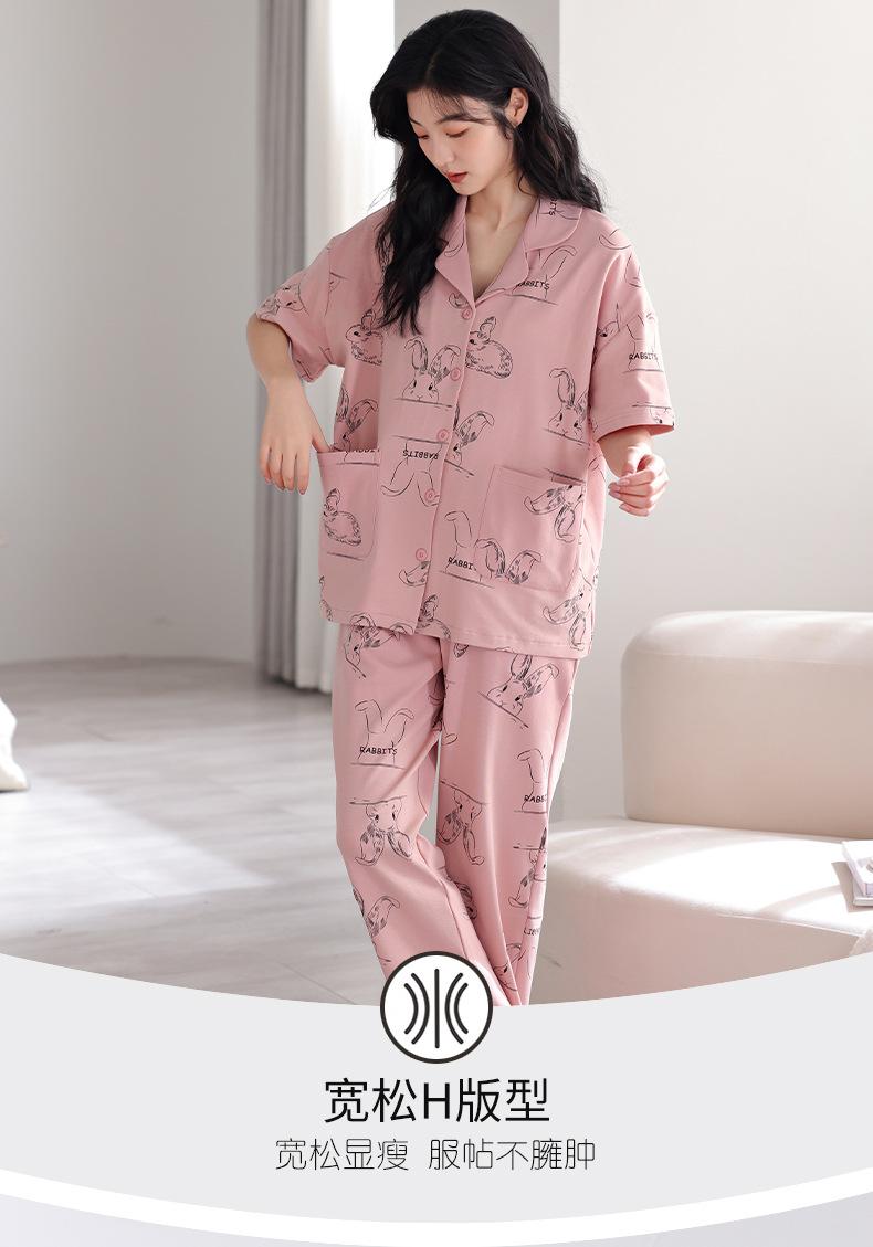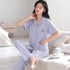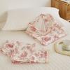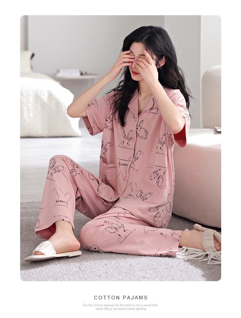Pijamas de Algodón Puro para Mujer, Pantalones Cortos Finos de Verano de Manga Corta, Cárdigans de Alta Gama, Conjuntos Casuales Cómodos de Talla Grande para Estar en Casa