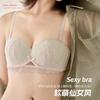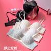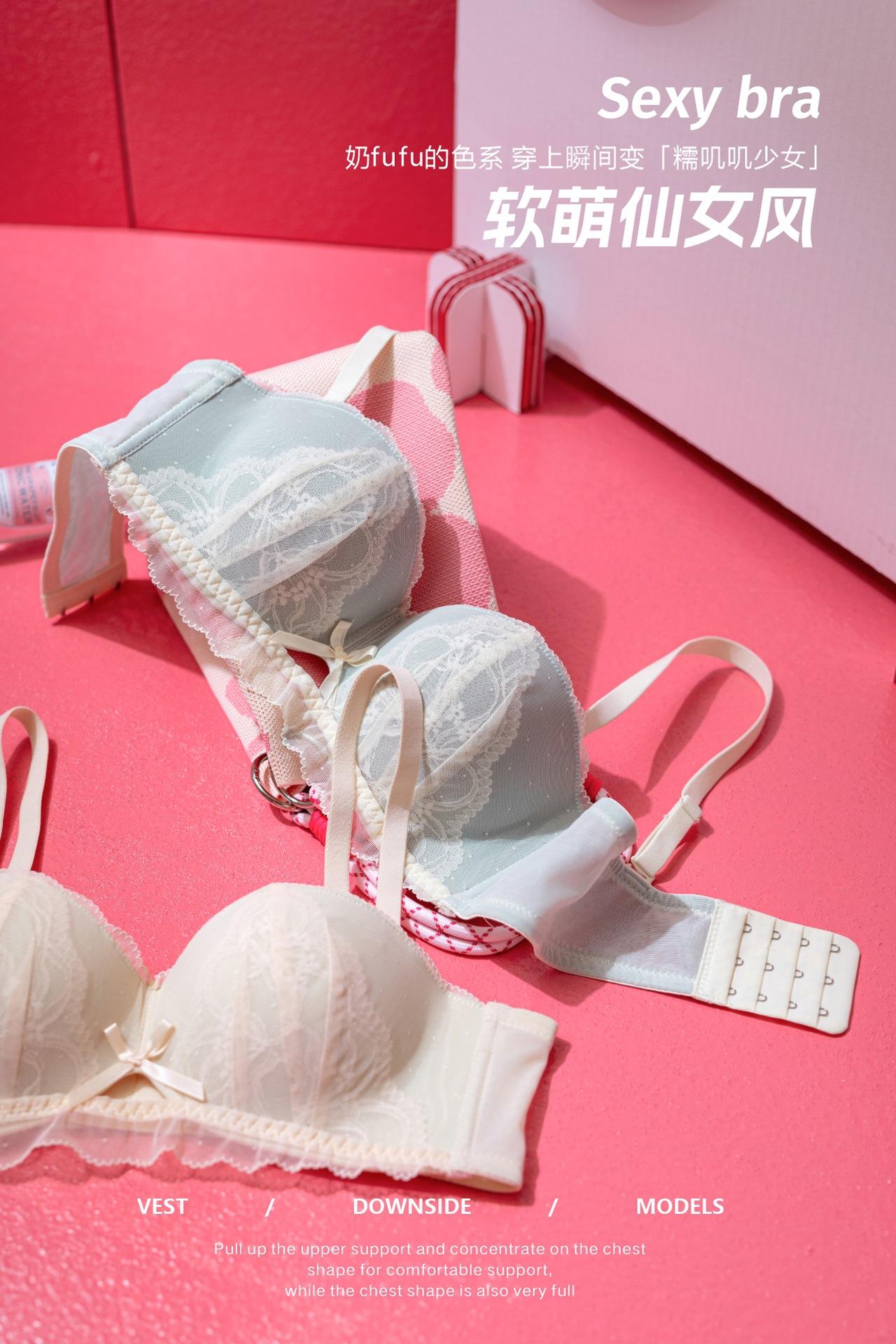 Ropa Interior de Encaje de Deseo Puro para Mujer Pecho Pequeño Delgada Push up Sexy Sin Tirantes Lazo Sin Varillas Set de Brasier Transpirable