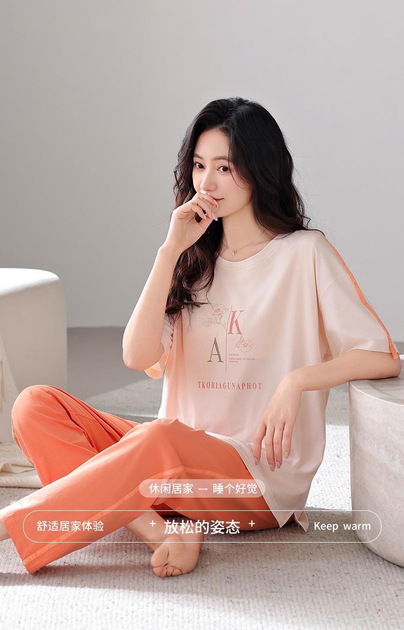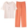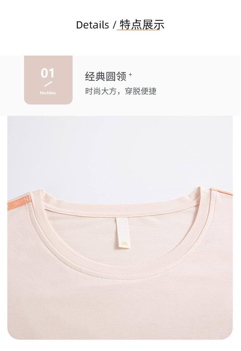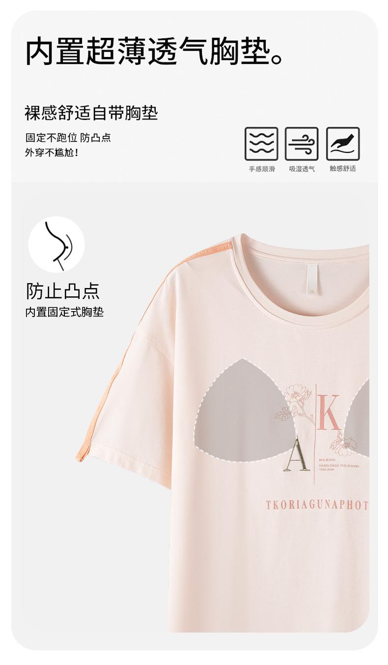 Pijama de Verano para Mujer de Modal con Almohadilla en el Pecho Pantalones de Manga Corta Casual Cuello Redondo Traje para Exterior