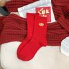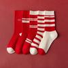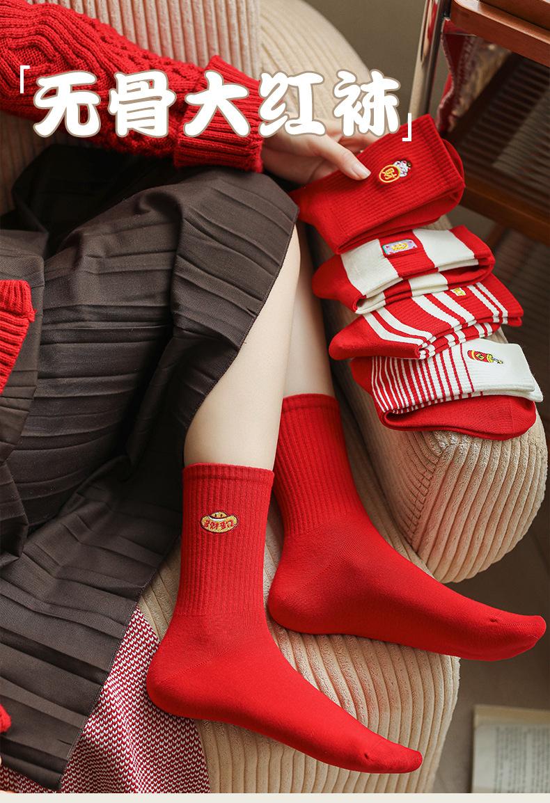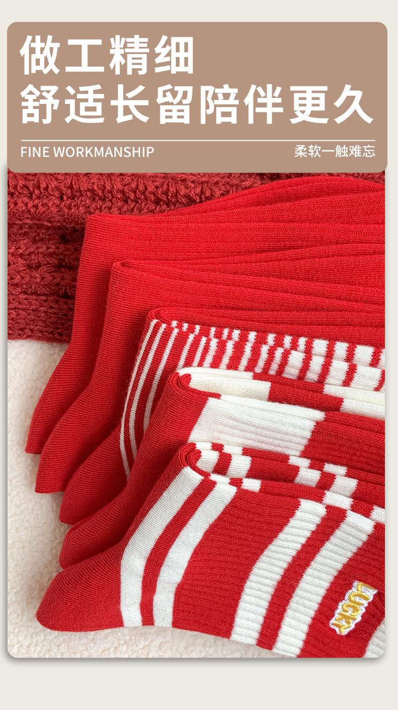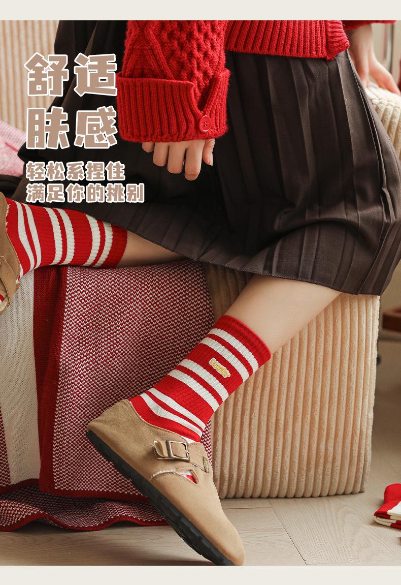 Calcetines Rojos Calcetines de Media Caña para Mujer Calcetines sin Costuras Bordado de Dibujos Animados Calcetines de Año Nuevo Rayados Modernos Versátiles Algodón Peinado Calcetines de Año Nuevo