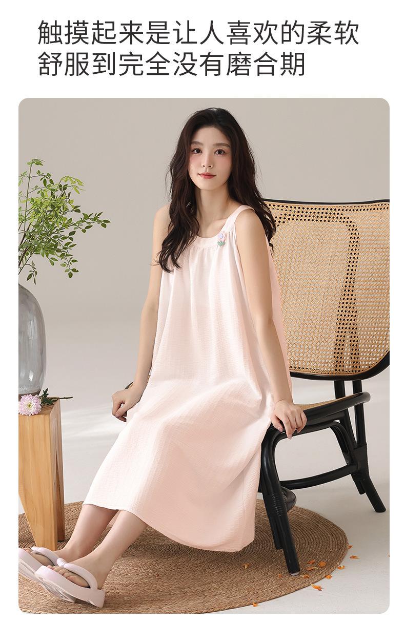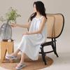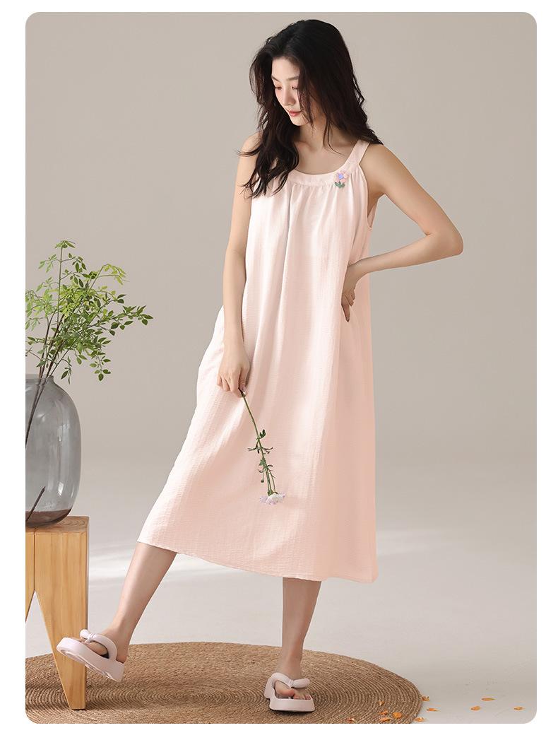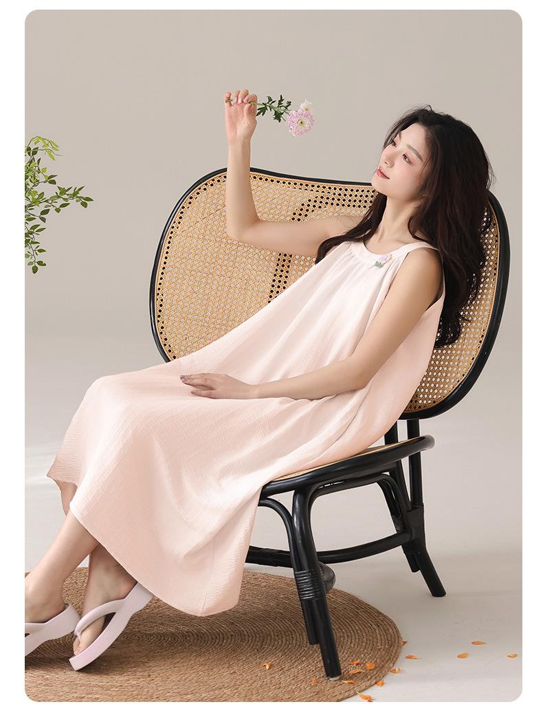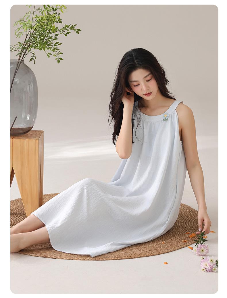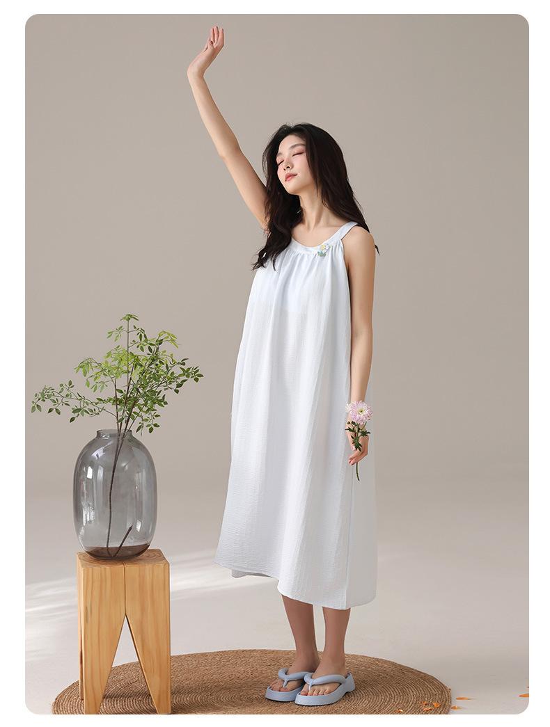 Nuevo Camisón de Verano Delgado de Algodón Nube sin Mangas con Almohadillas para el Busto, Estilo Simple Falda Suelta de Largo Medio, Pijama Fresco, Ropa para el Hogar