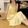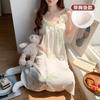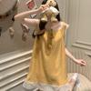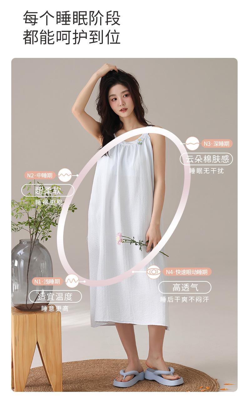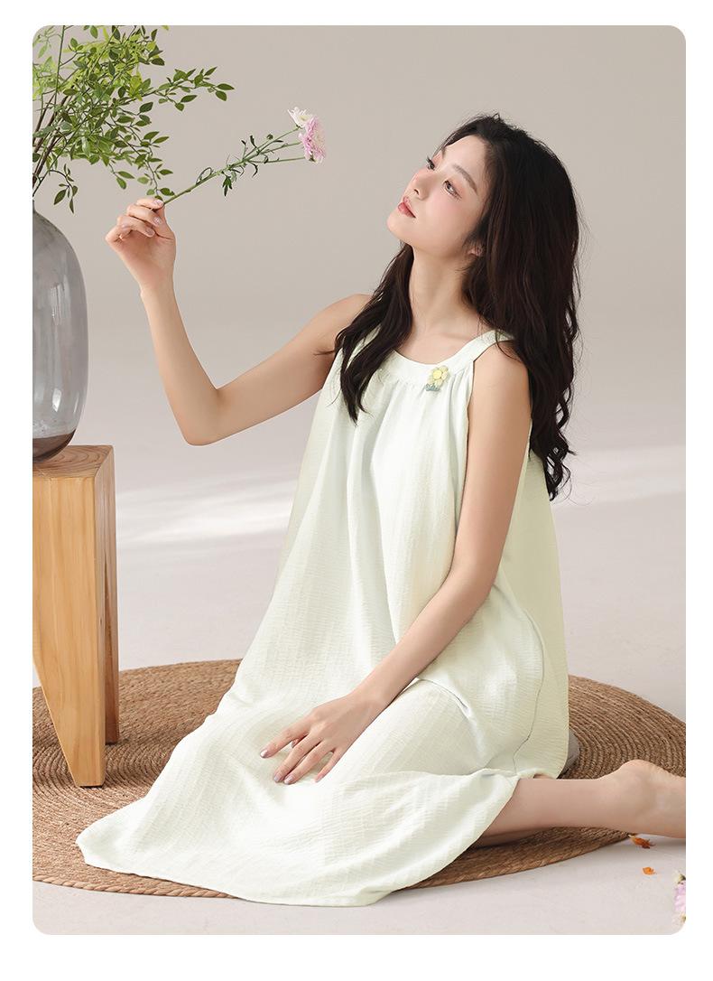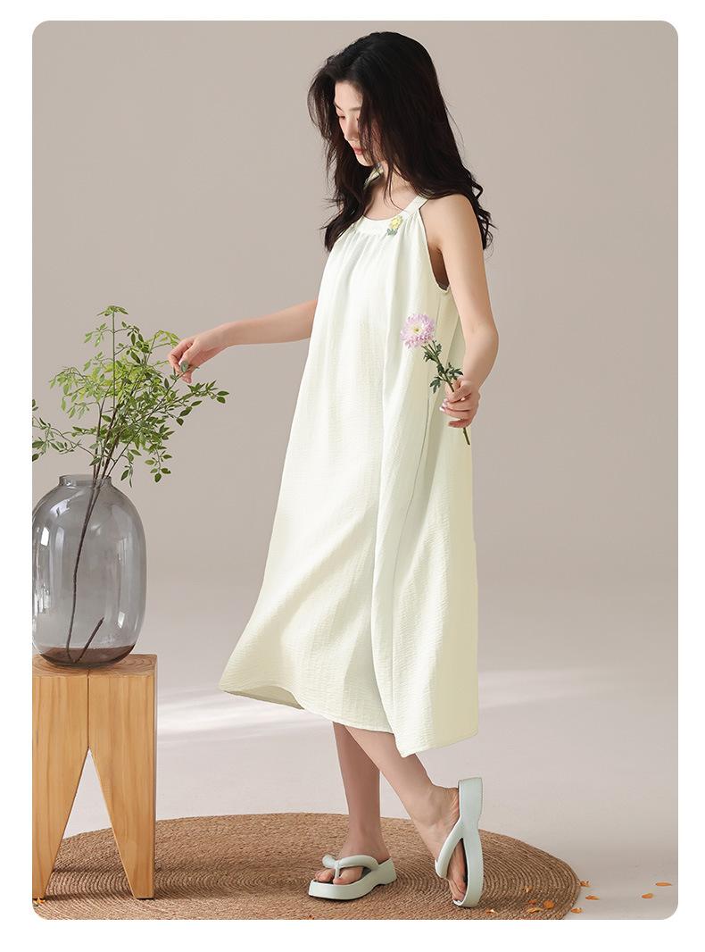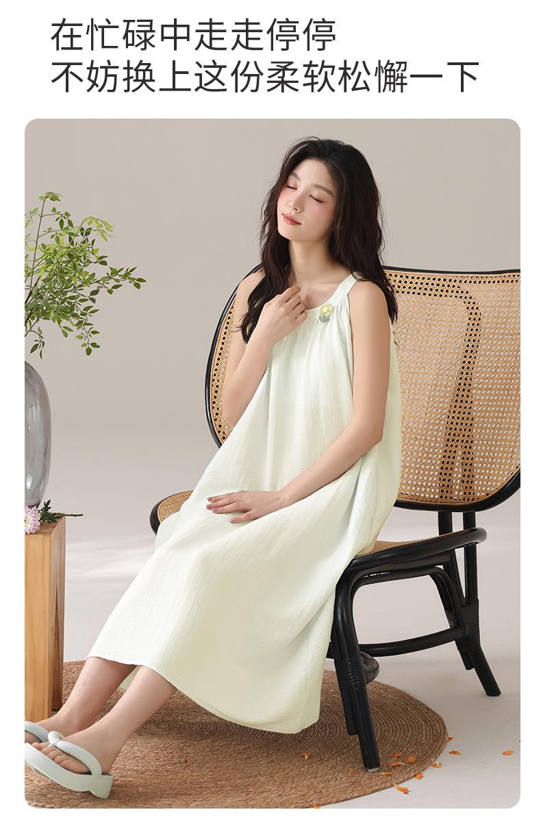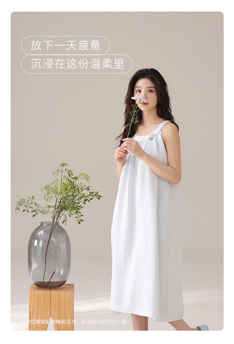 Nuevo Camisón de Verano Delgado de Algodón Nube sin Mangas con Almohadillas para el Busto, Estilo Simple Falda Suelta de Largo Medio, Pijama Fresco, Ropa para el Hogar
