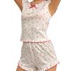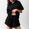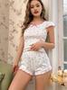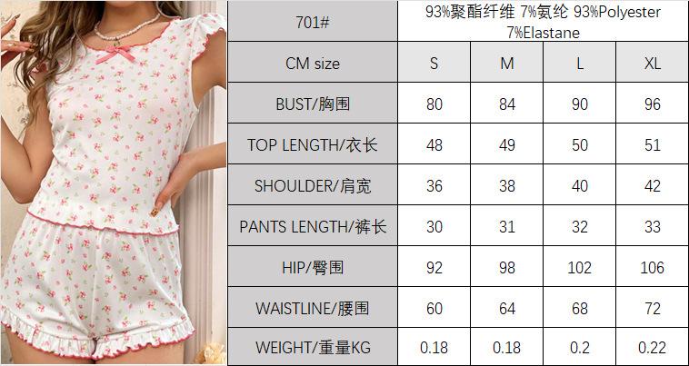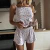 Primavera Transfronteriza Nuevo Europeo y Americano Dobladillo de Hongo Patchwork Floral Top Shorts Conjunto de Pijama Ropa de Casa para Mujer