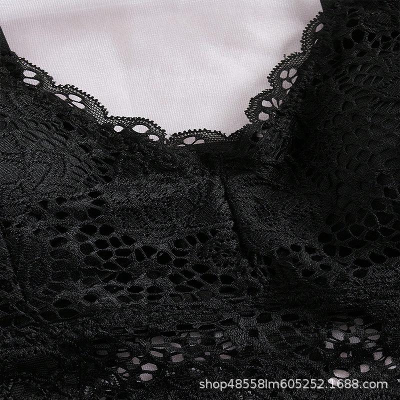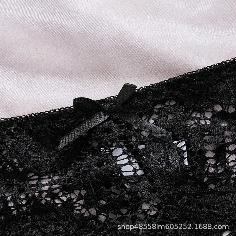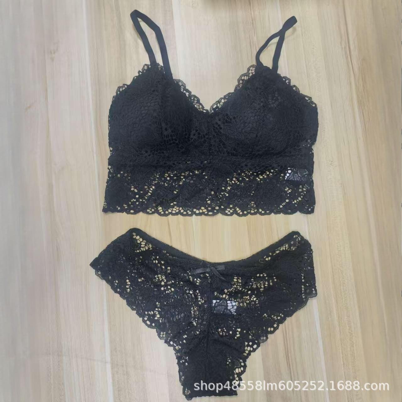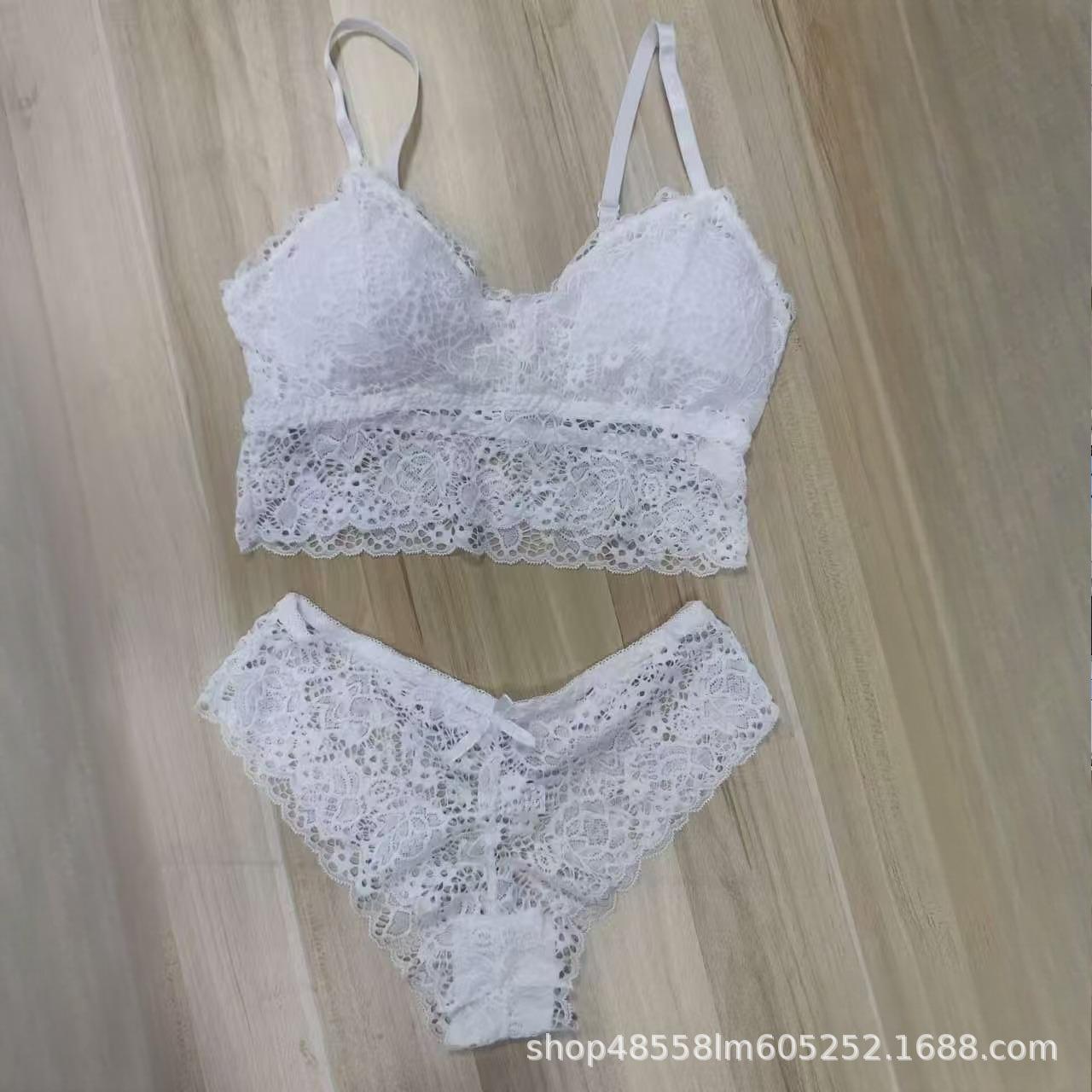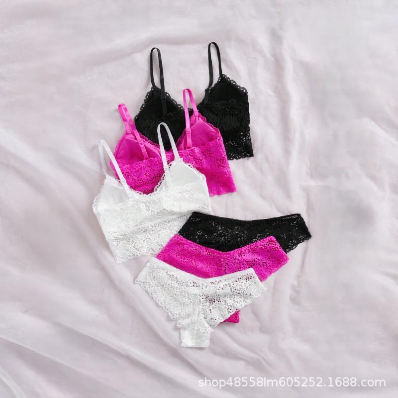 Conjunto de Brasier Sexy de Encaje Francés Europeo y Americano Shein Cut Out Strap Íntimos Calzones de Mujer Sin Aros