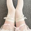 Calcetines Franceses de Banda Ancha con Lazo por Encima de la Rodilla, Calcetines Versátiles Lolita para la Parte Exterior del Muslo, Medias Beige Puro Lujuria
