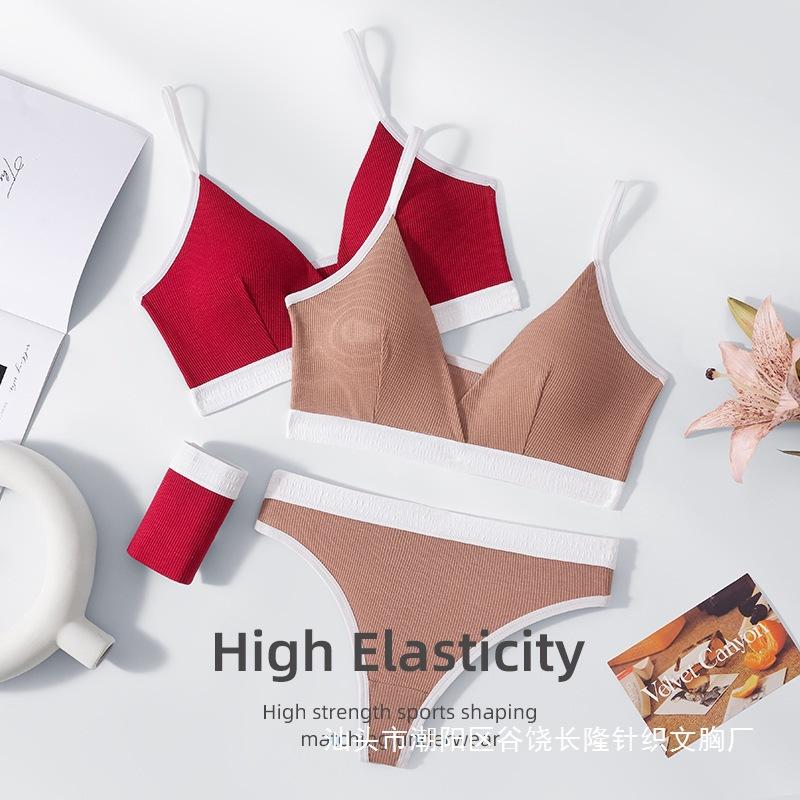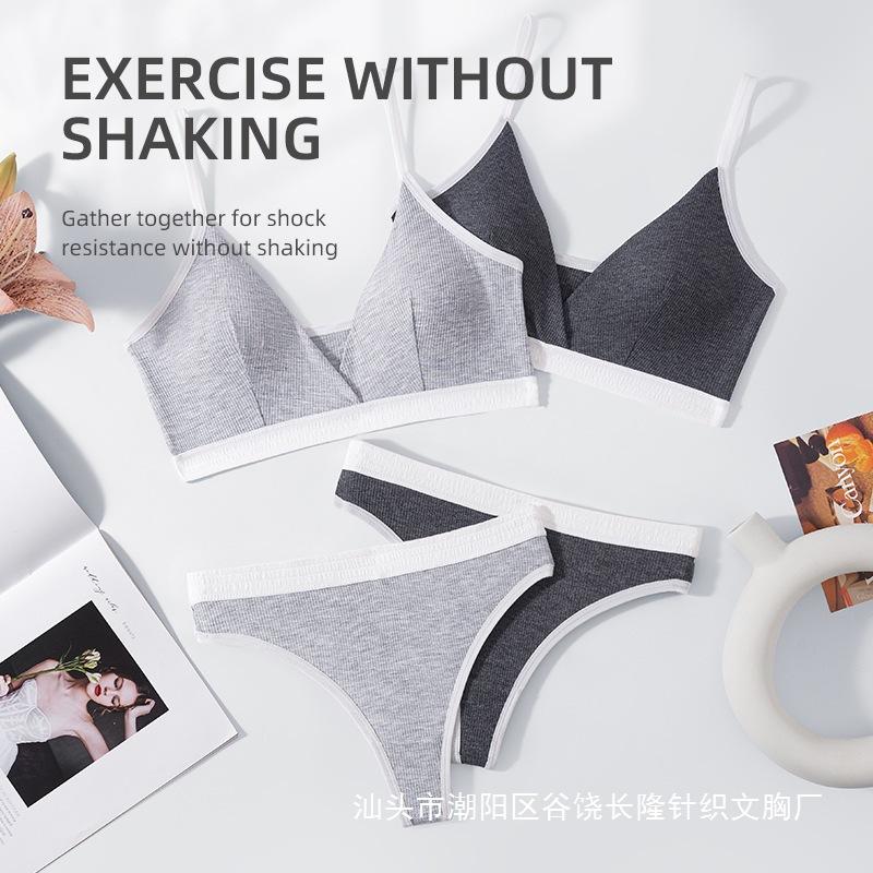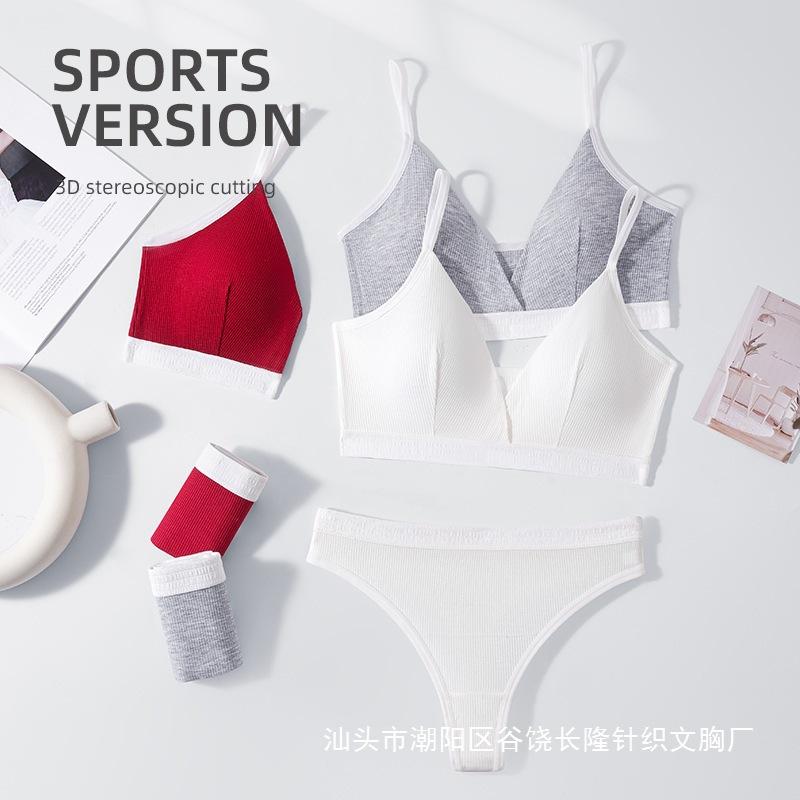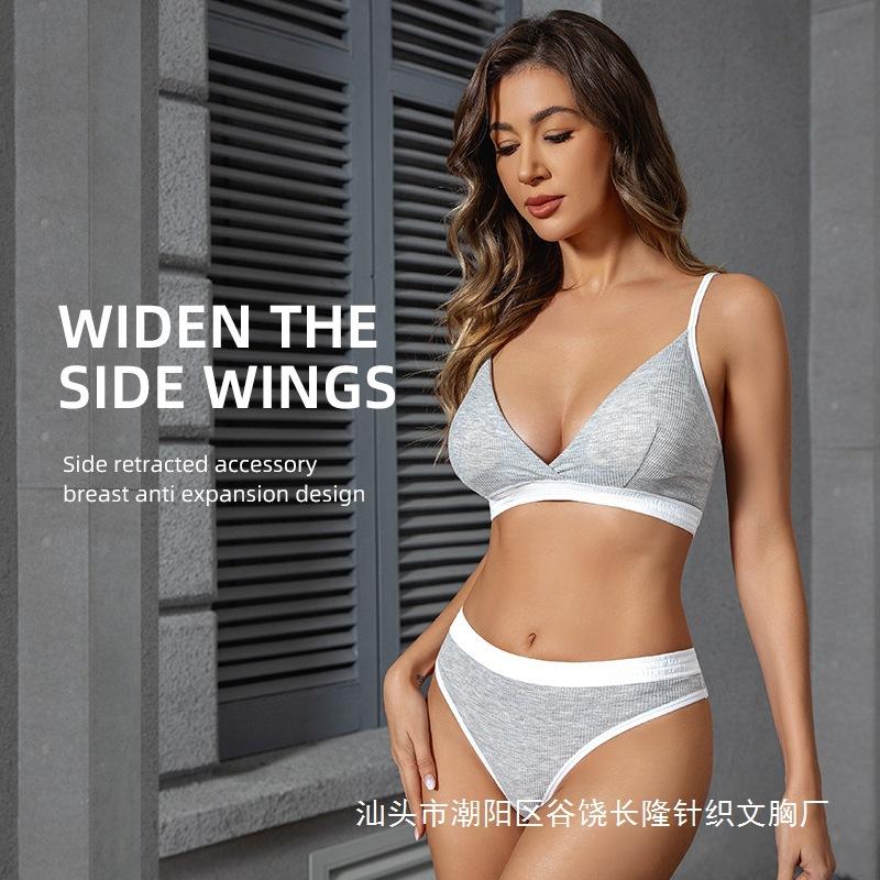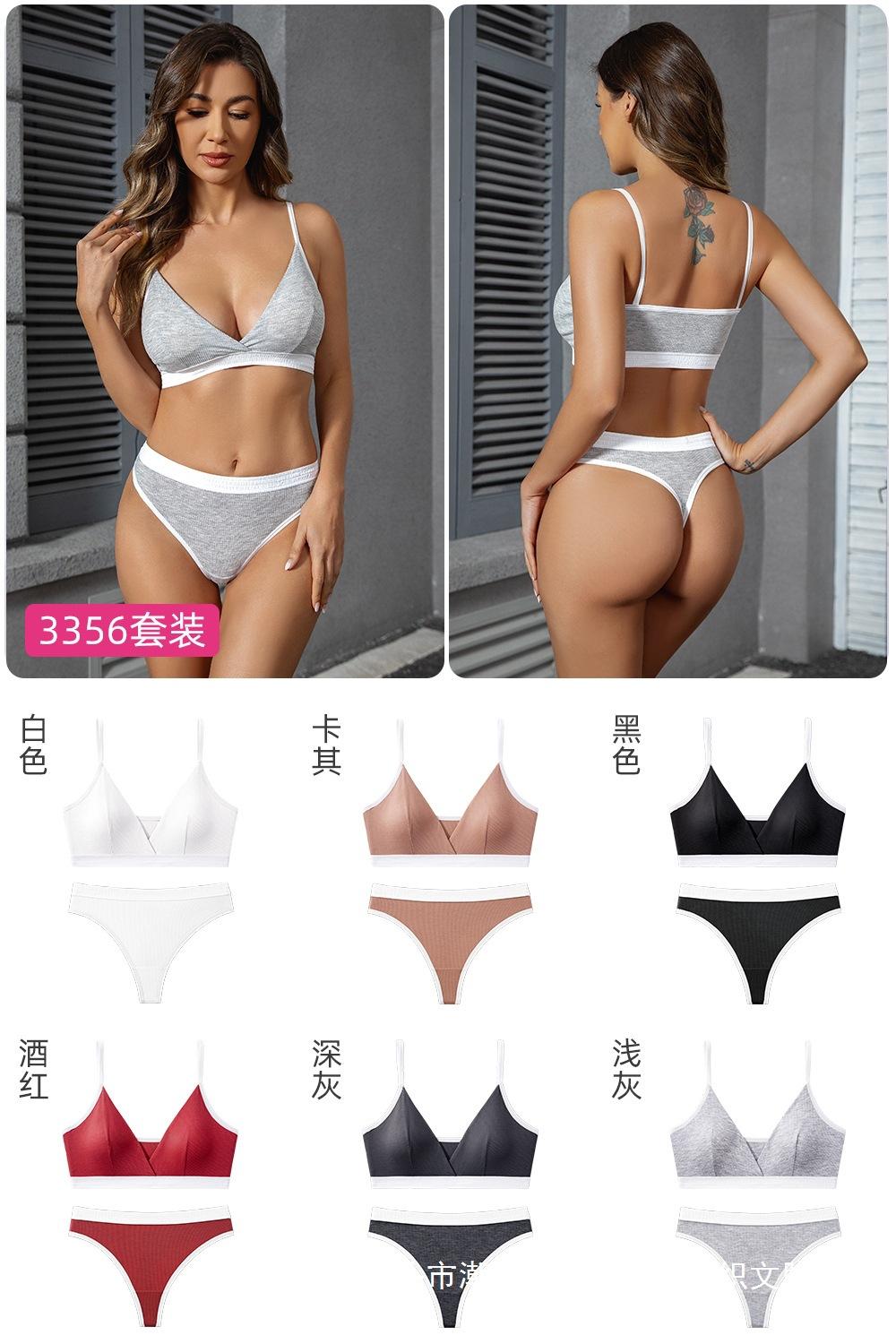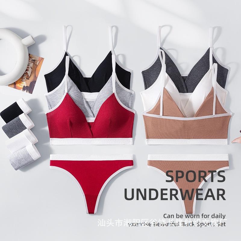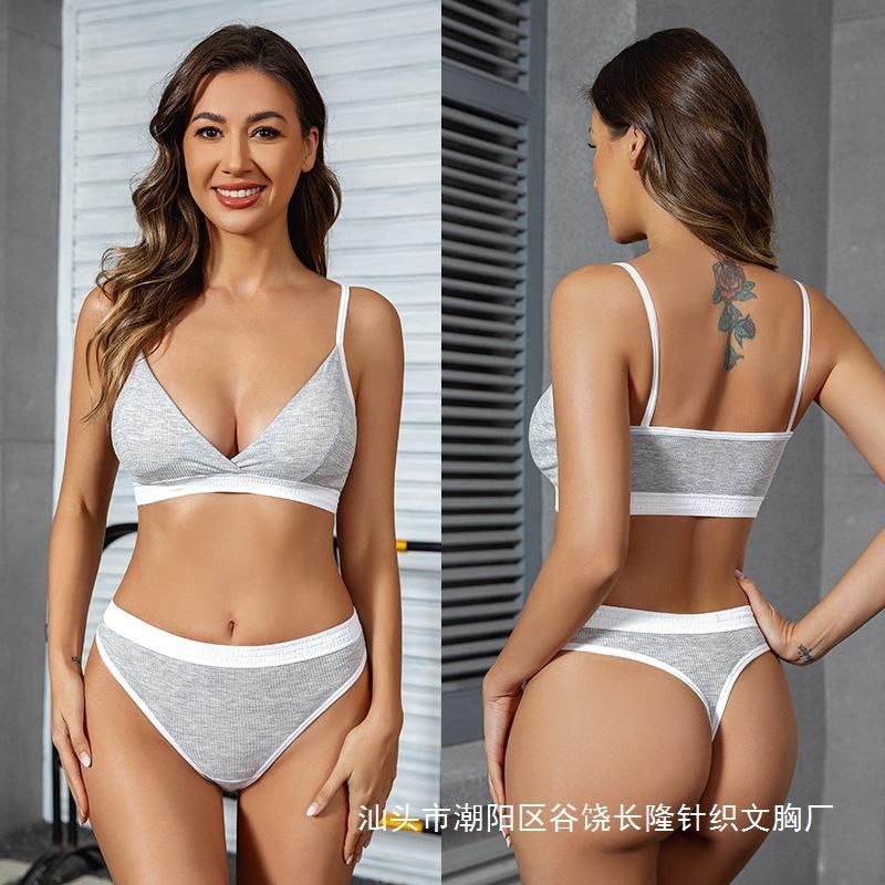 Conjunto de Lencería Sexy con Tirantes de Comercio Exterior Copa Triangular Espalda Hermosa Anti-Exposición Push-Up Brasier Tanga para Mujer