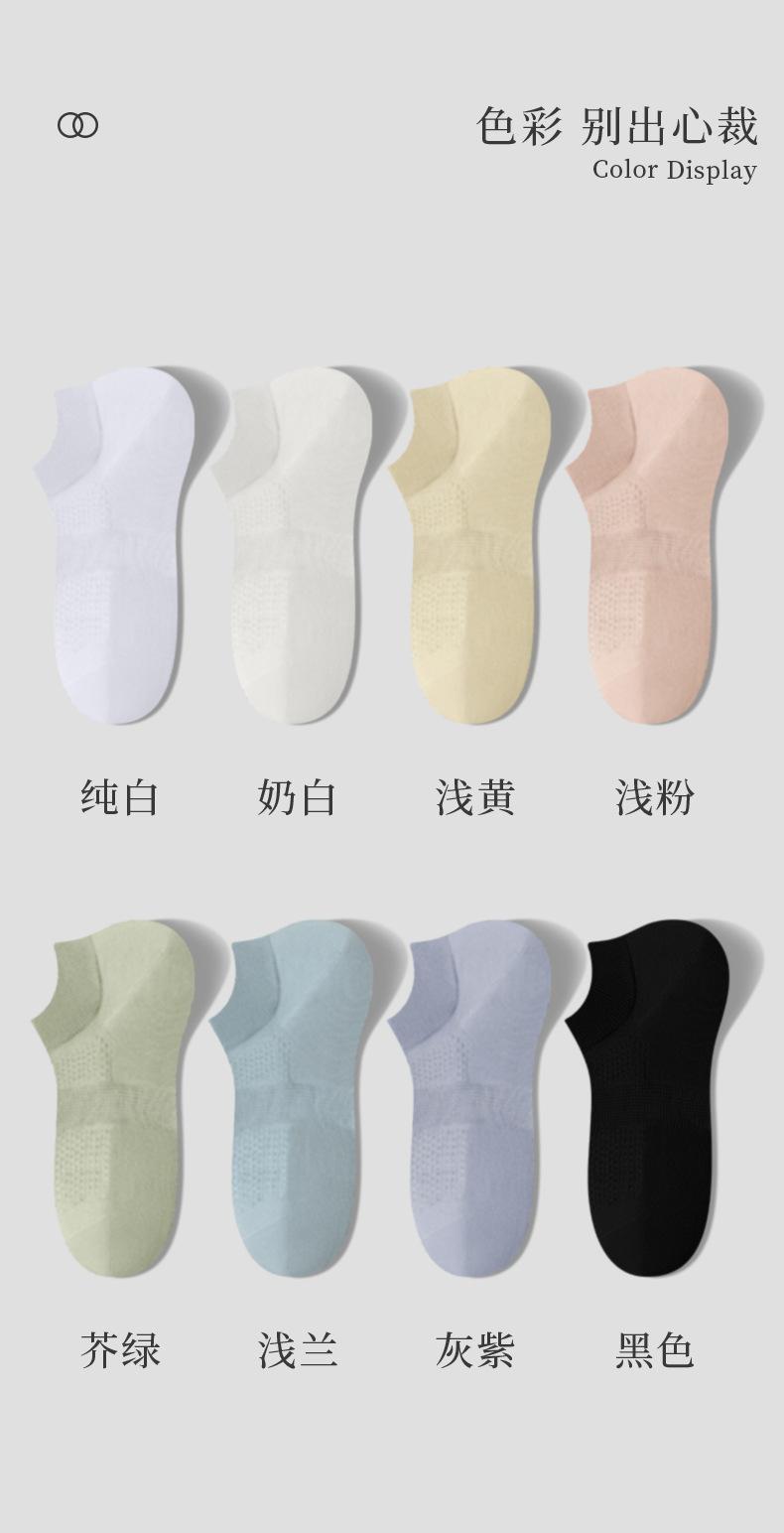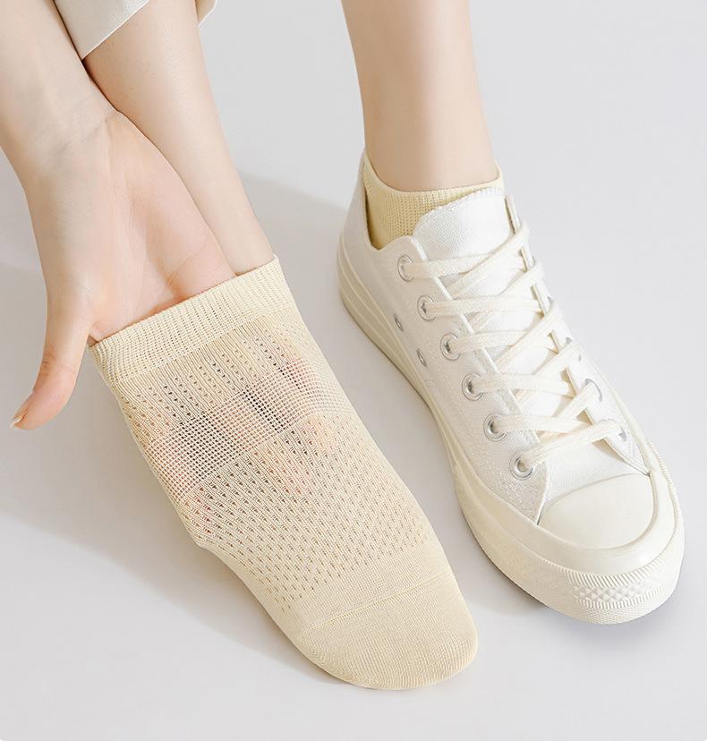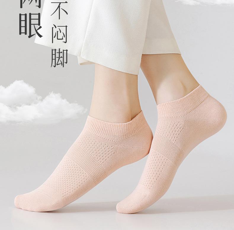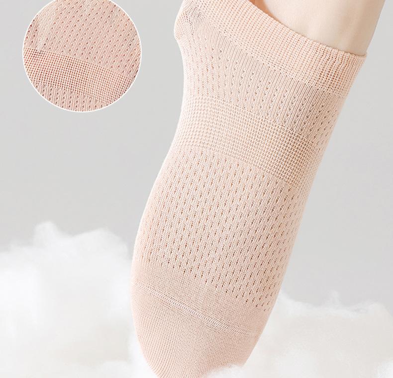 Calcetines de Barco de Malla Fina Transpirable de Verano para Mujer 7A Antibacterianos Desodorantes Calcetines de Algodón Versátiles de Color Sólido Calcetines Cortos Calcetines de Algodón Puro