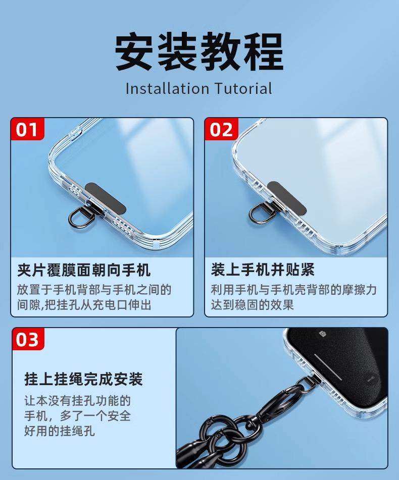 Clip para Cordón de Teléfono Móvil Mini Metal Acero Inoxidable Parche Junta Cadena Cruzada Colgante Cuello Muñeca Teléfono