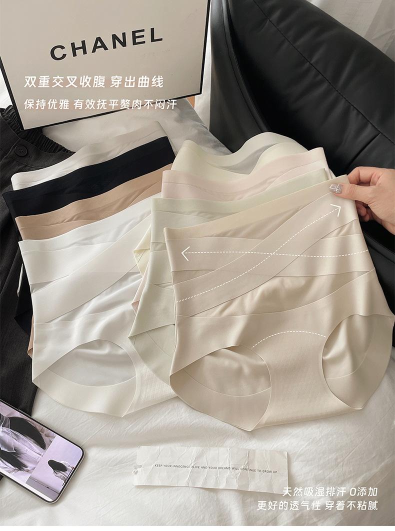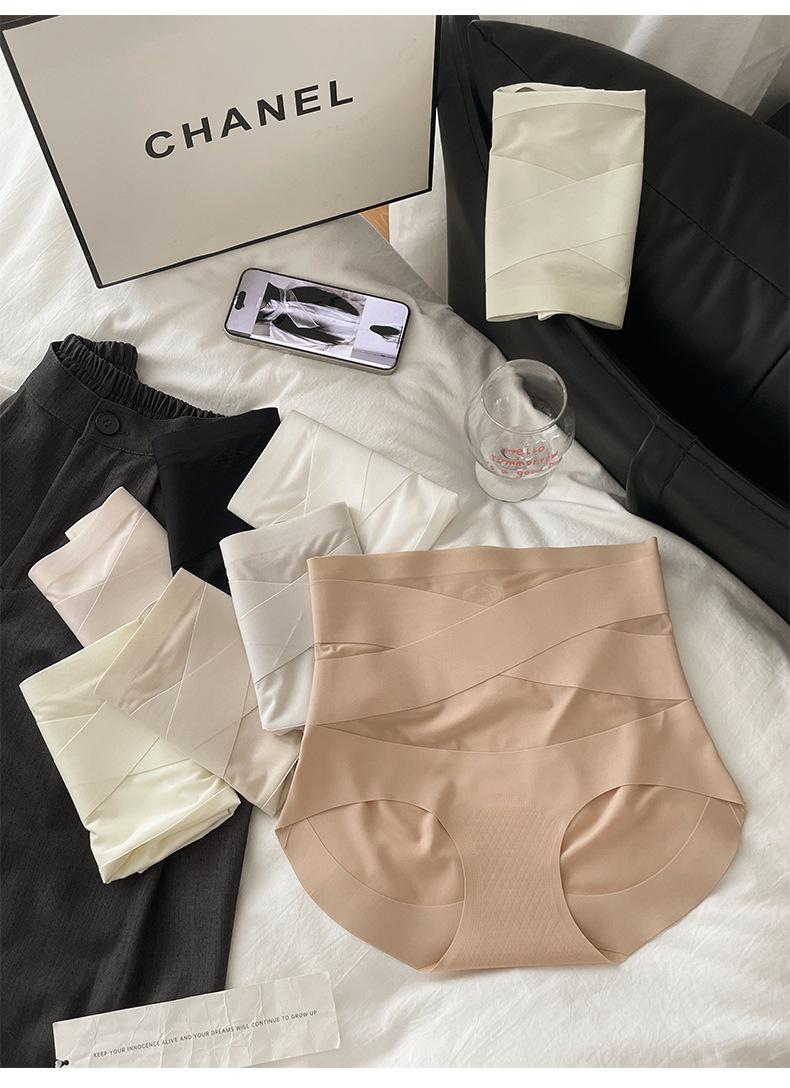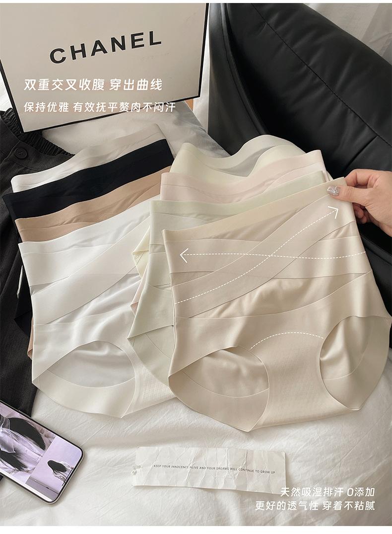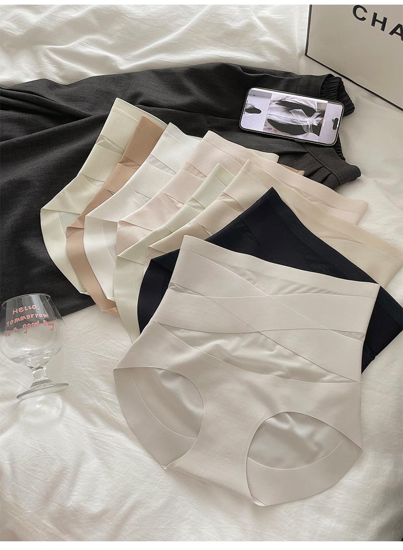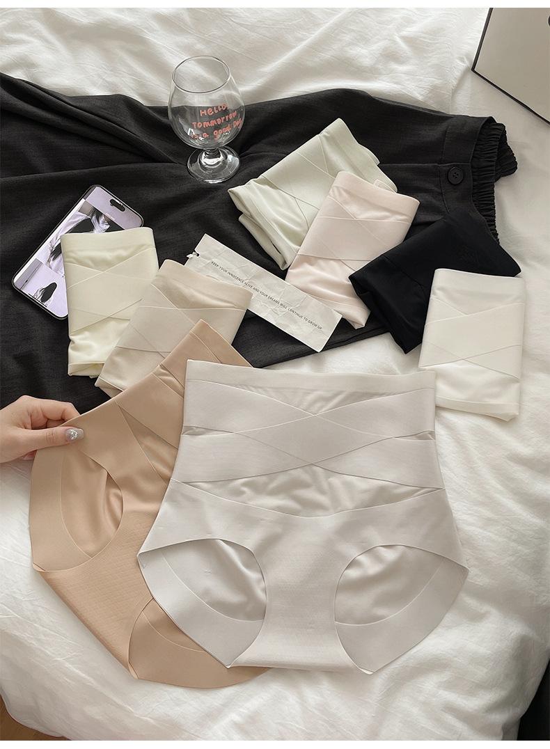 Pantaletas de Cintura Alta con Control de Abdomen Cruzado para Mujer con Entrenador de Cintura Postparto Transpirable Sin Costuras Fitness 7A Calzoncillos Triángulo