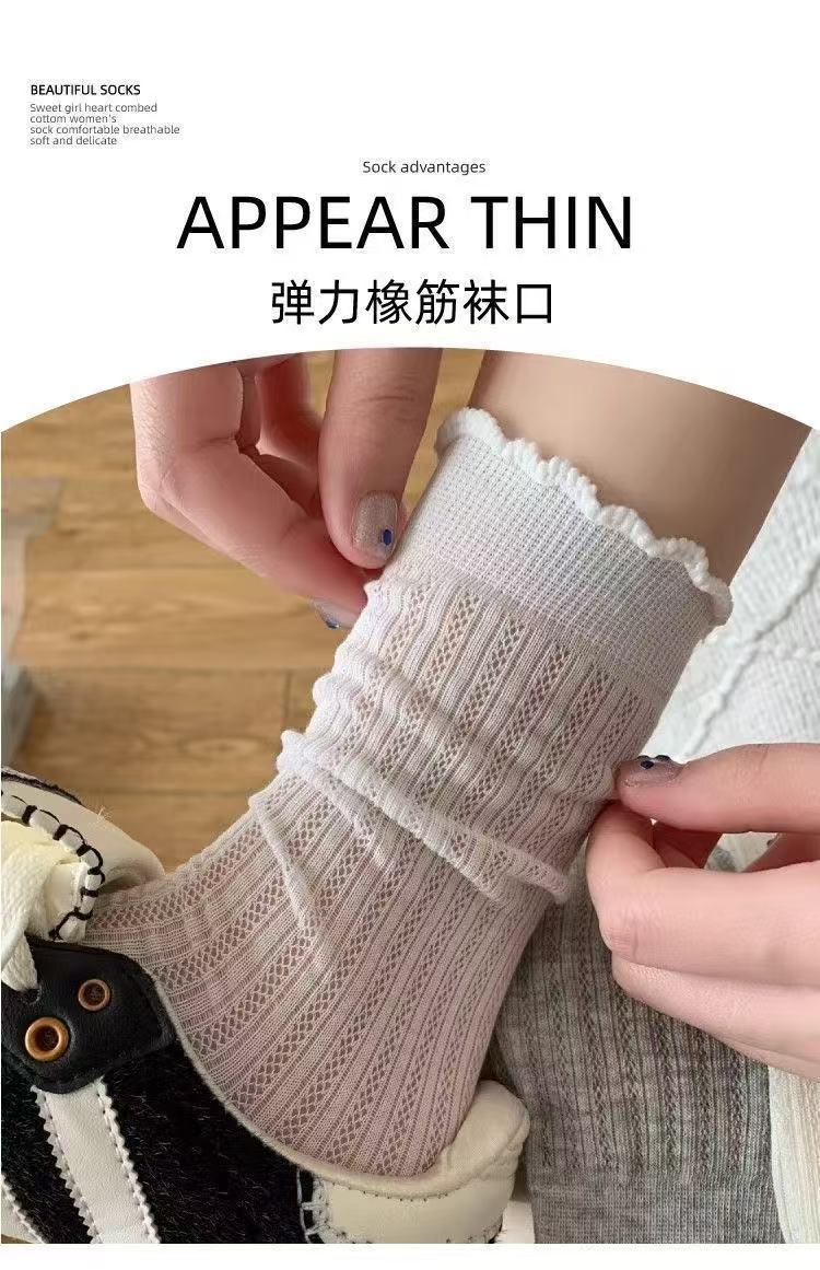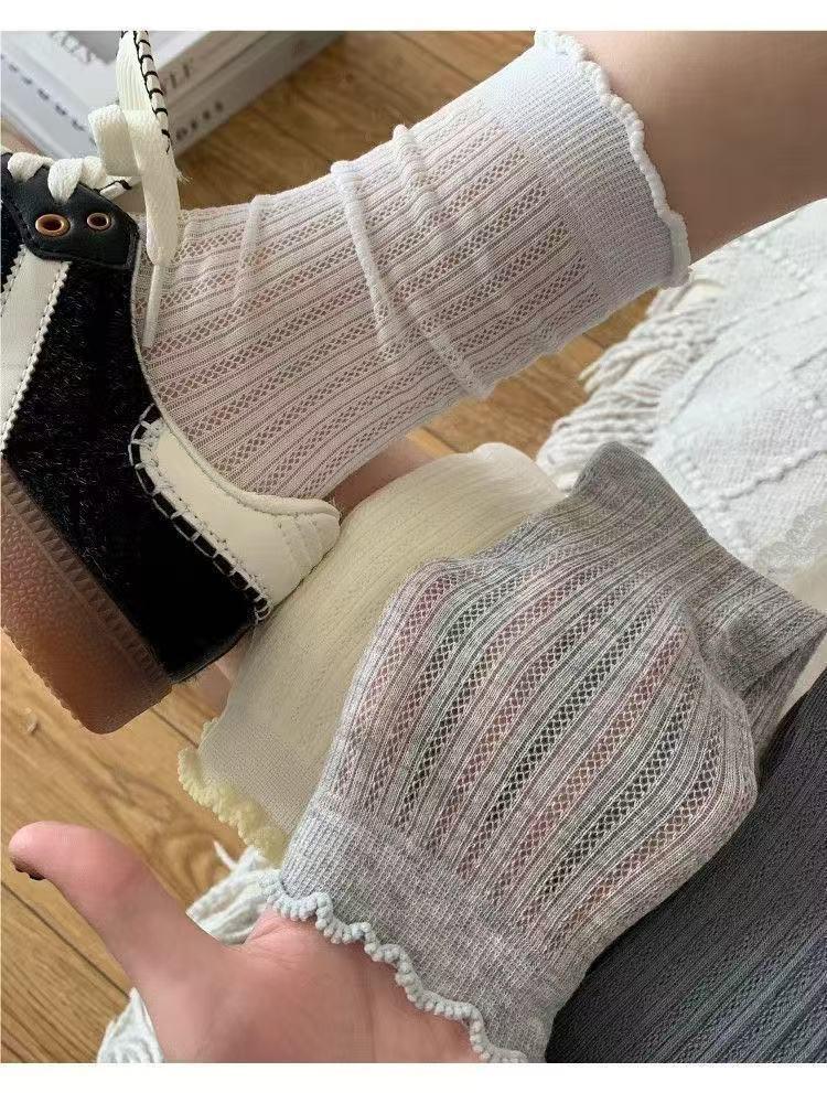 Calcetines de Verano de Malla Fina Hueca Ultraligeros Transpirables Modernos de Color Sólido Versátiles de Media Pantorrilla Calcetines Flojos