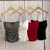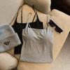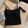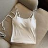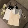 Camisola sencilla de color sólido con almohadillas de sujetador incorporadas, top corto ajustado para mujer, adecuado para usar fuera o como top de tubo