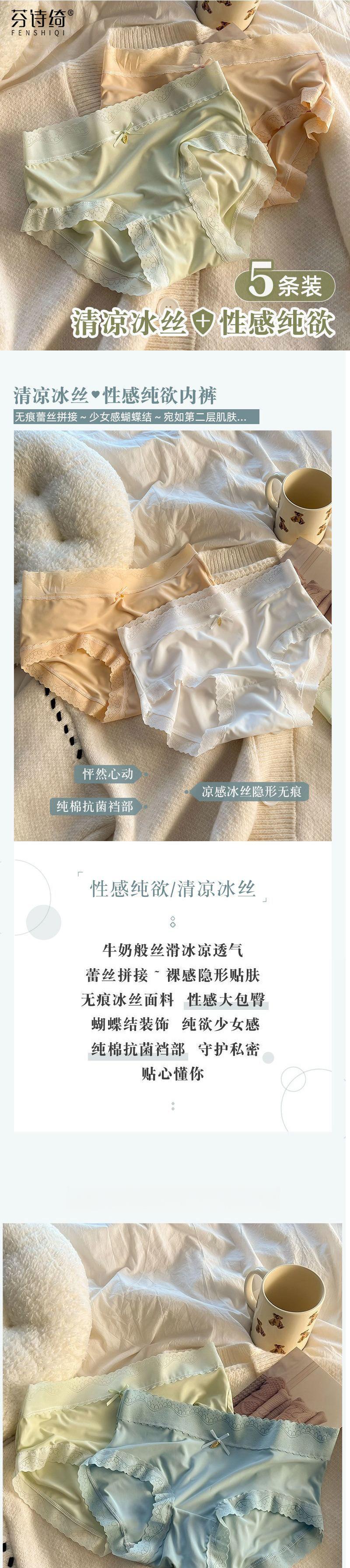 Ropa Interior de Algodón Transpirable en la Entrepierna, Calzoncillos Sexy de Estilo Puro Lujurioso para Chica Dulce de Cintura Media sin Costuras de Seda de Hielo