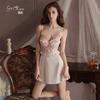 Dz Guiruo Sexy Escote en V Profundo con Almohadilla para el Busto Íntimos Apasionado Caliente Espalda Descubierta Suave Satén Camisón Bata Exterior Conjunto 4957