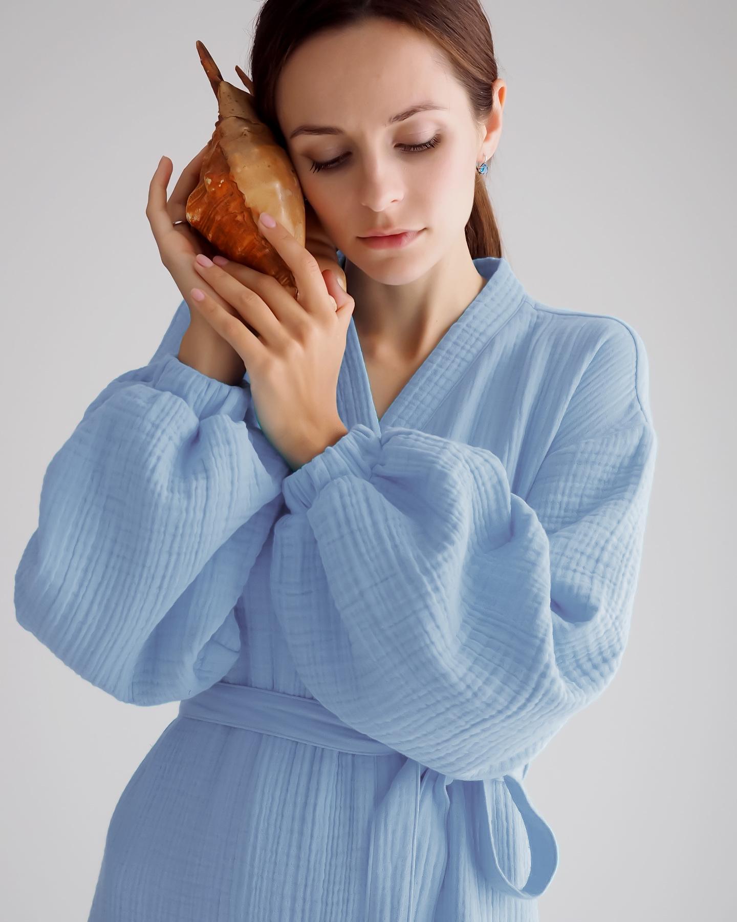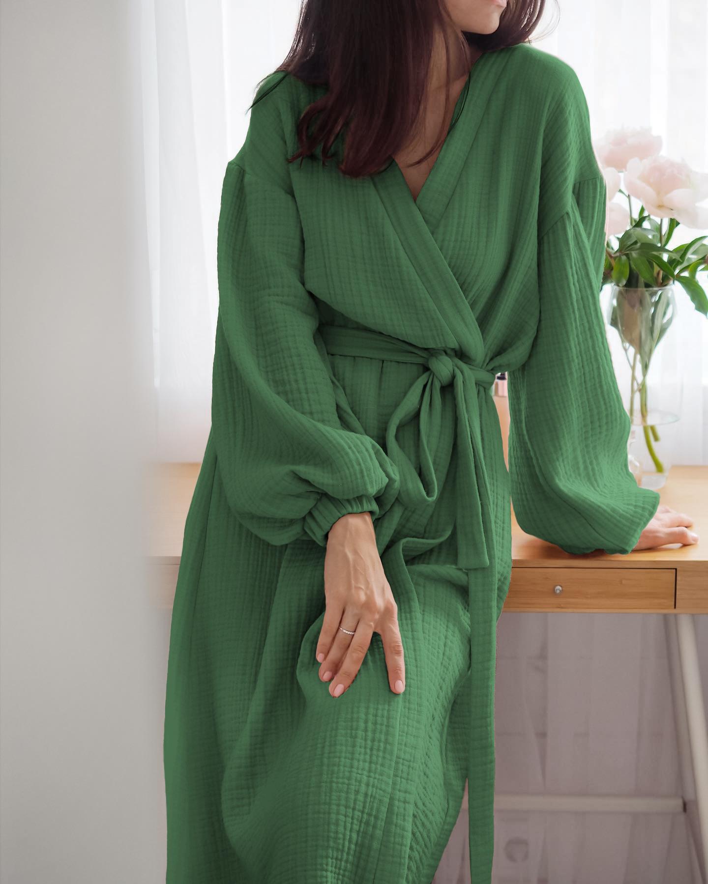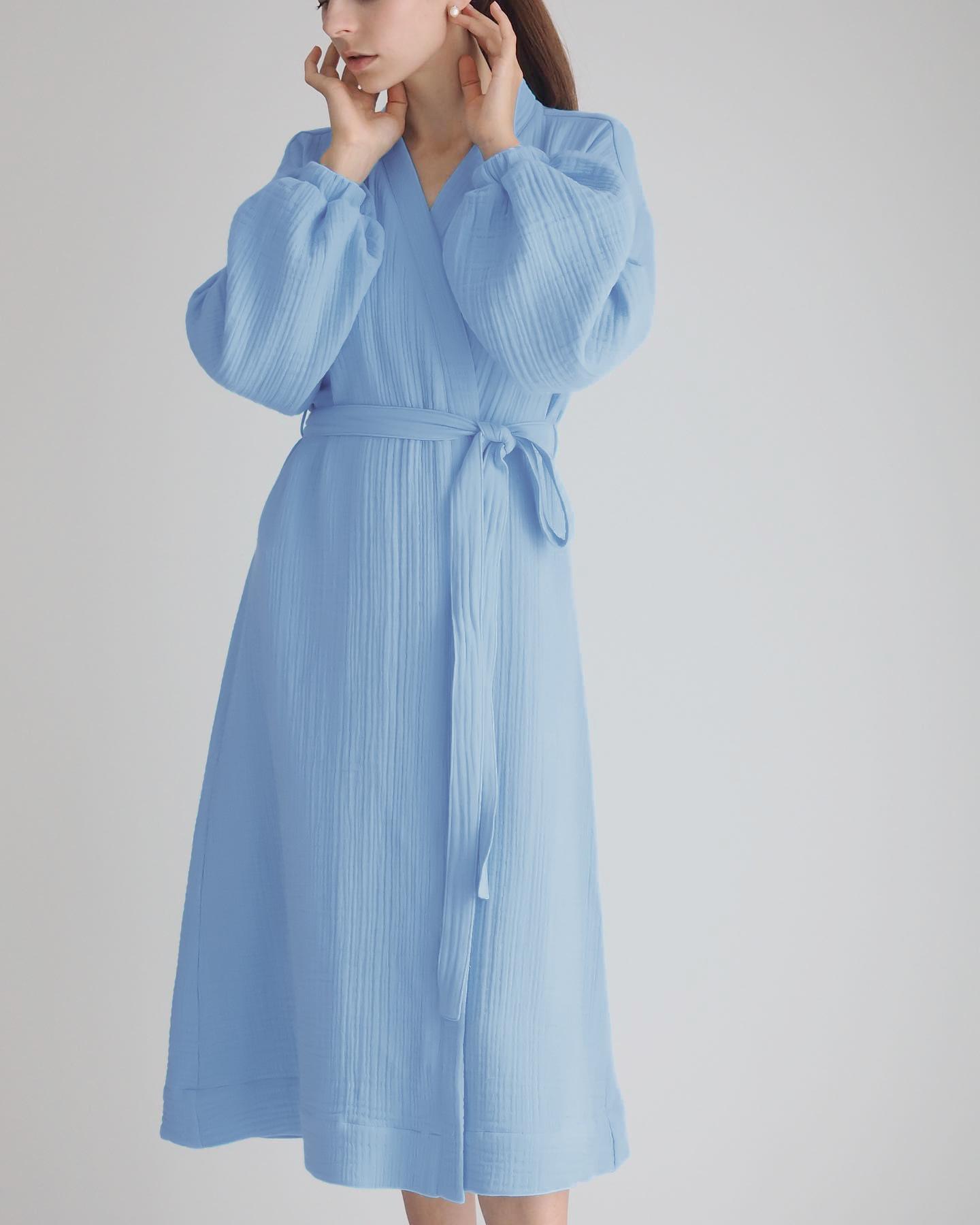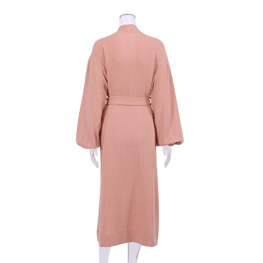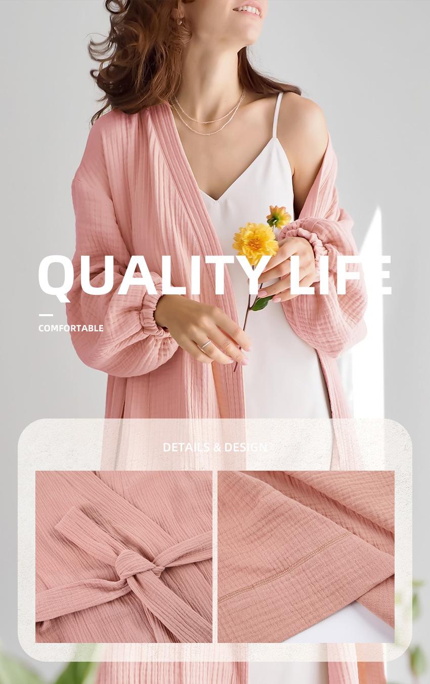 Otoño Nuevo Producto 2025 Algodón Puro Hilo de Doble Capa Cómodo y Delicado con la Piel Bata Larga Pijama Venta al por Mayor Transfronteriza Ropa de Casa para Mujer