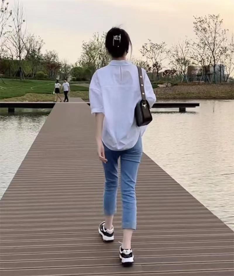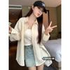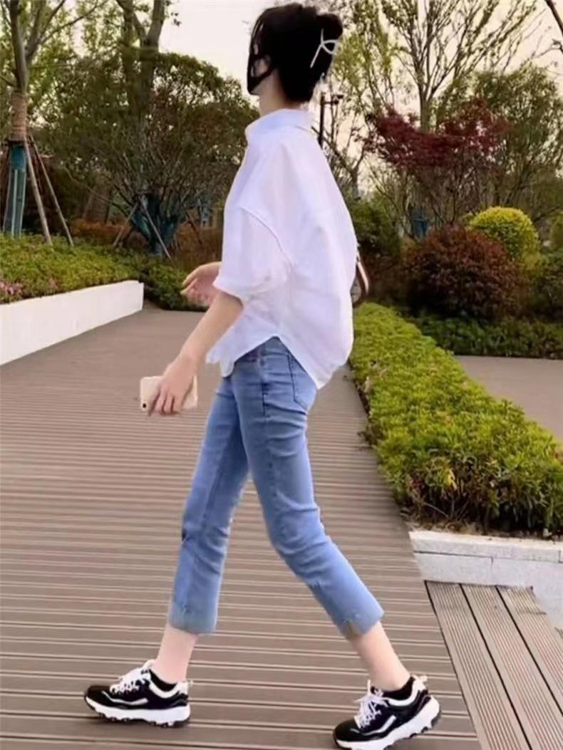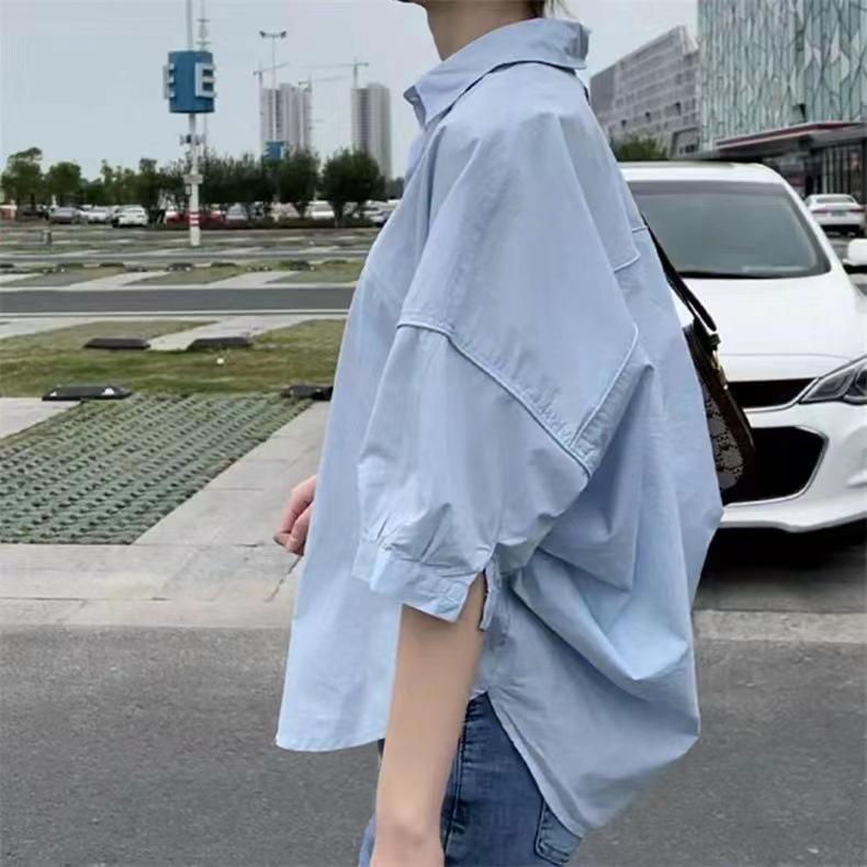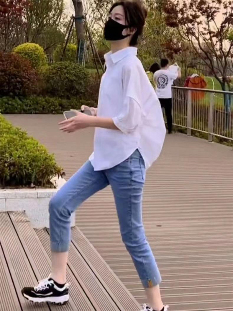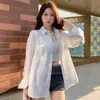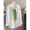 Camisa Blanca Delgada de Manga Media Ropa de Protección Solar para Mujer Primavera 2025 Nuevo Diseño Holgado Ajustado Algodón Camisa Casual Tendencia