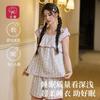 Pijama de Tirantes de Gasa de Doble Capa de Algodón Puro, Estilo Pastoral Mangas Cortas con Volantes Pequeños, Conjunto de Ropa para el Hogar de Algodón Delgado Lindo para Primavera y Verano