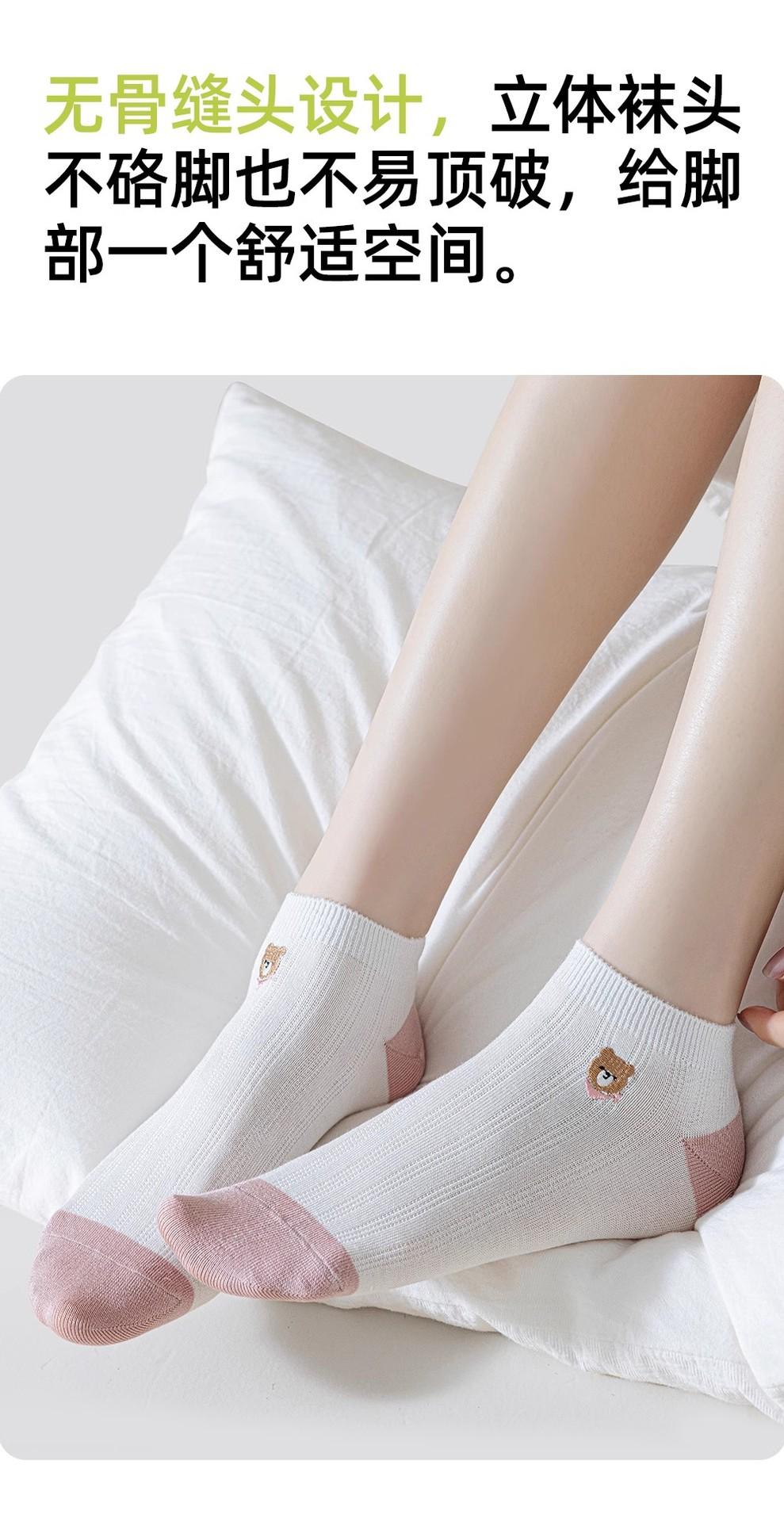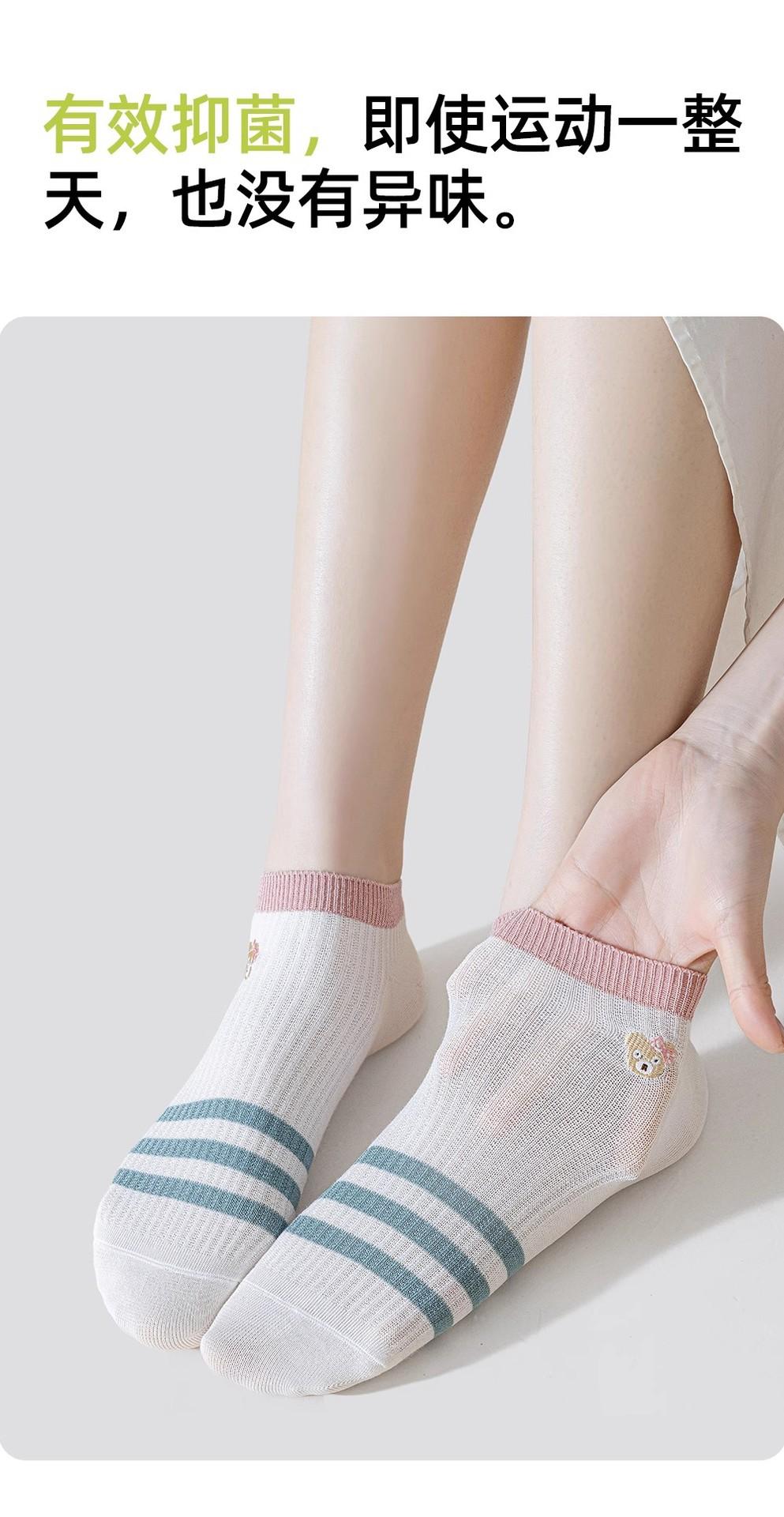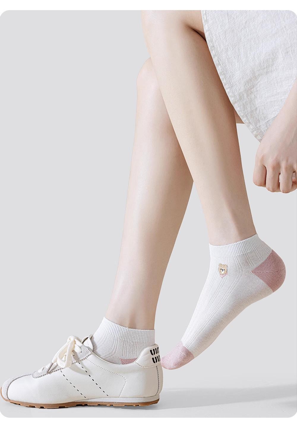 Calcetines de Osito para Mujer Calcetines Finos de Verano Antibacterianos de Malla Transpirables Antideslizantes que No se Caen Bordados Estilo Japonés Lindos Calcetines de Barco