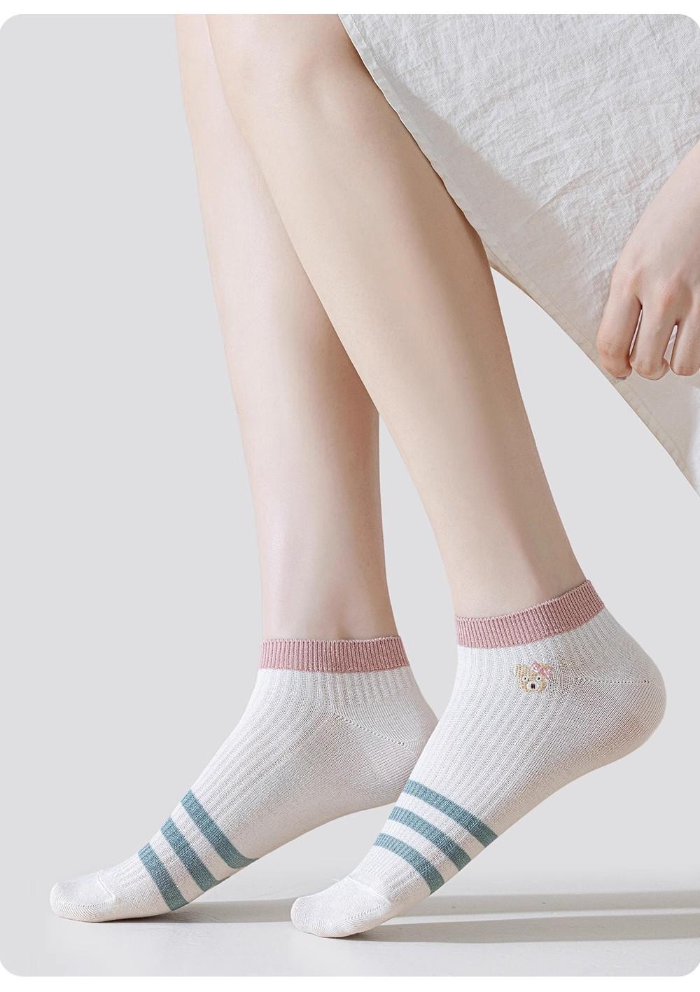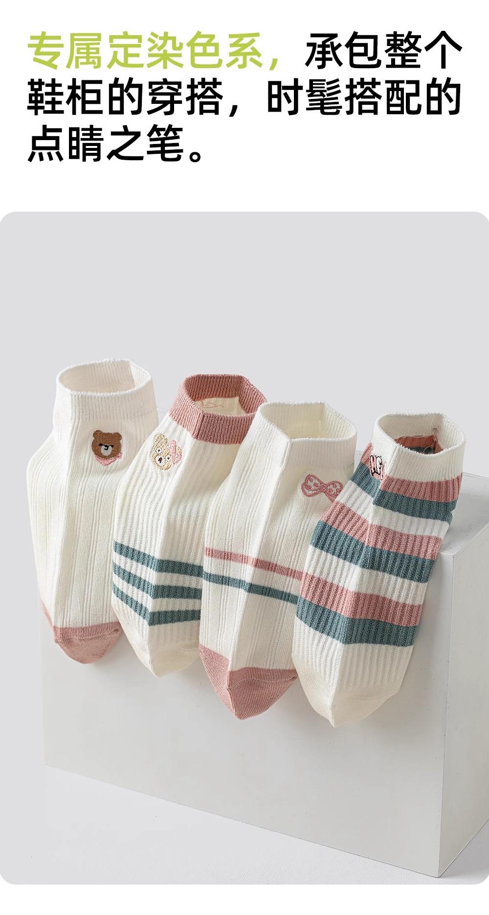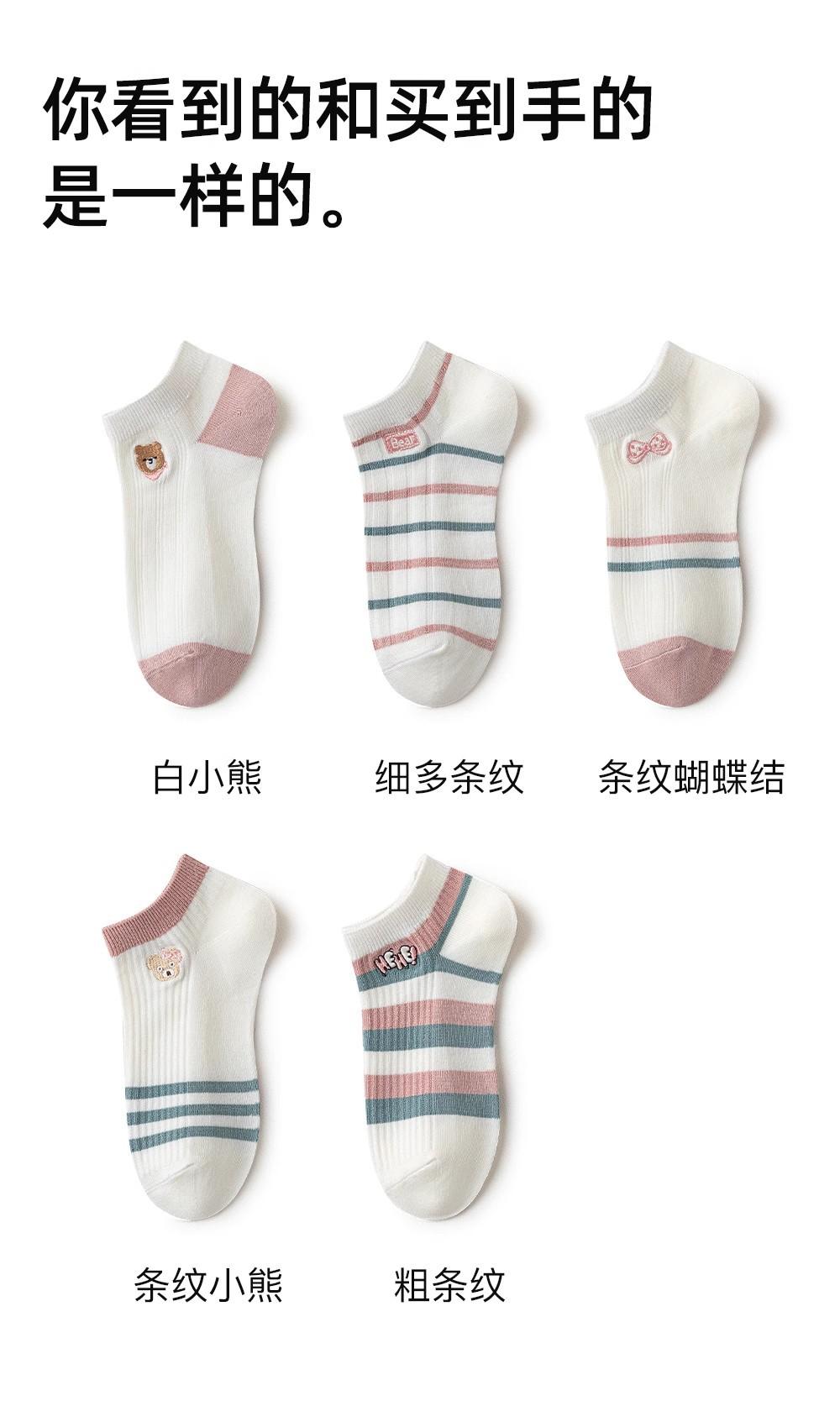 Calcetines de Osito para Mujer Calcetines Finos de Verano Antibacterianos de Malla Transpirables Antideslizantes que No se Caen Bordados Estilo Japonés Lindos Calcetines de Barco