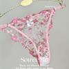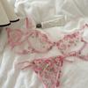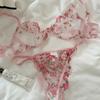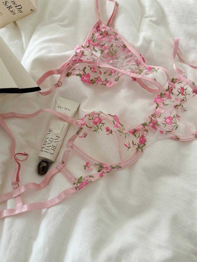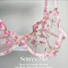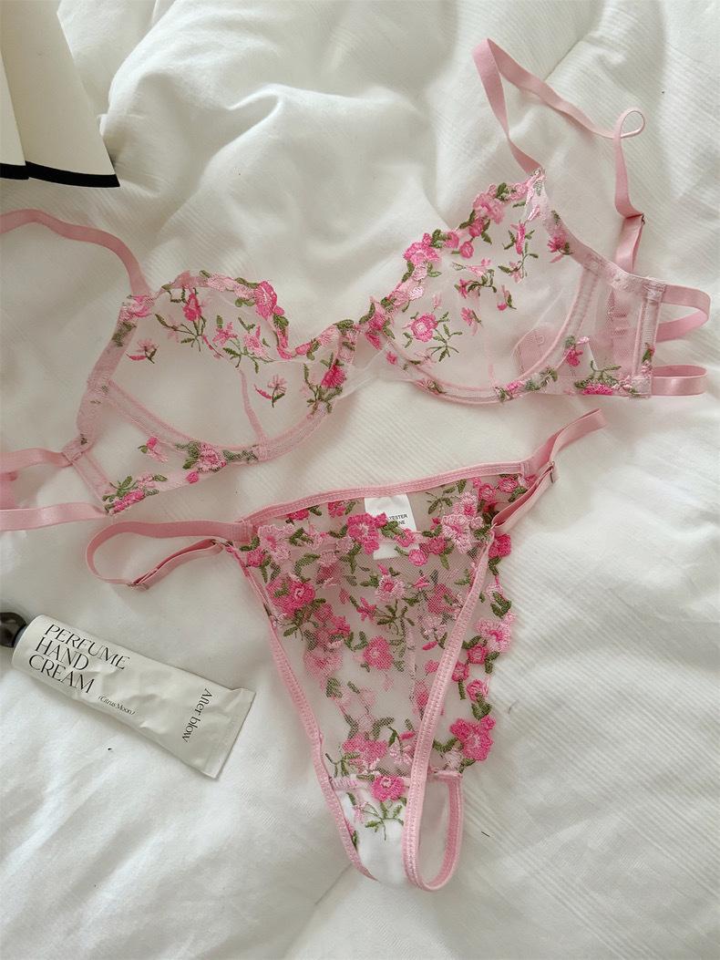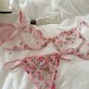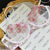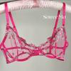 Conjunto de Lencería Sexy Push-Up Transpirable de Encaje Floral Bordado Estilo Nicho Francés Copa Delgada Rojo Rosa