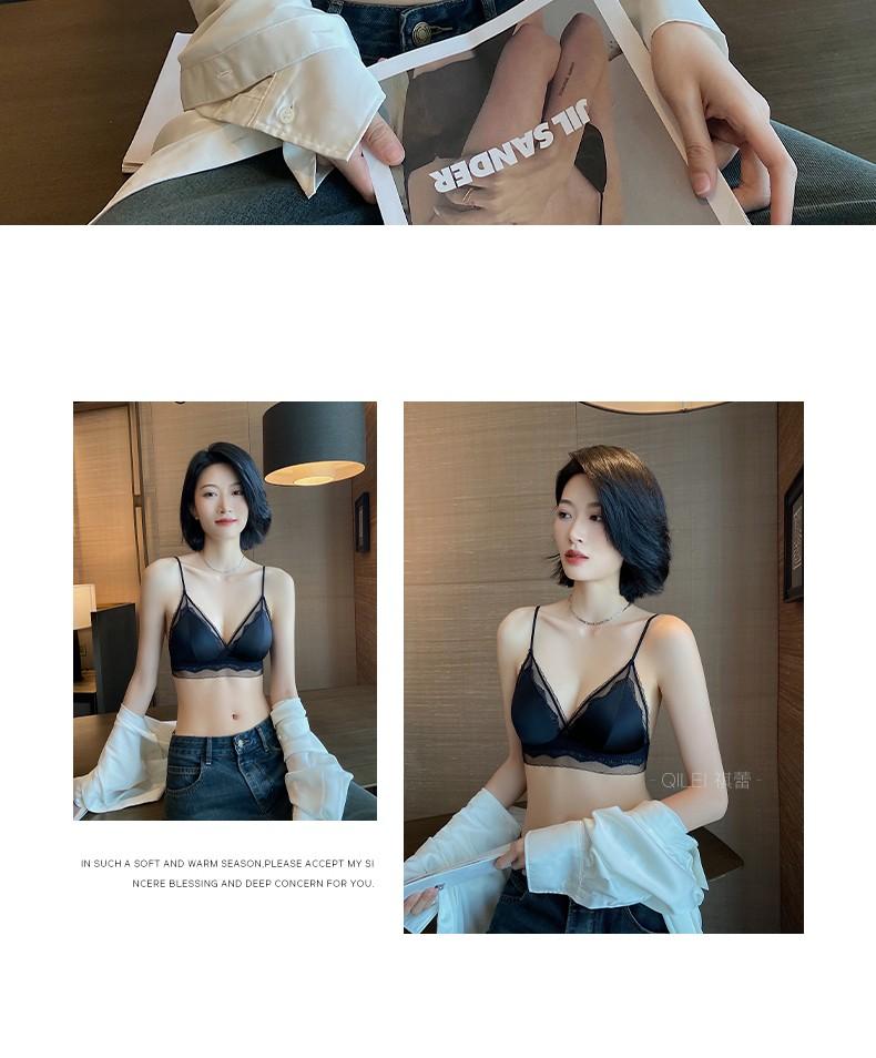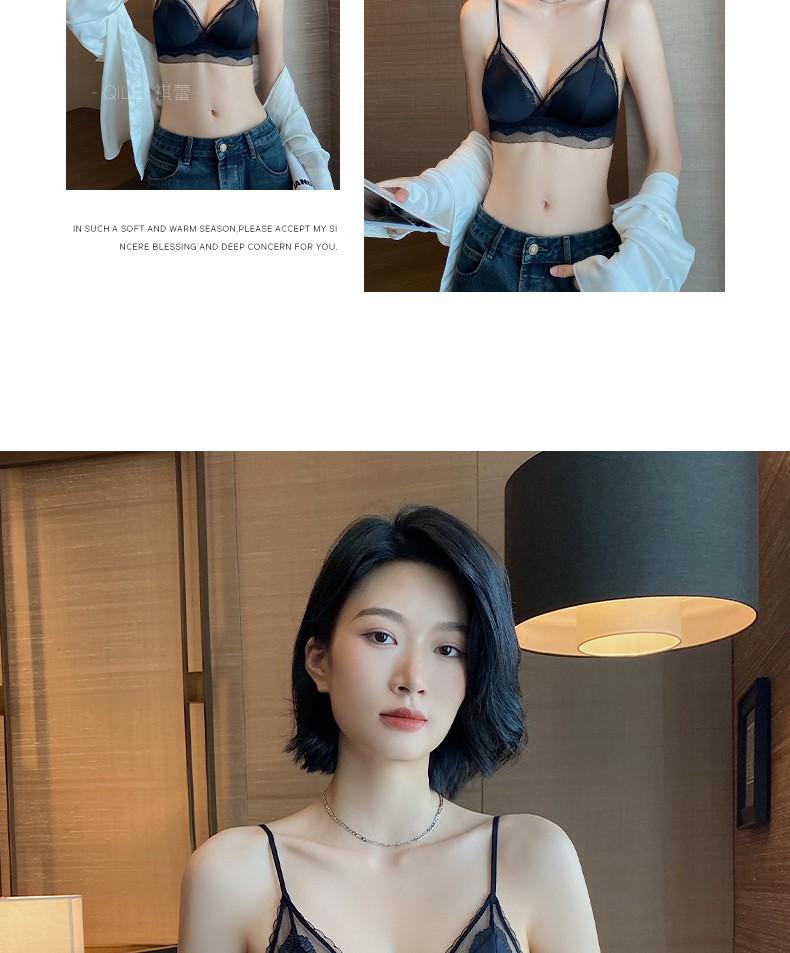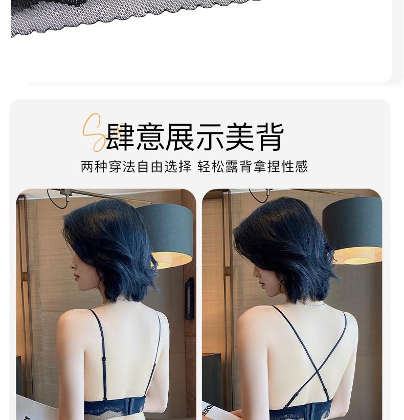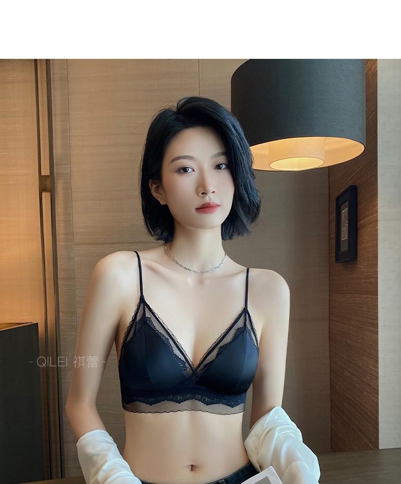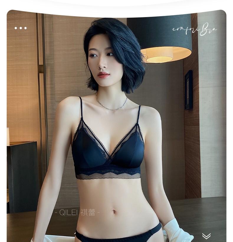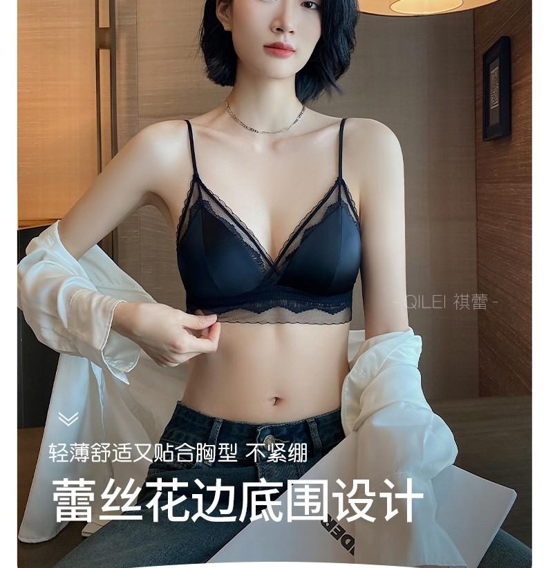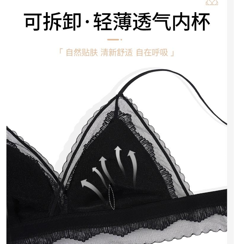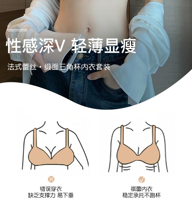 Lencería Sexy para Mujer, Estilo Delgado de Verano, Copa Triangular Francesa Minimiza Busto Grande, Tirantes Delgados, Hermoso Conjunto de Brasier de Espalda