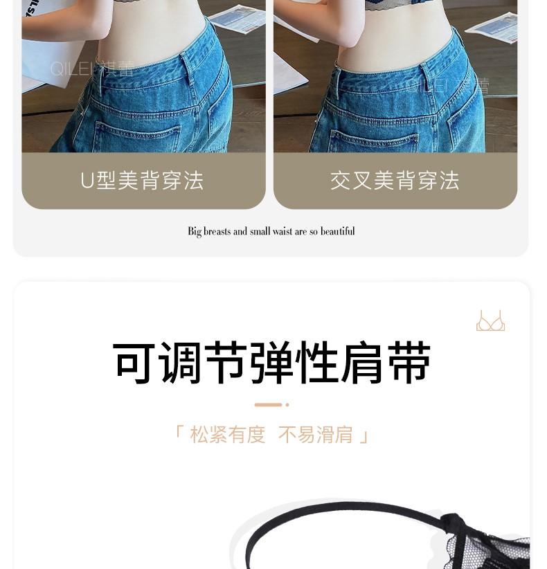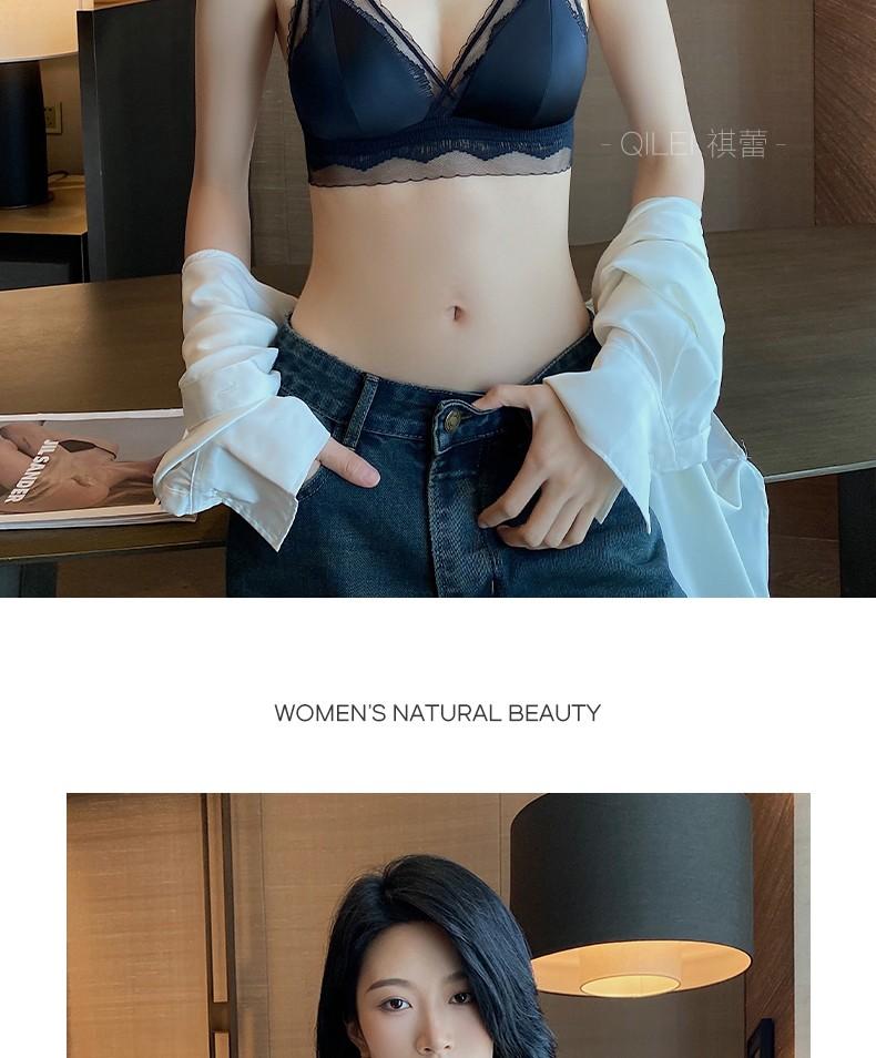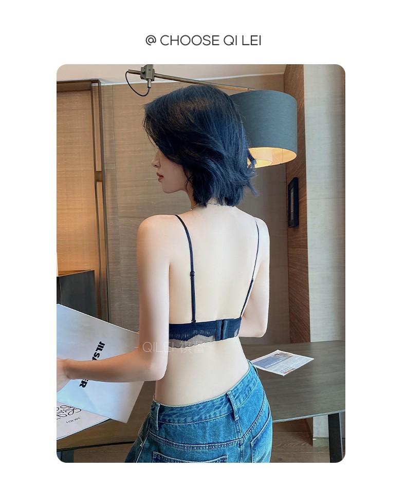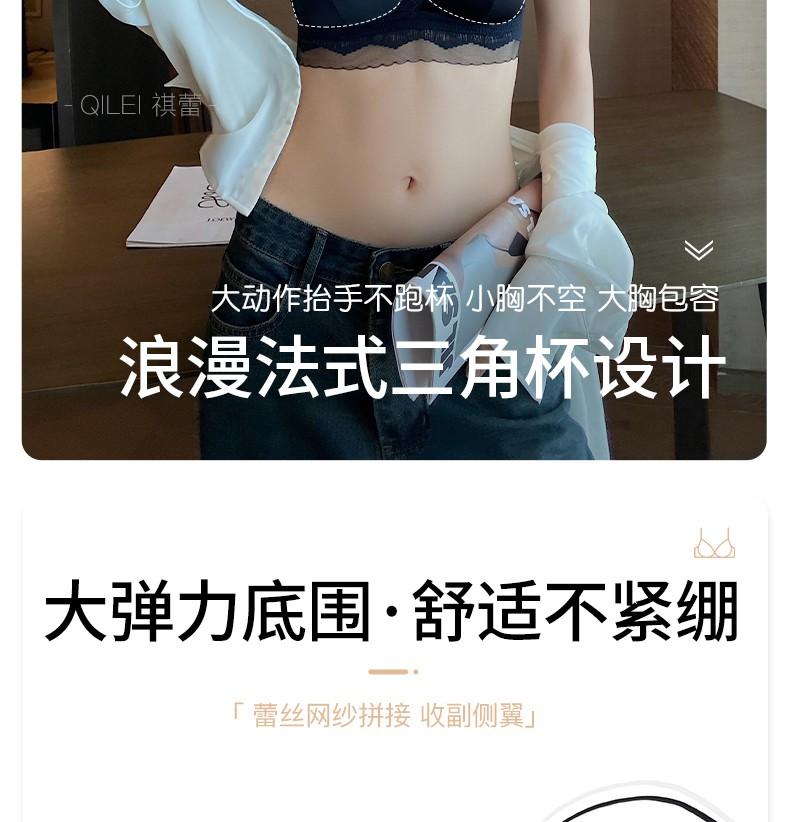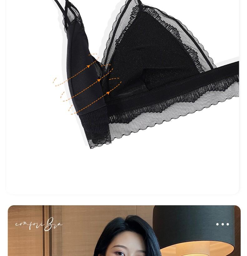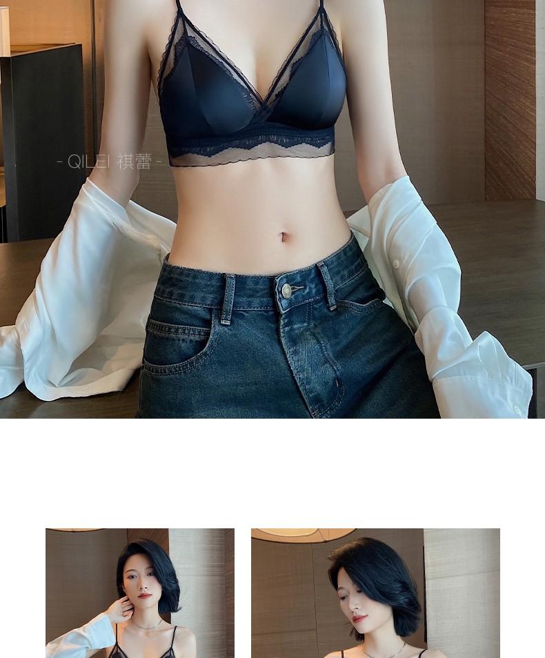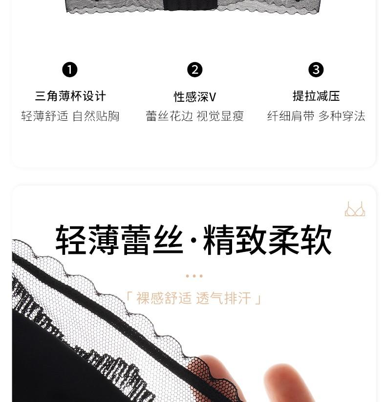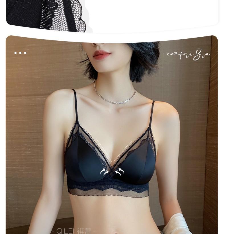 Lencería Sexy para Mujer, Estilo Delgado de Verano, Copa Triangular Francesa Minimiza Busto Grande, Tirantes Delgados, Hermoso Conjunto de Brasier de Espalda