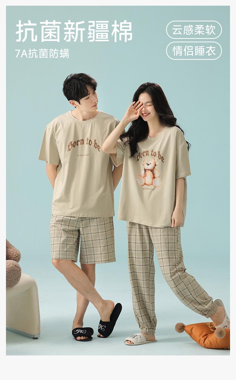 [Algodón Antibacteriano] Pijama de Primavera y Verano para Mujer, Algodón Puro Pareja Dibujos Animados Lindo Camisón Delgado, Ropa de Casa de Manga Corta