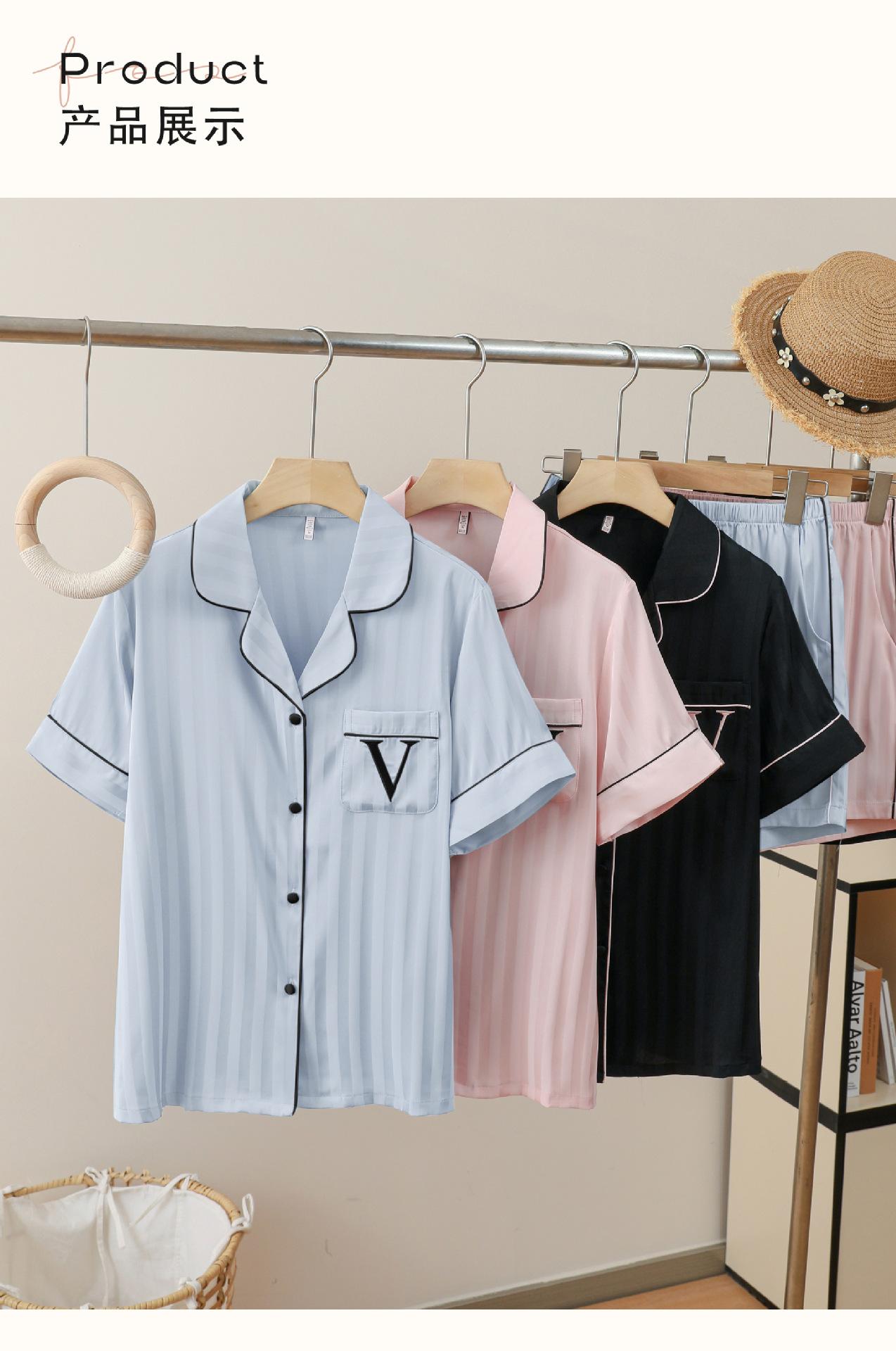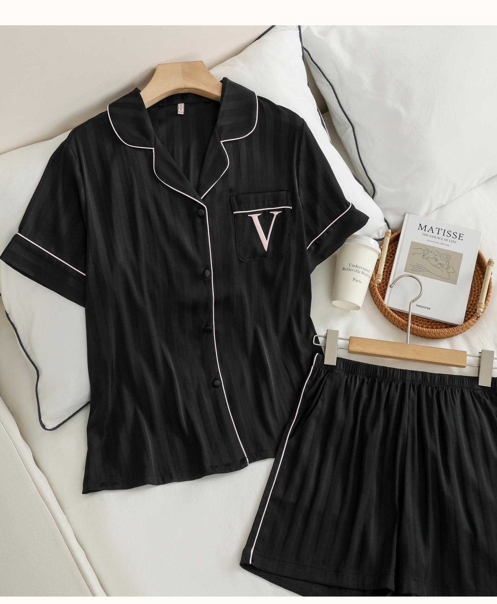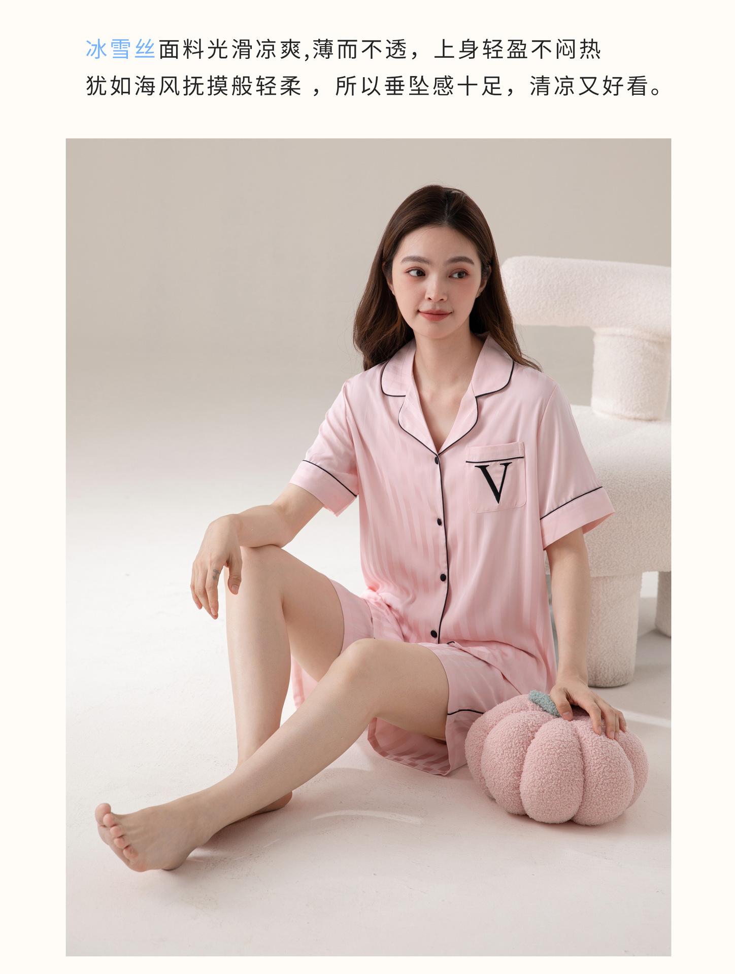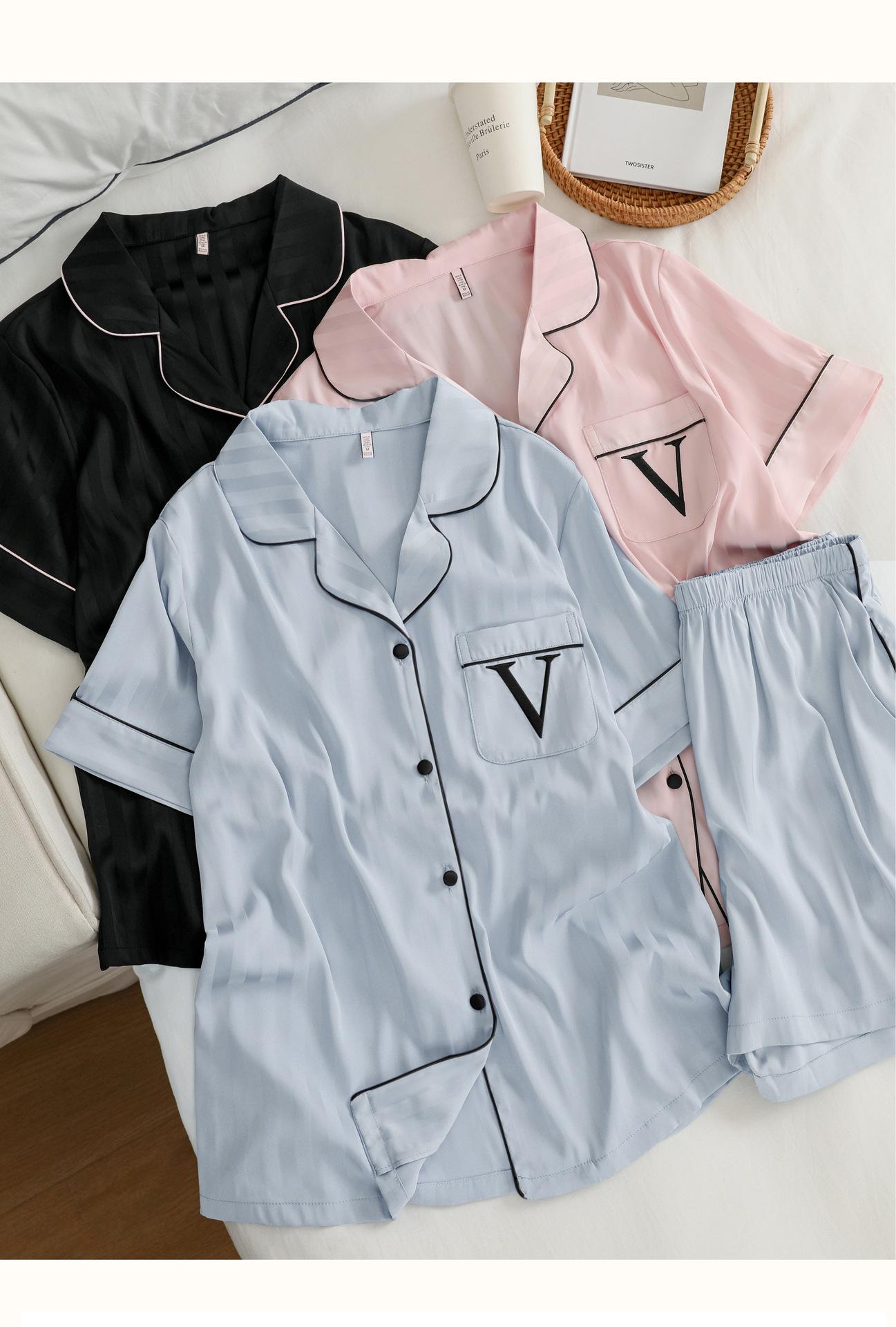 Pijamas de Seda de Hielo para Mujer Verano Manga Corta Shorts Conjunto de Dos Piezas Ropa de Casa de Lujo Ligero de Alta Gama para Mujer Se Puede Usar Afuera Venta al Mayoreo de Pijamas