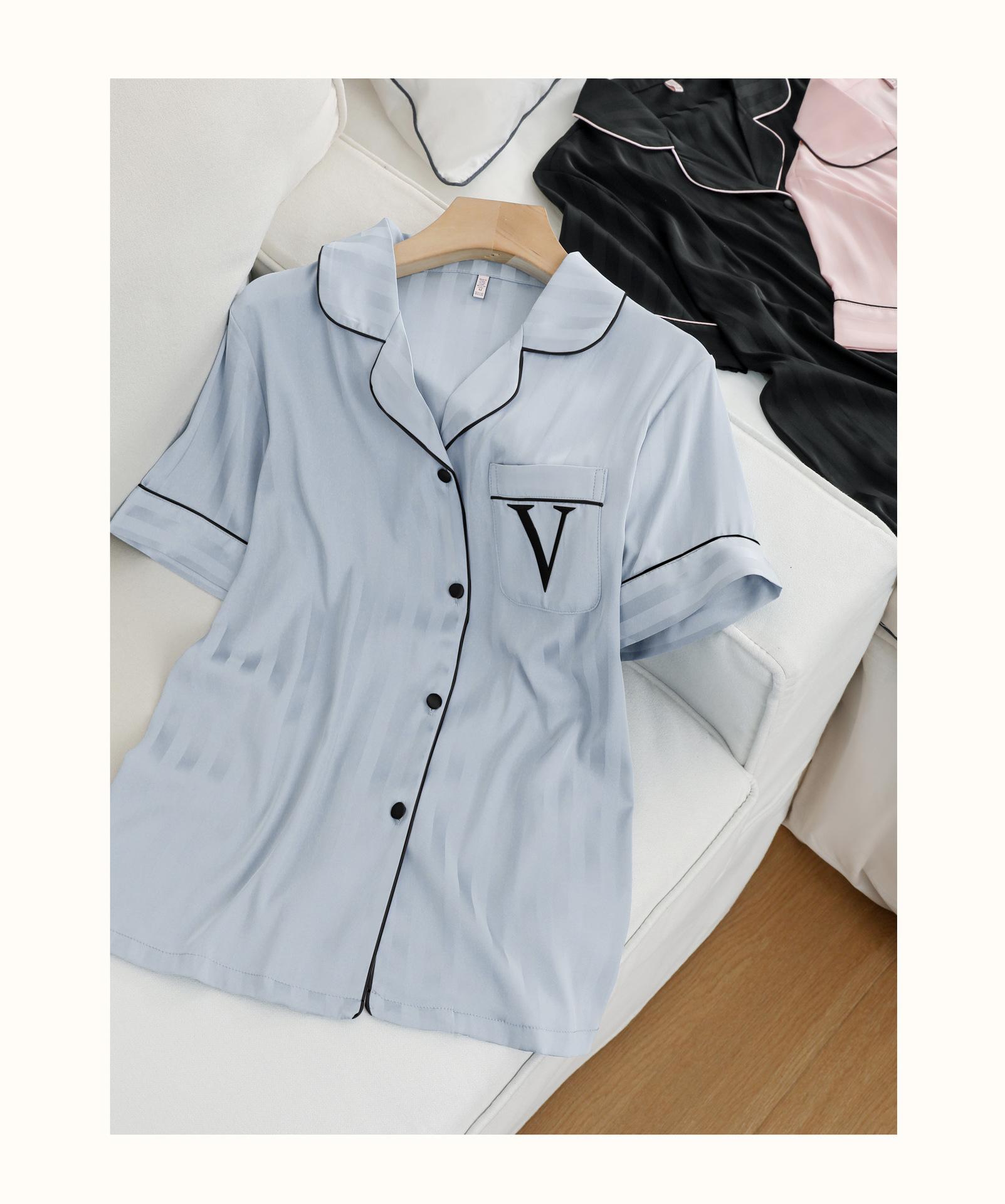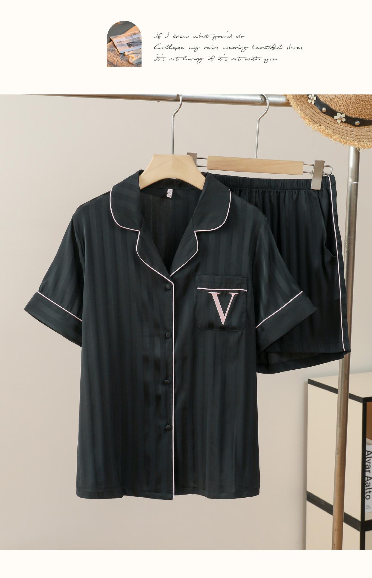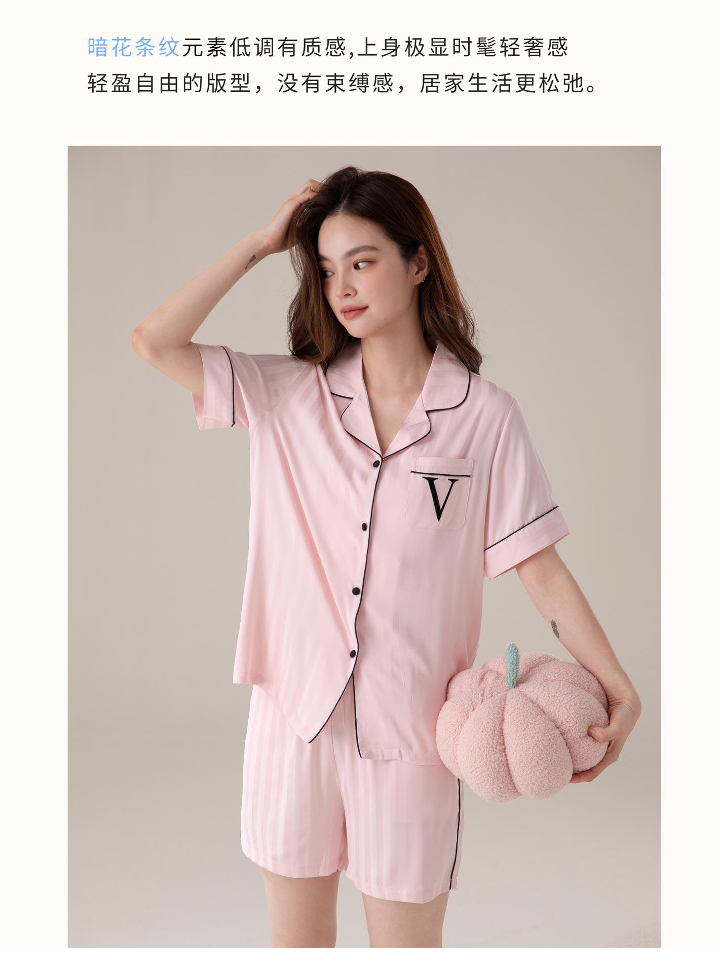 Pijamas de Seda de Hielo para Mujer Verano Manga Corta Shorts Conjunto de Dos Piezas Ropa de Casa de Lujo Ligero de Alta Gama para Mujer Se Puede Usar Afuera Venta al Mayoreo de Pijamas