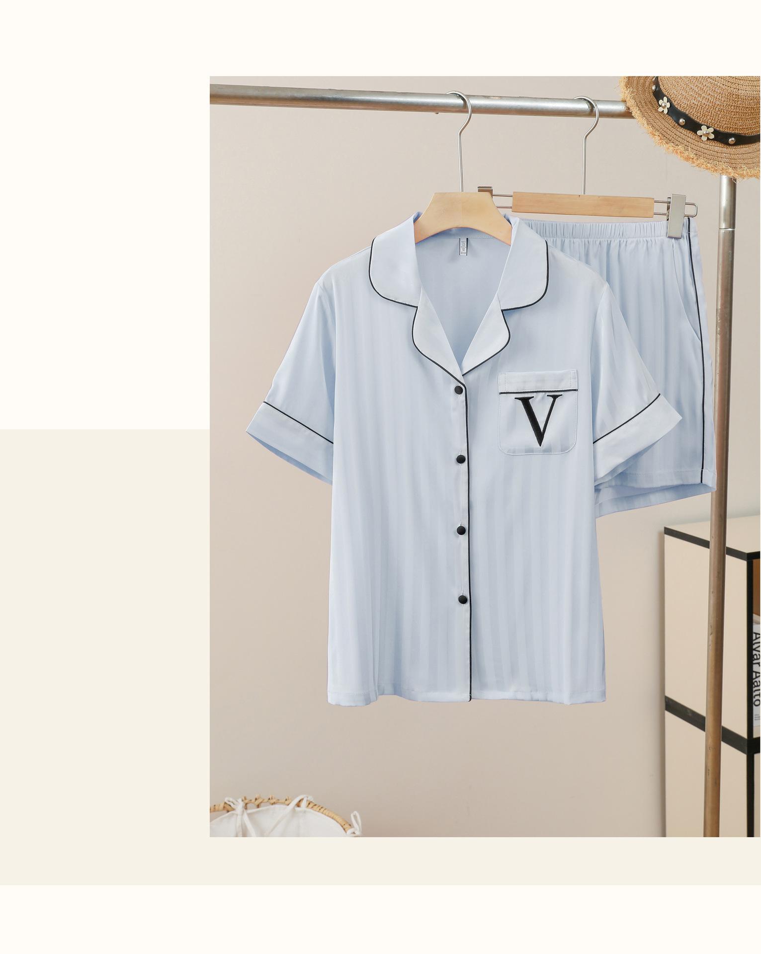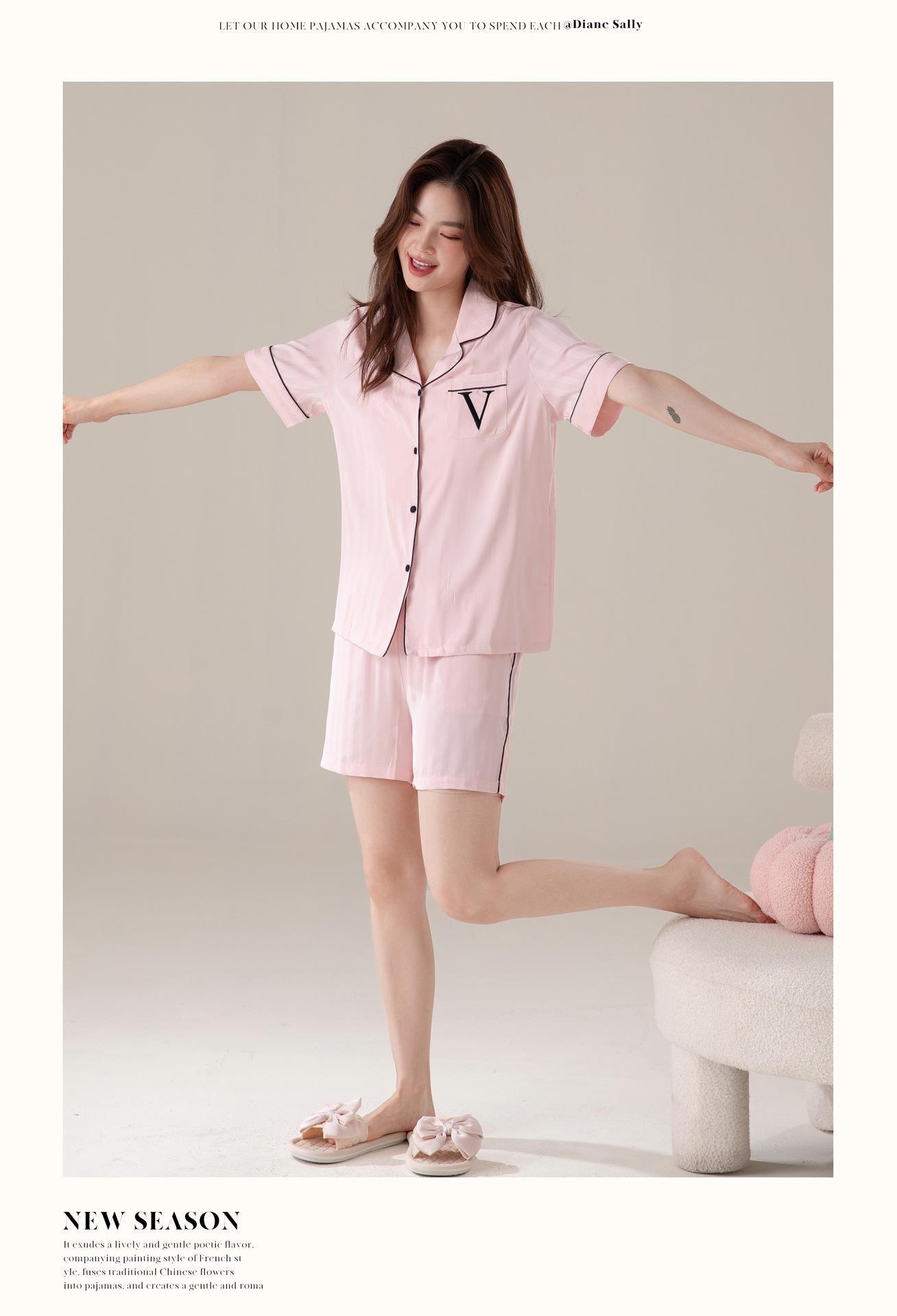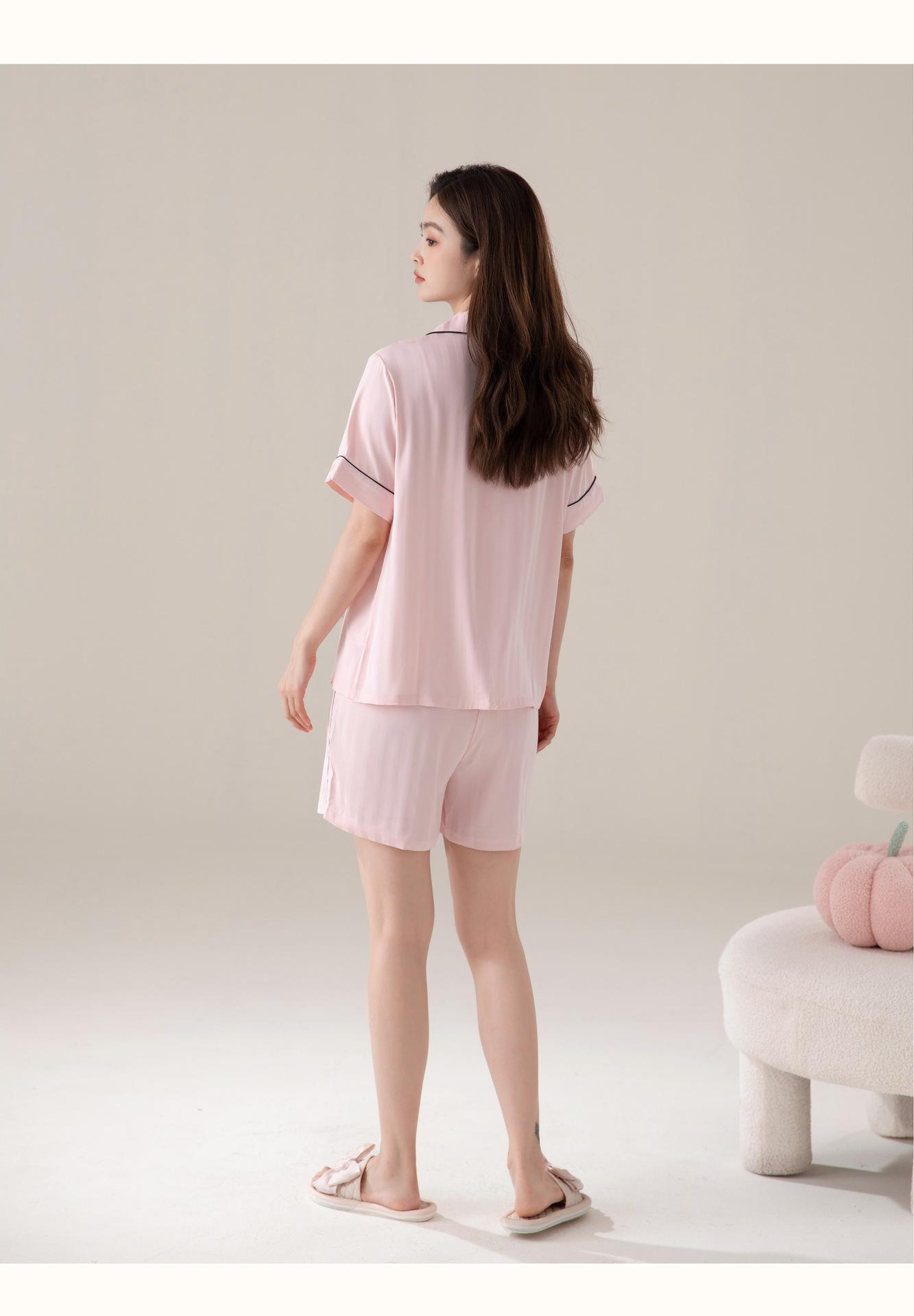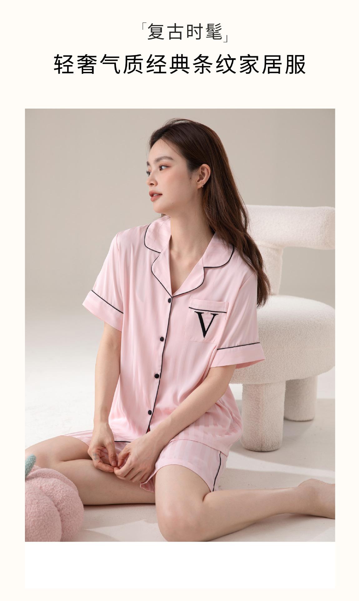 Pijamas de Seda de Hielo para Mujer Verano Manga Corta Shorts Conjunto de Dos Piezas Ropa de Casa de Lujo Ligero de Alta Gama para Mujer Se Puede Usar Afuera Venta al Mayoreo de Pijamas