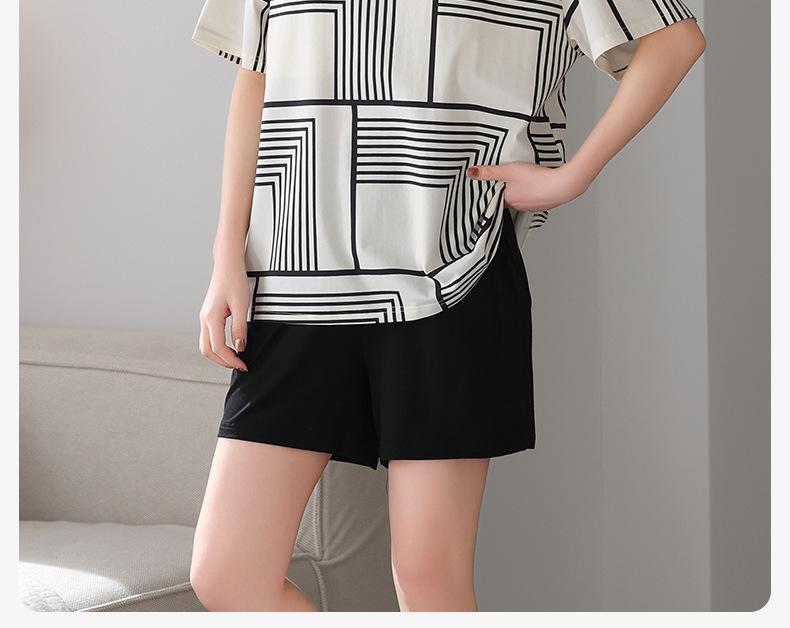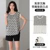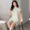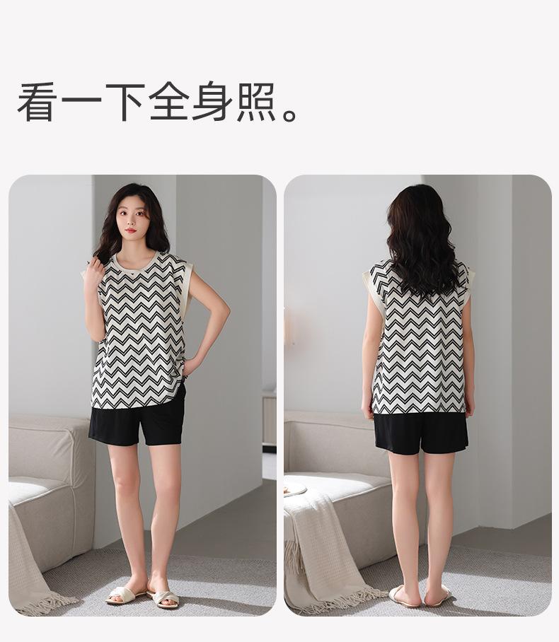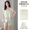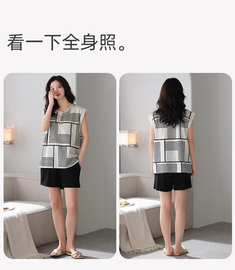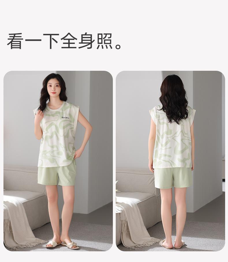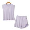 Pijama Fresco de Verano de Nuevo Estilo con Almohadillas en el Busto para Mujer, Algodón Modal de Manga Corta con Shorts, Traje sin Mangas Sencillo para el Hogar