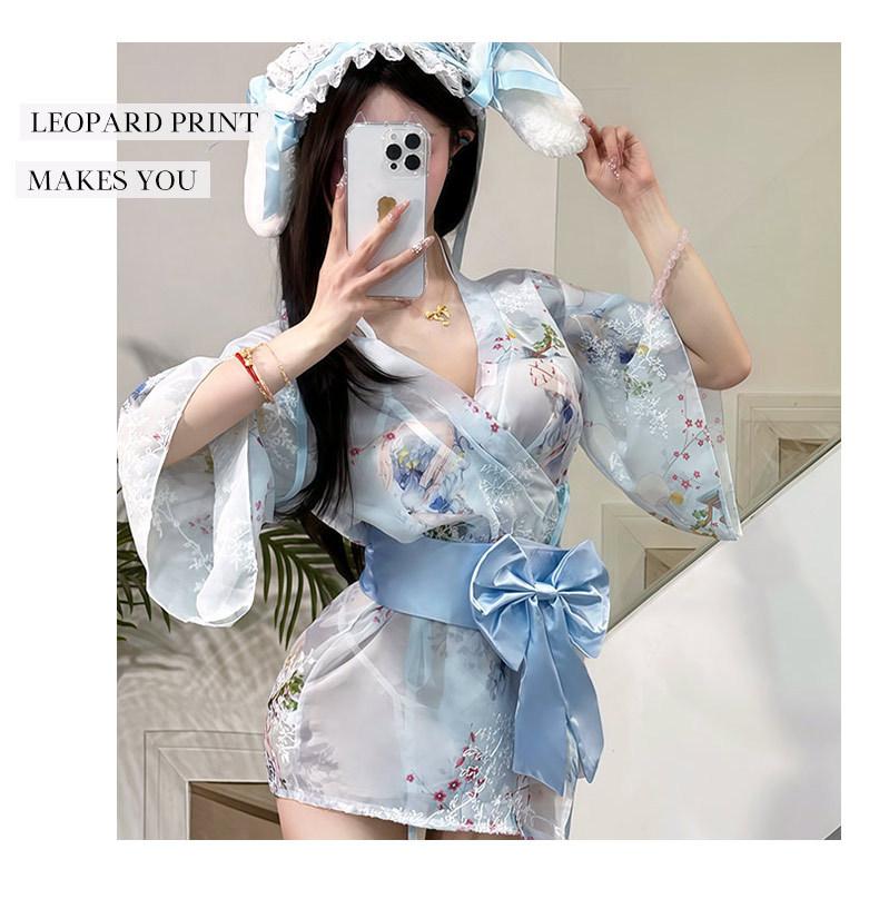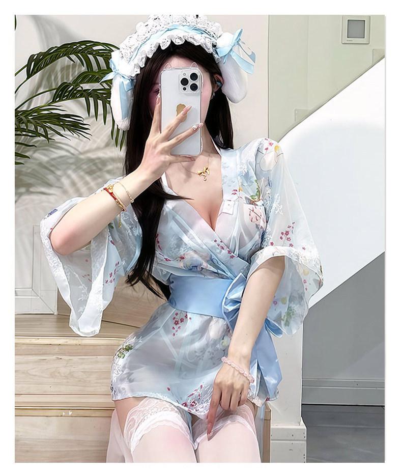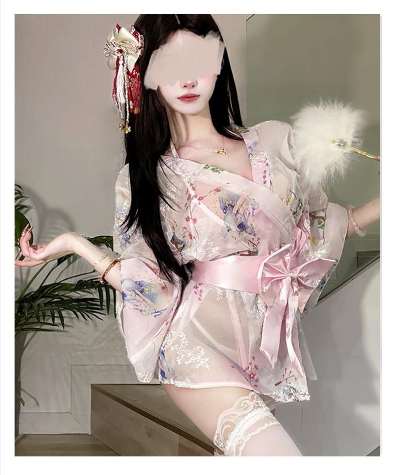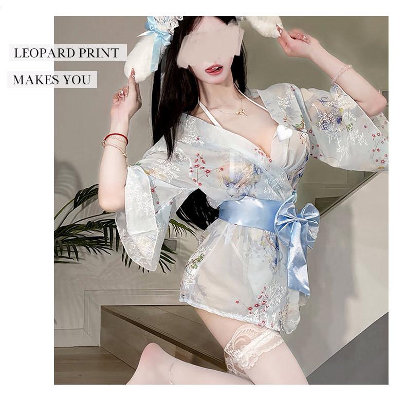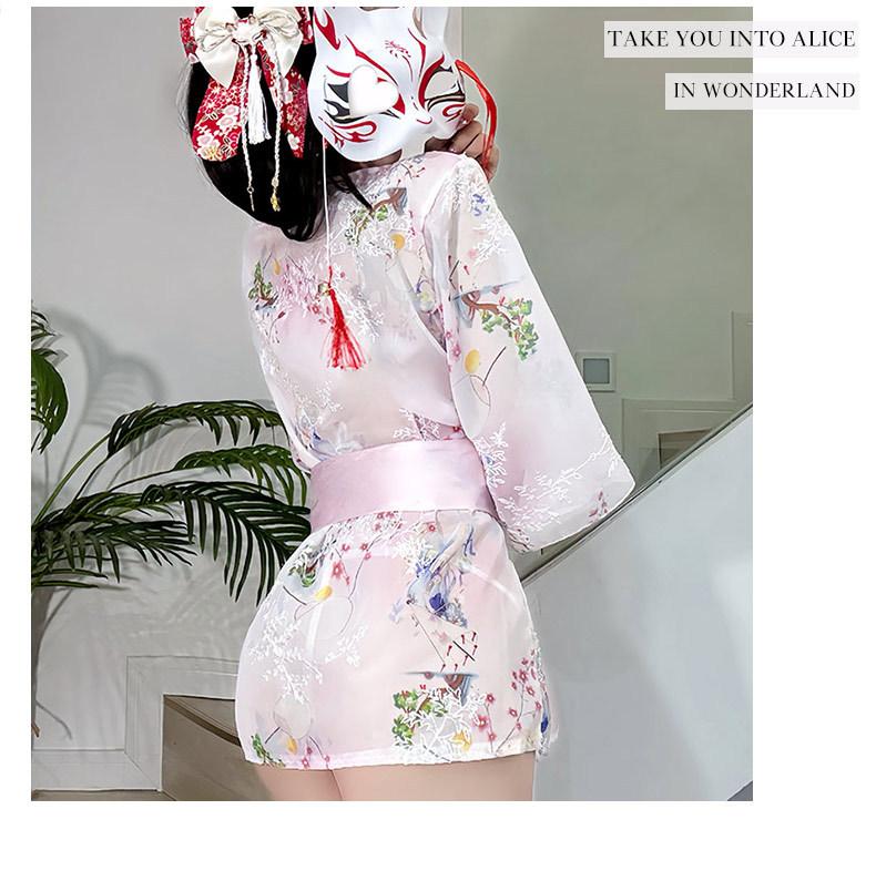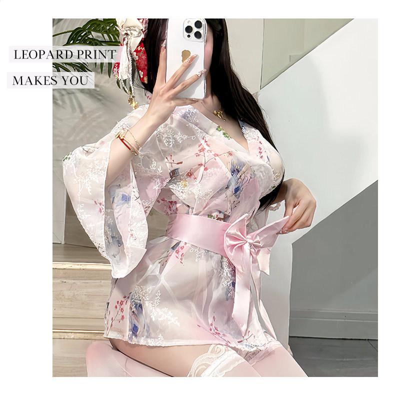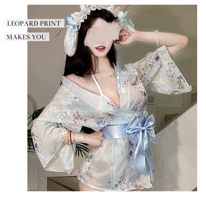 Pijama Sexy, Traje Kimono Japonés Talla Grande, Lencería Sexy para Pechos Pequeños, Tentación, Coqueteo, Uniforme de Pasión Caliente en la Cama