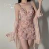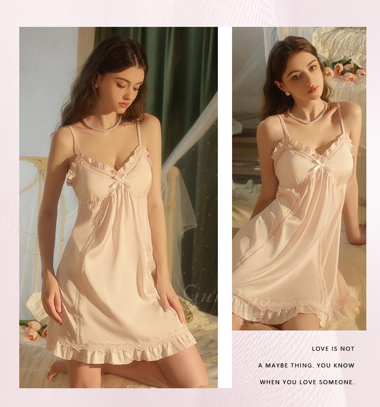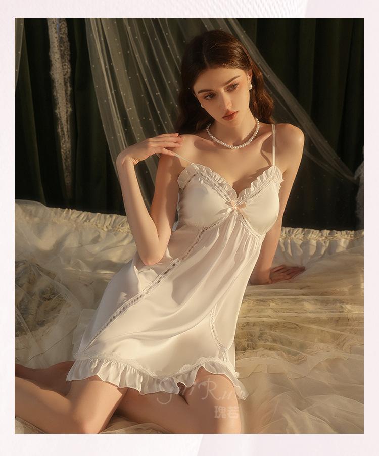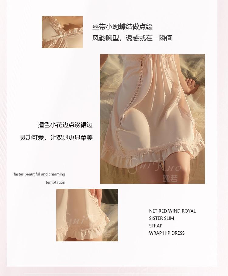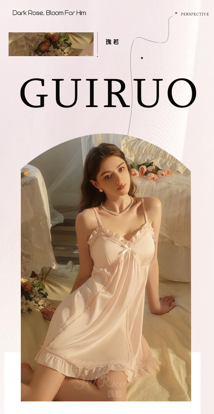 Guiruo V Profundo Plus Almohadilla para Busto Ropa Interior Apasionada Caliente Espalda Descubierta Deseo Puro Dulce Suave Satén Conjunto Camisón Xf5822