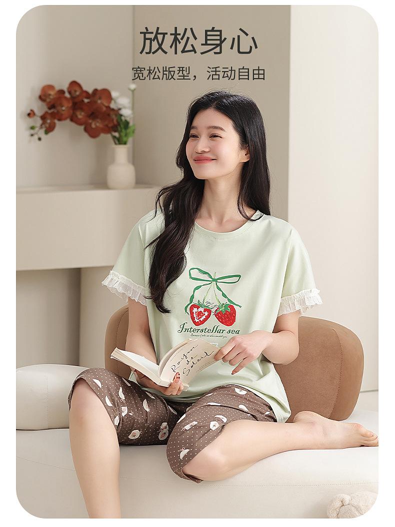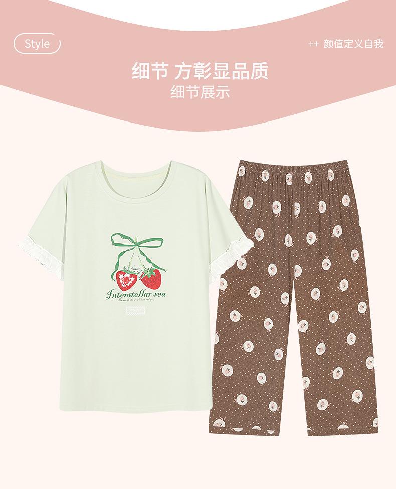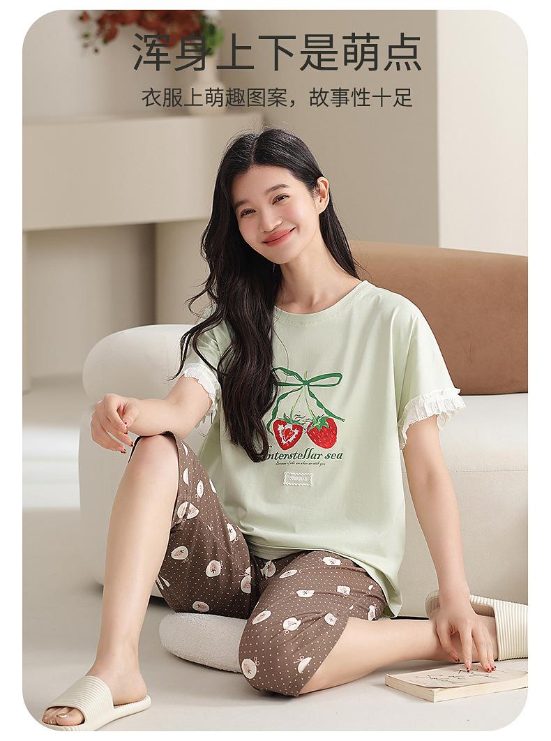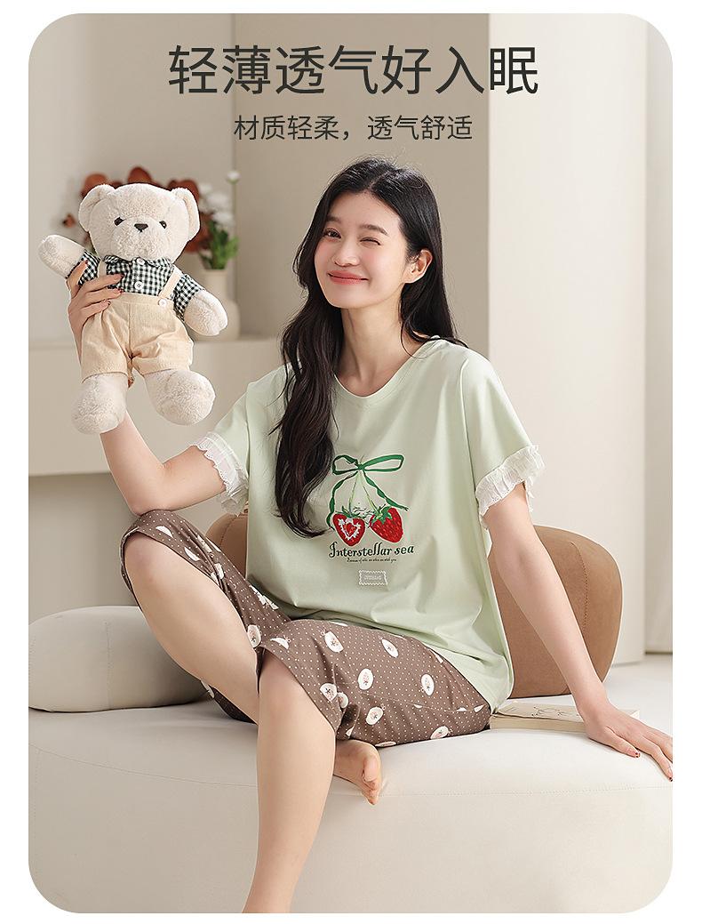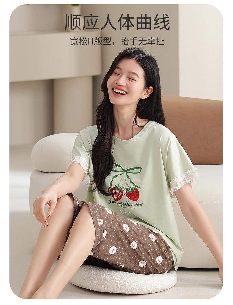 Pijamas de Algodón Fresco para Mujer en Verano, Delgados, Lindos Pantalones Cortos con Estampado de Fresa, Suave Conjunto de Ropa para el Hogar