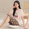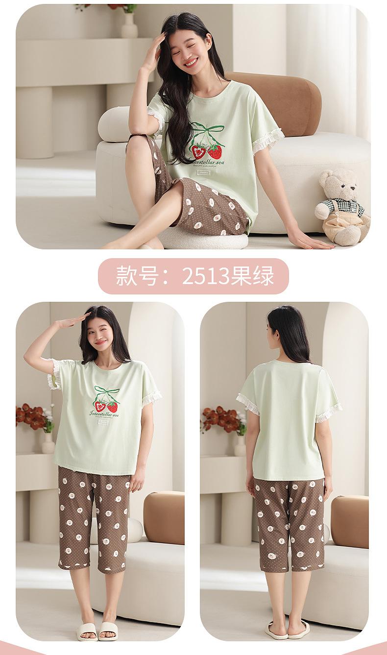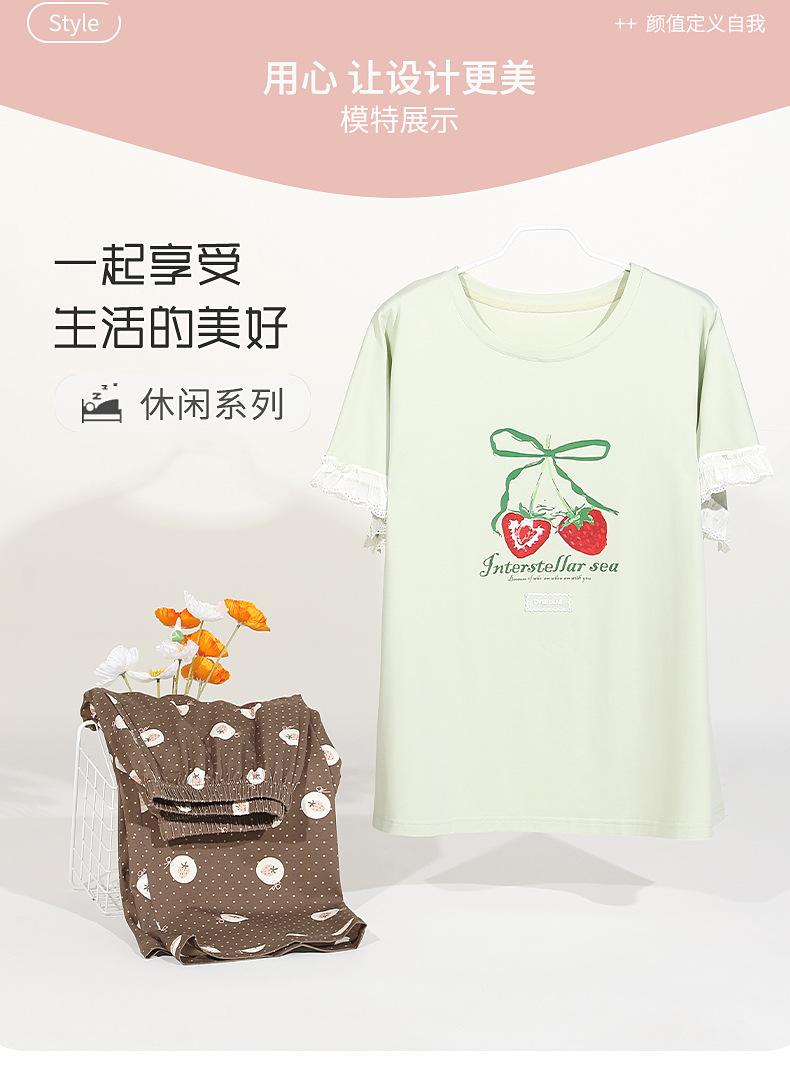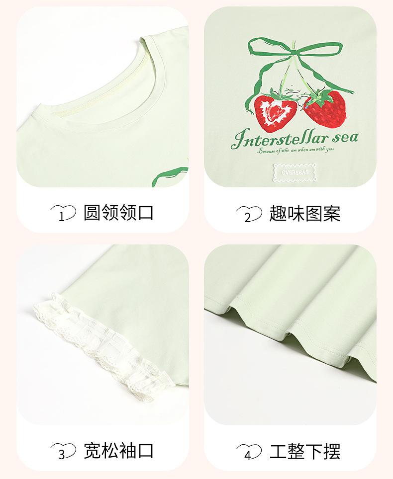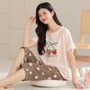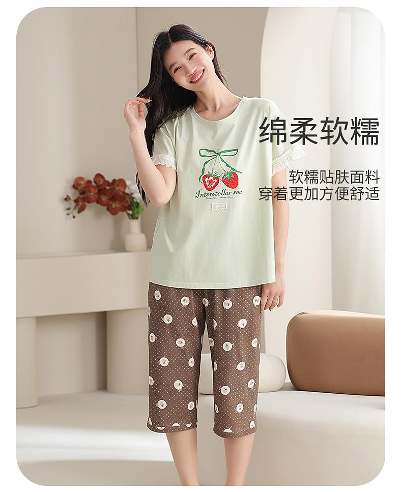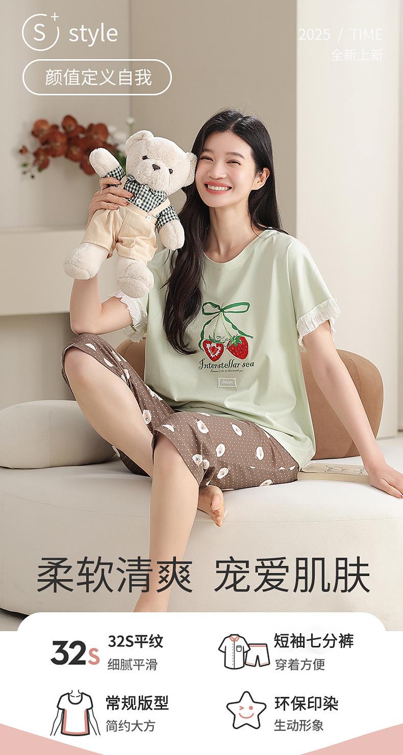 Pijamas de Algodón Fresco para Mujer en Verano, Delgados, Lindos Pantalones Cortos con Estampado de Fresa, Suave Conjunto de Ropa para el Hogar
