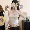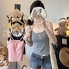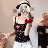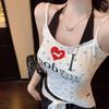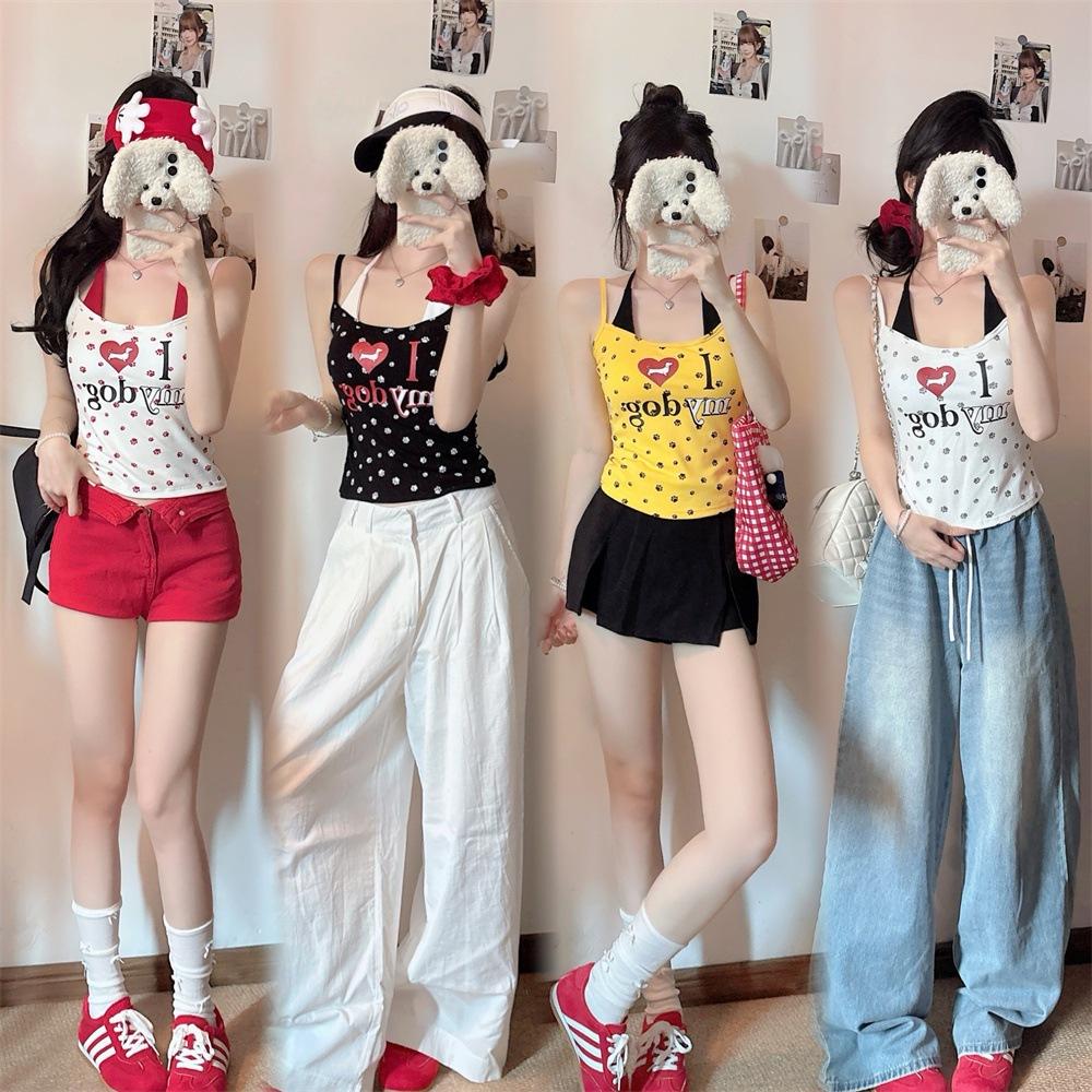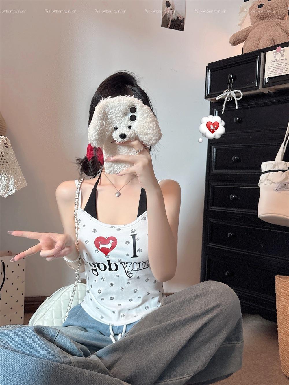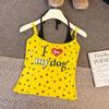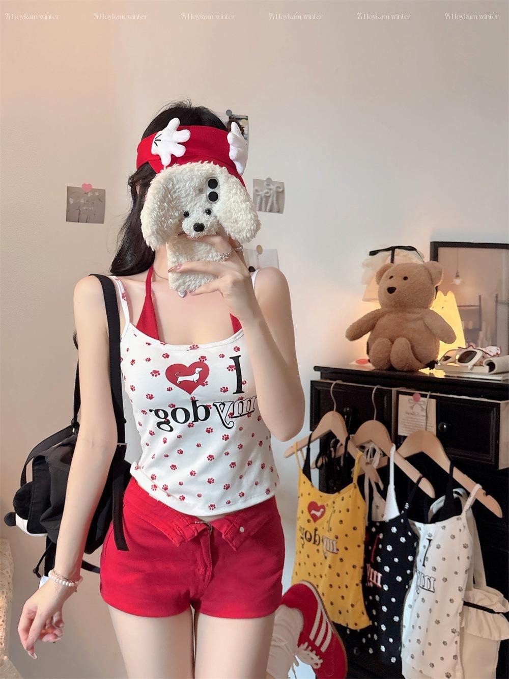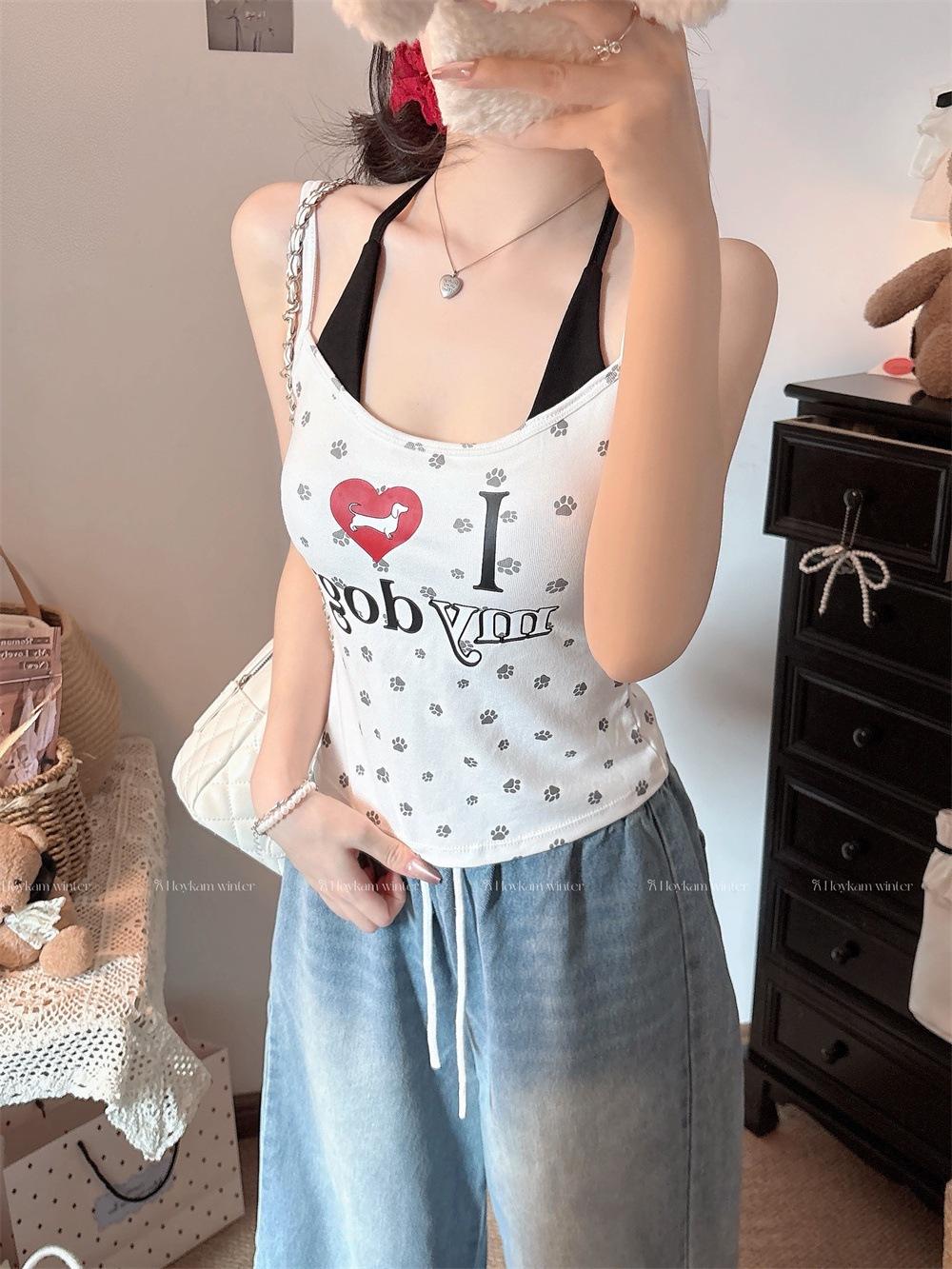 6129 # Rayón Chica Sexy Falso Dos Piezas Halter Camisola para Mujer con Almohadilla para el Busto Estampado de Garra de Perro Amor Espalda Hermosa Top