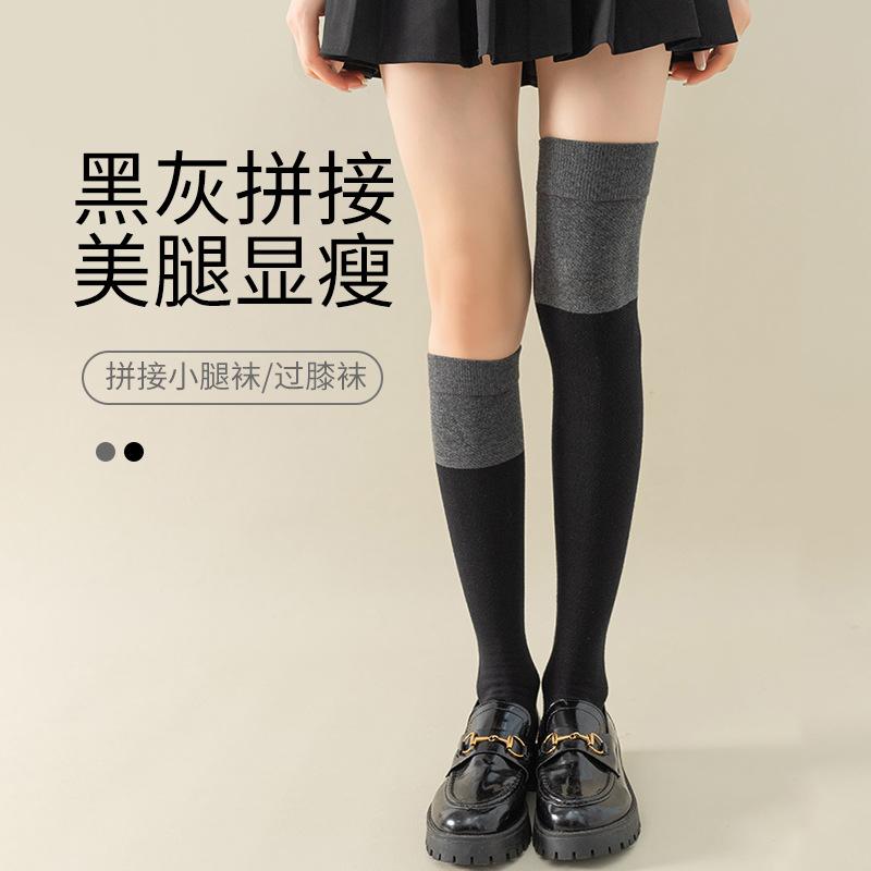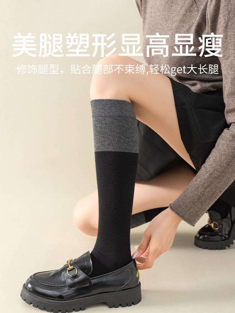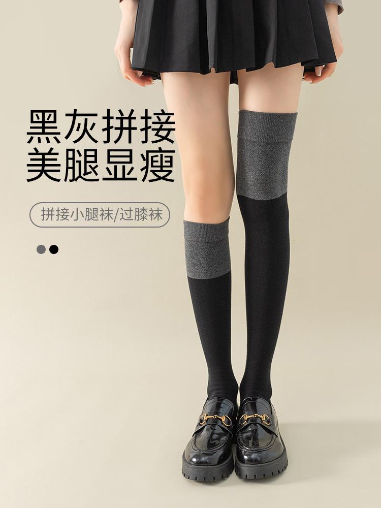 Calcetines hasta la rodilla con bloques de color para mujer, calcetines hasta la pantorrilla estilo universitario JK para primavera y otoño, calcetines adelgazantes de presión para estudiantes, estilo japonés para piernas hermosas