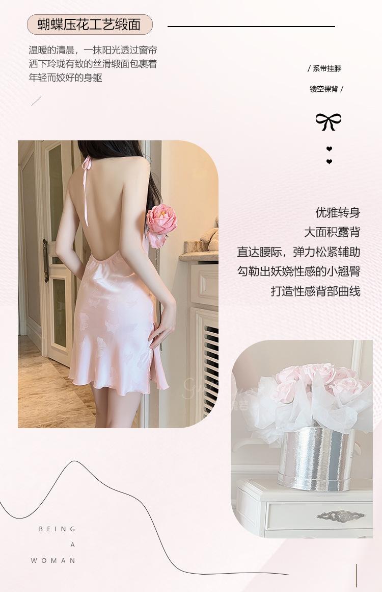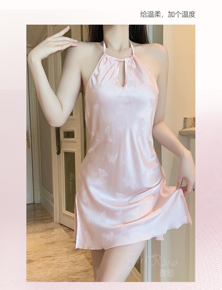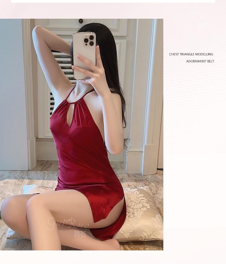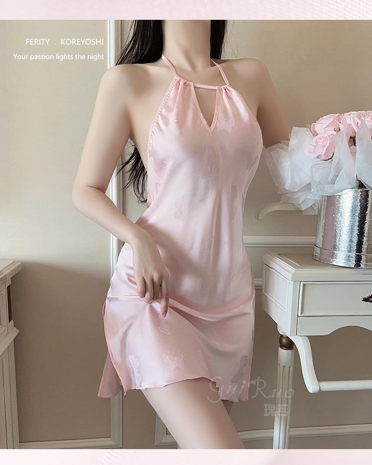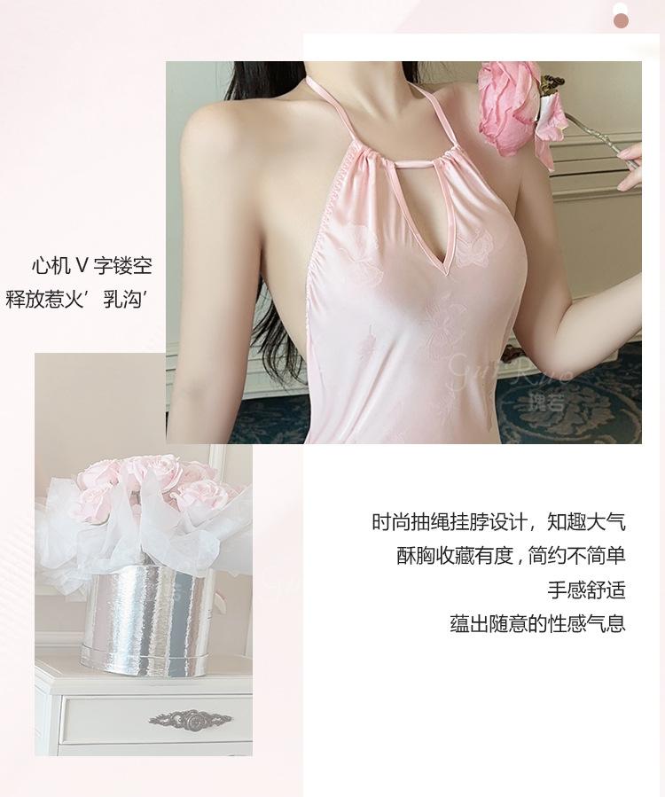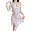 Marca Guiruo Lencería Deseo Puro Dulce Satén Jacquard Sexy Halterneck con Cordones Abertura Camisón Traje de Casa 5173