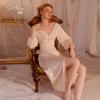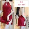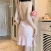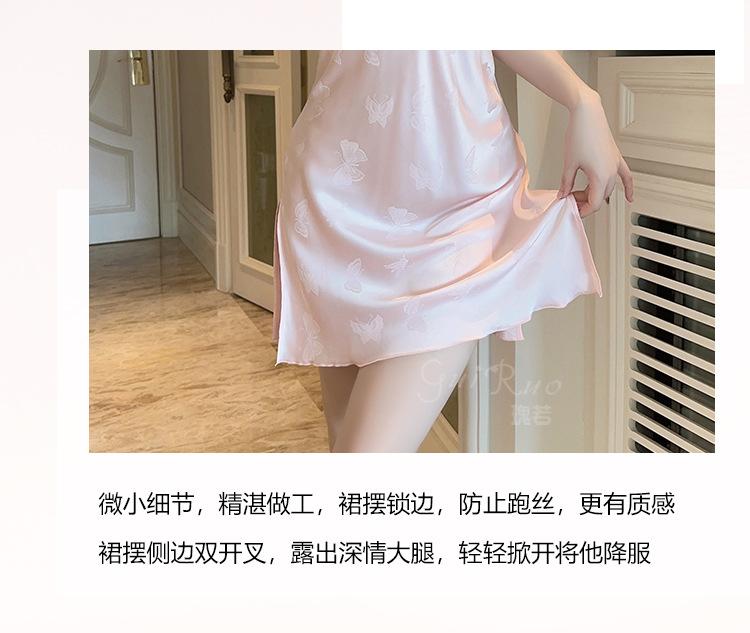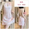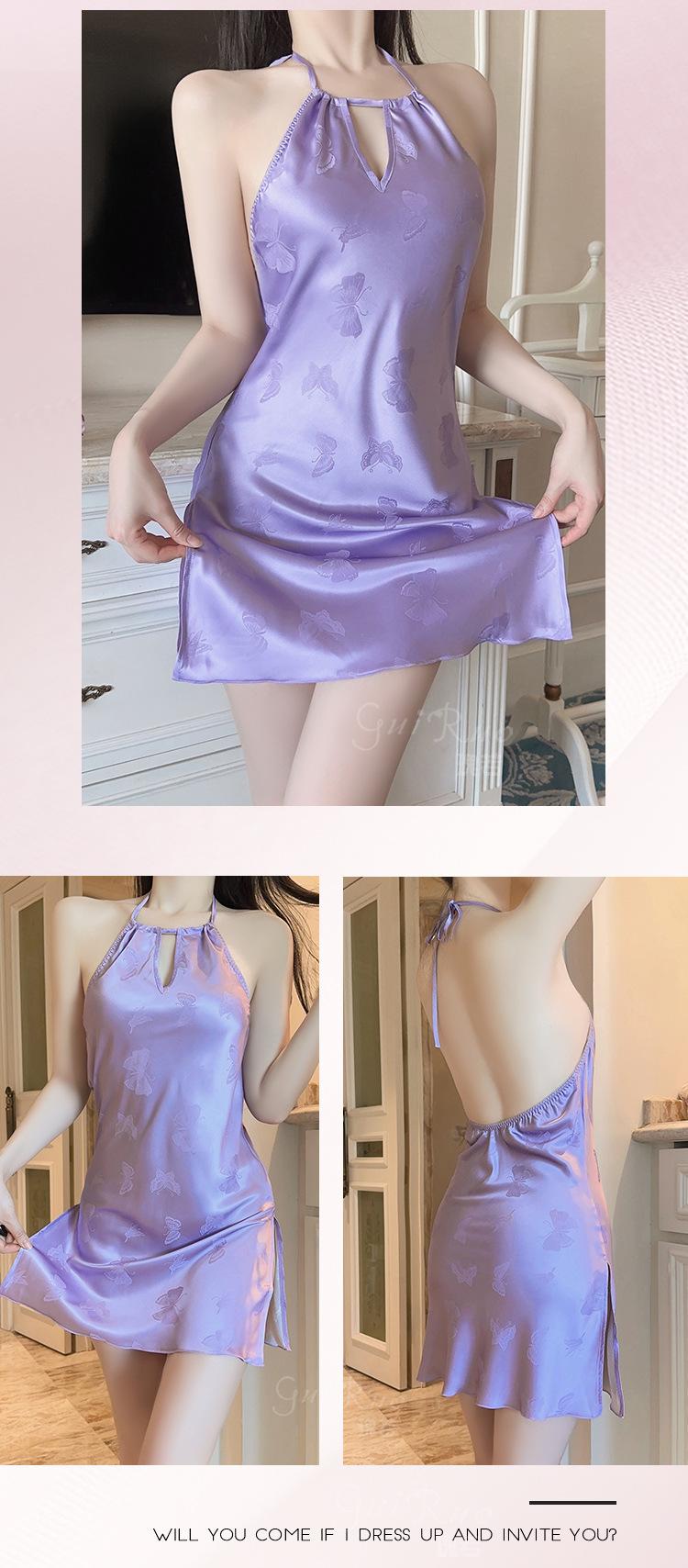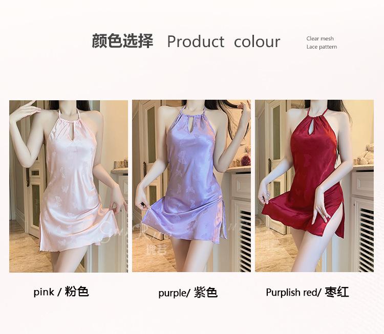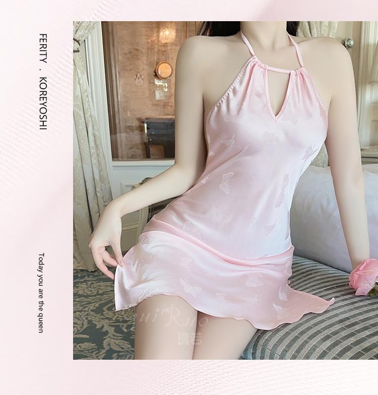 Marca Guiruo Lencería Deseo Puro Dulce Satén Jacquard Sexy Halterneck con Cordones Abertura Camisón Traje de Casa 5173