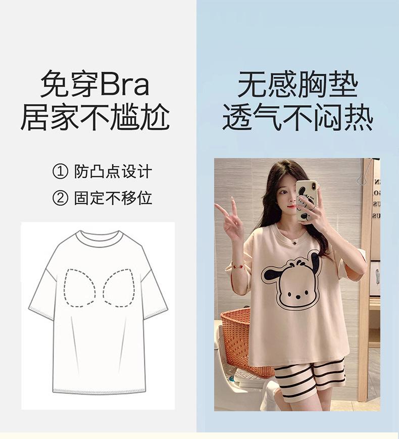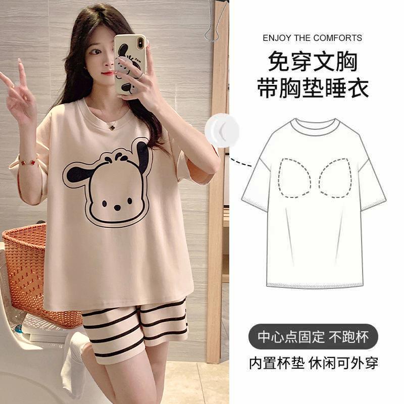 Pijama Entero de Estilo Nuevo con Almohadilla en el Pecho para Mujer Verano Estilo Caricatura Manga Corta Shorts Estudiante Ropa para el Hogar Traje de Ropa para Aire Acondicionado