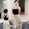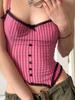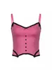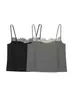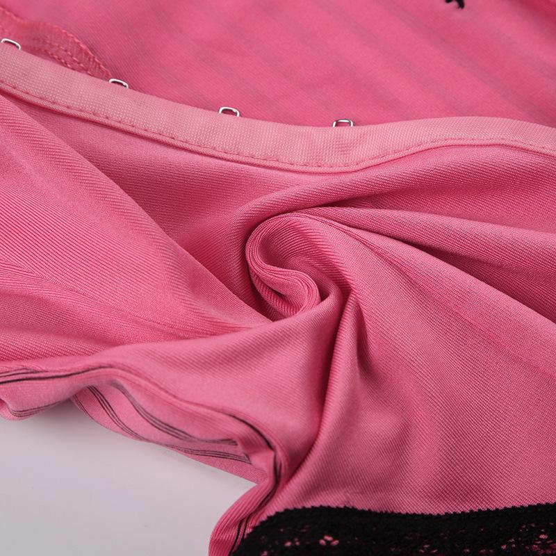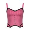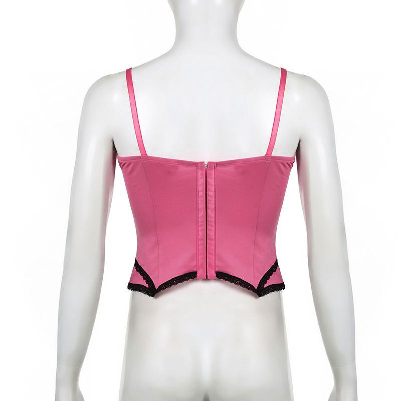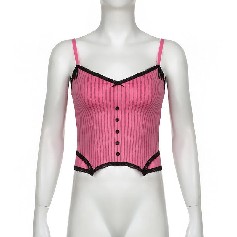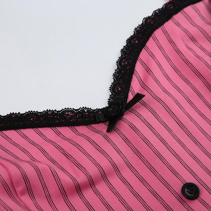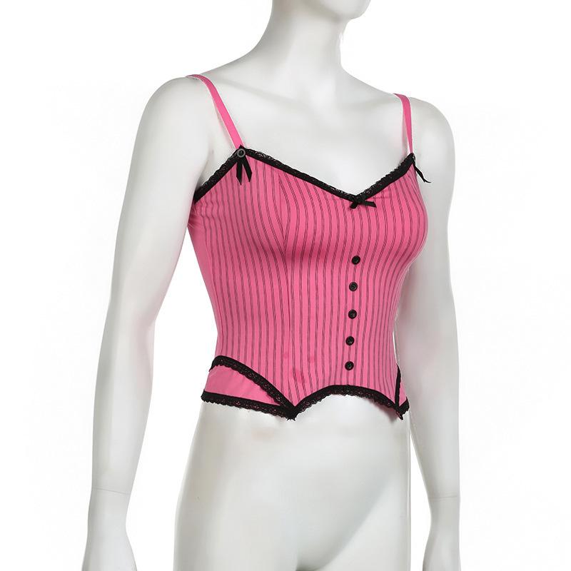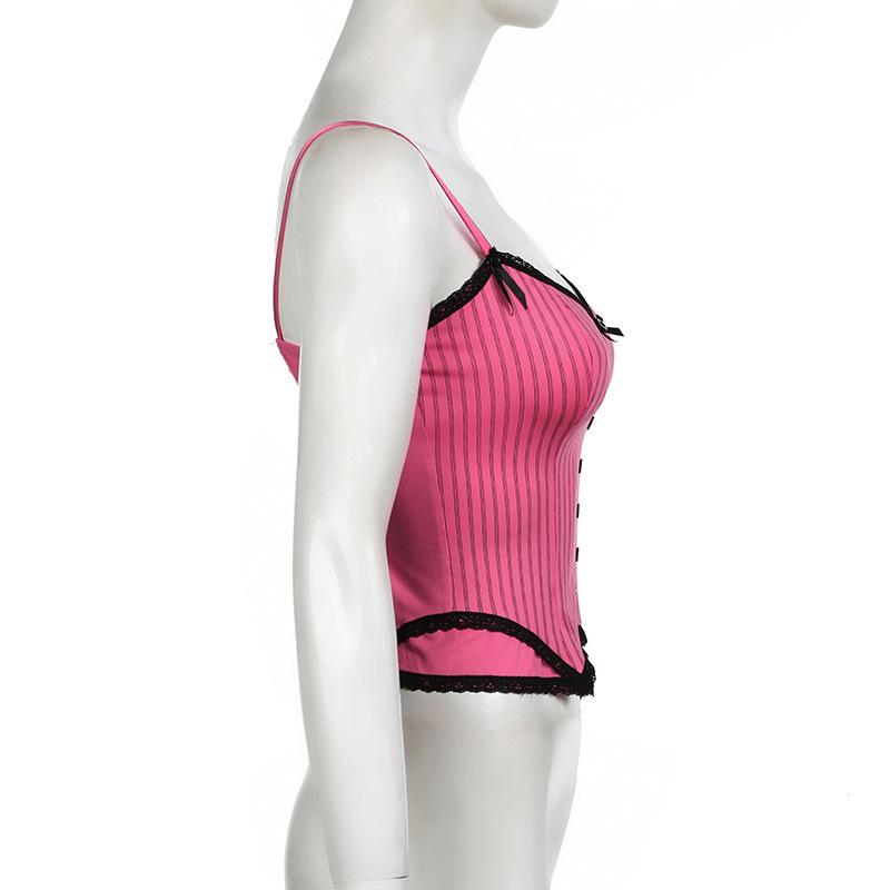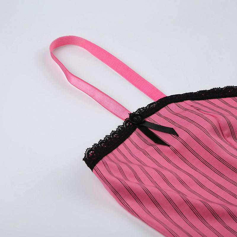 Verano Europeo y Americano Sexy Nuevo Diseño Negro y Rosa Rayado Contrastante Encaje Tirantes Corte Bajo Slim Chaleco Transfronterizo